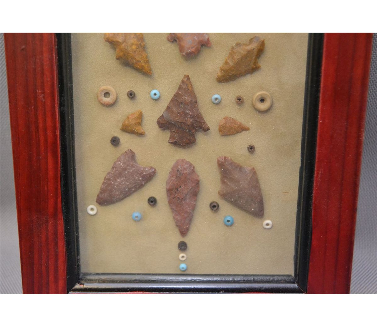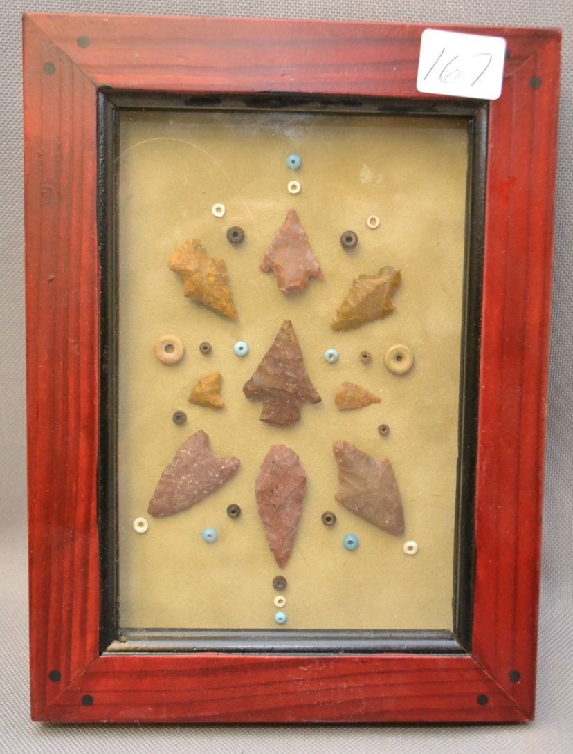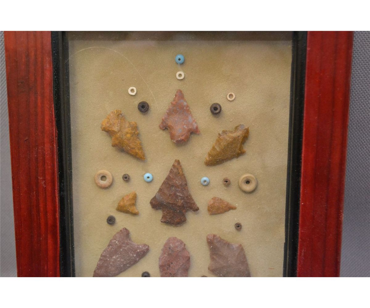 miscellaneous arrowheads and beads 5.5" x 3.5" age unknown