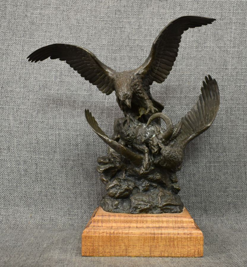 19th century, Bronze depicting eagles and Ibex signed Fratin for Christopher Fratin also has Daubre founders mark 11" x 10" x 4.5" including base