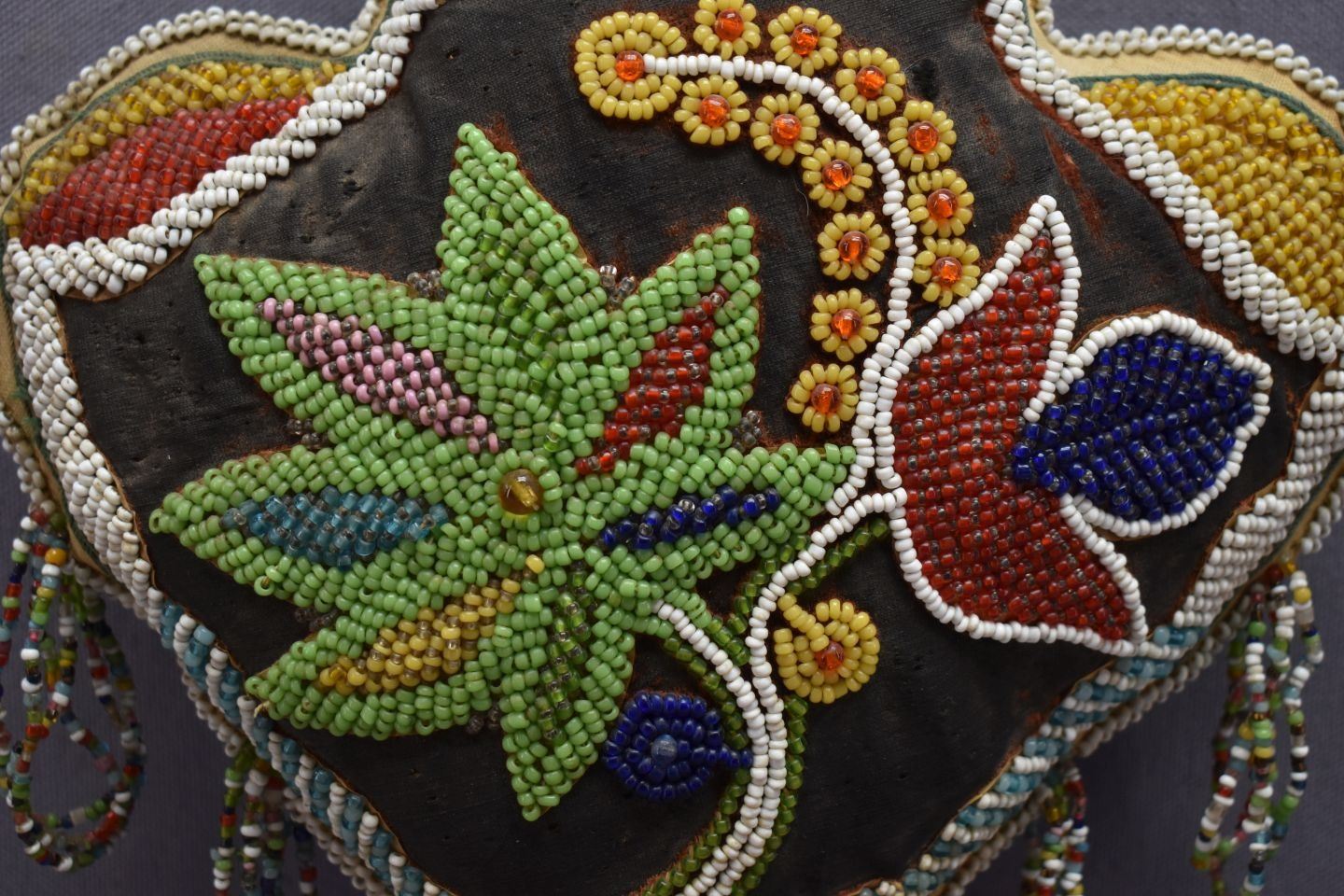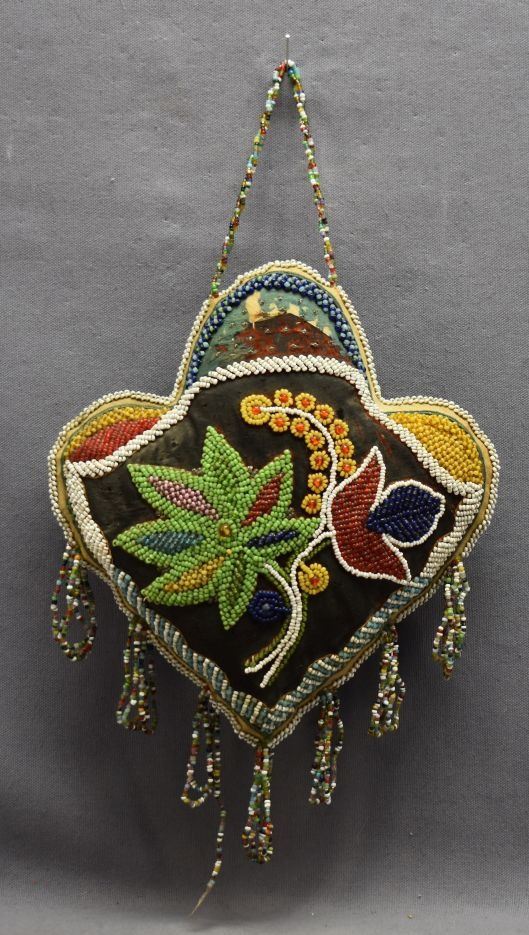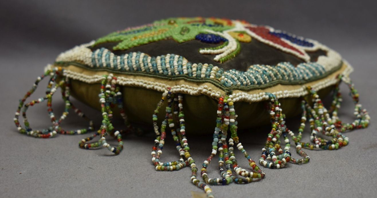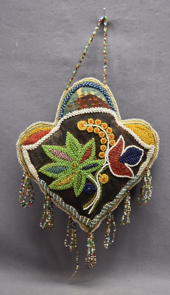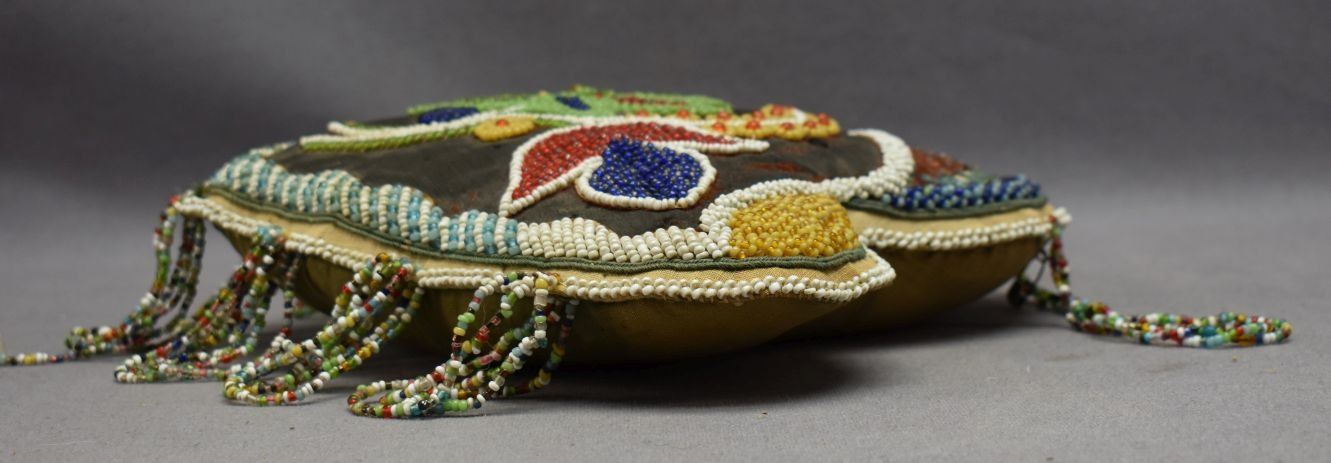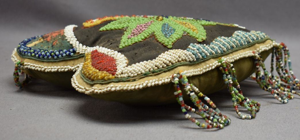 1900's Great lakes Indian. Floral beaded design pillow. 10'' x 9'' x 2.5''