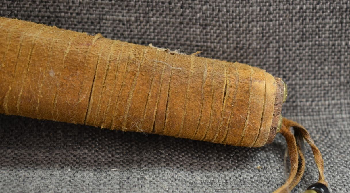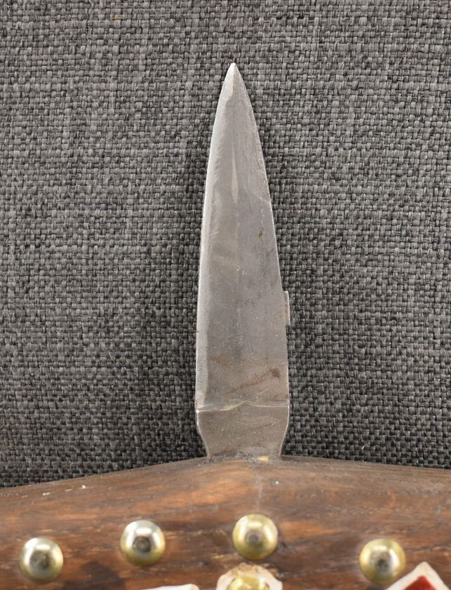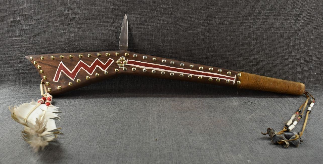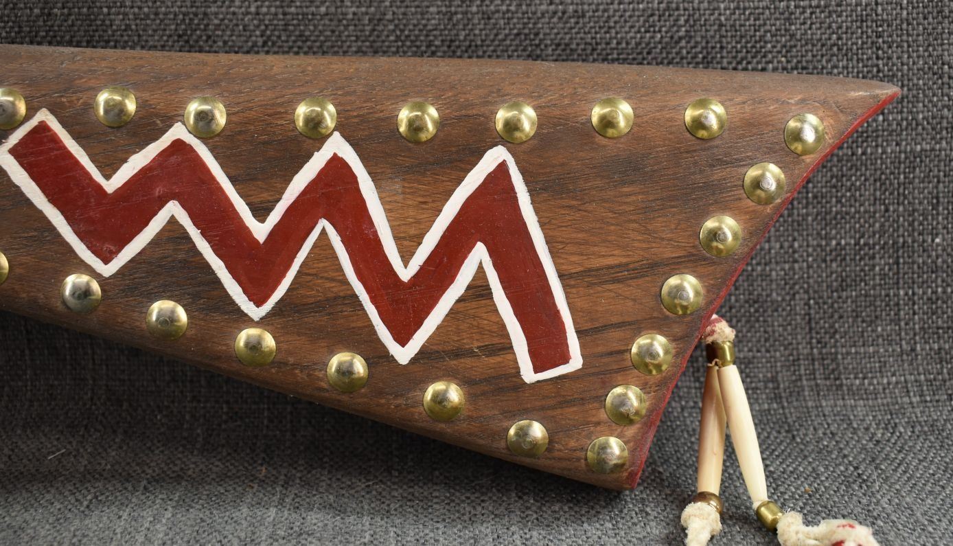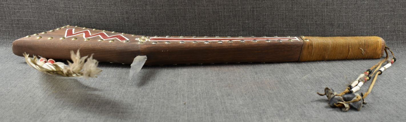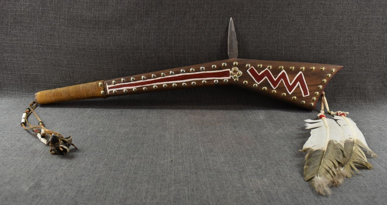 20th century. Hand made and painted design gun stock club. 30'' x 8'' x 2''