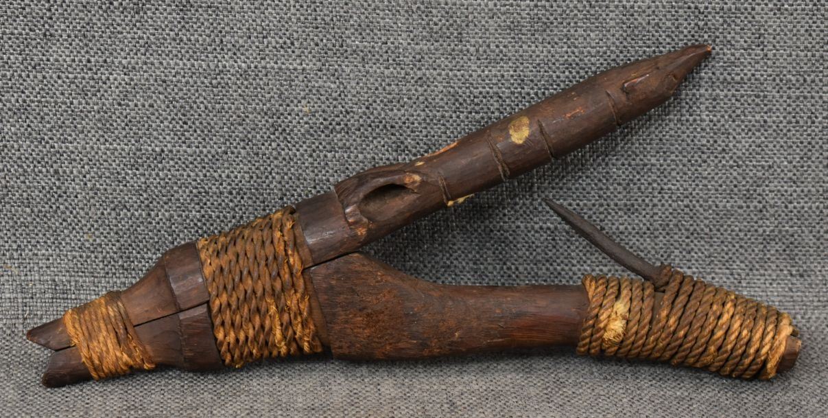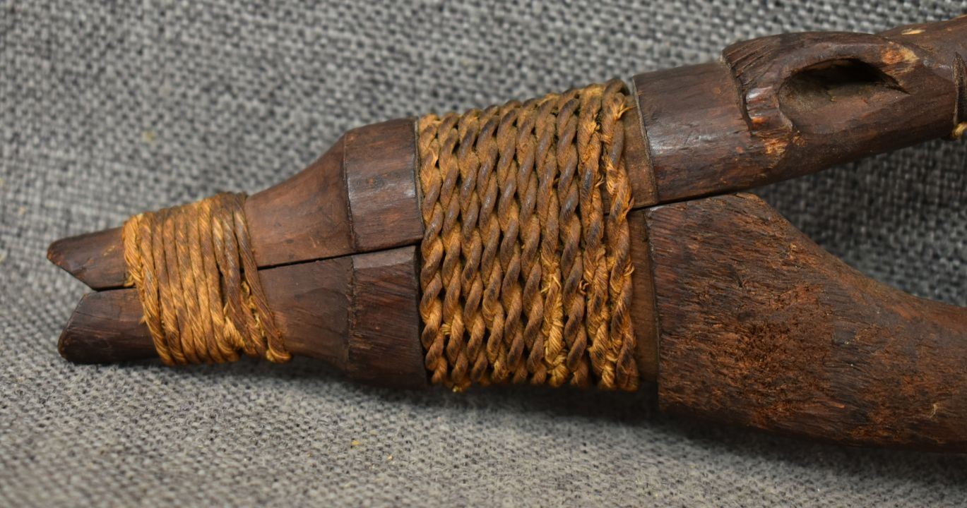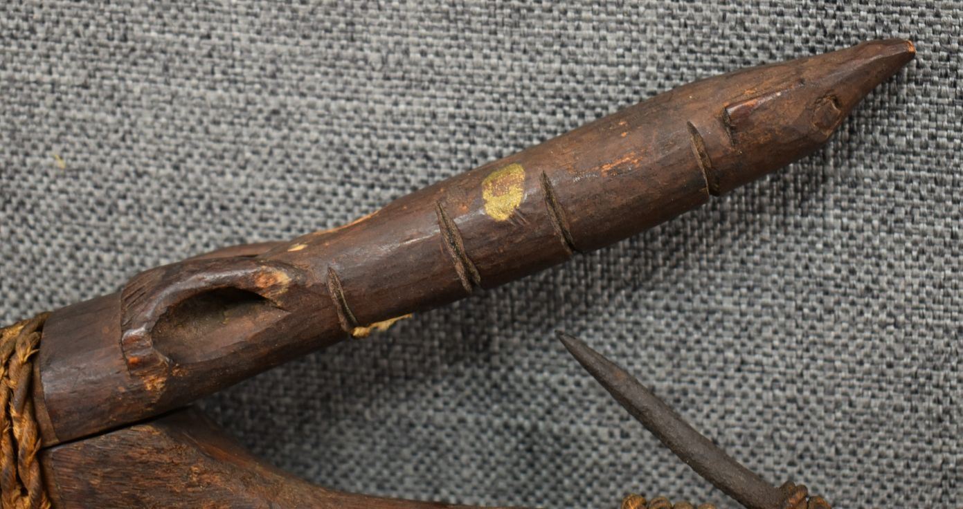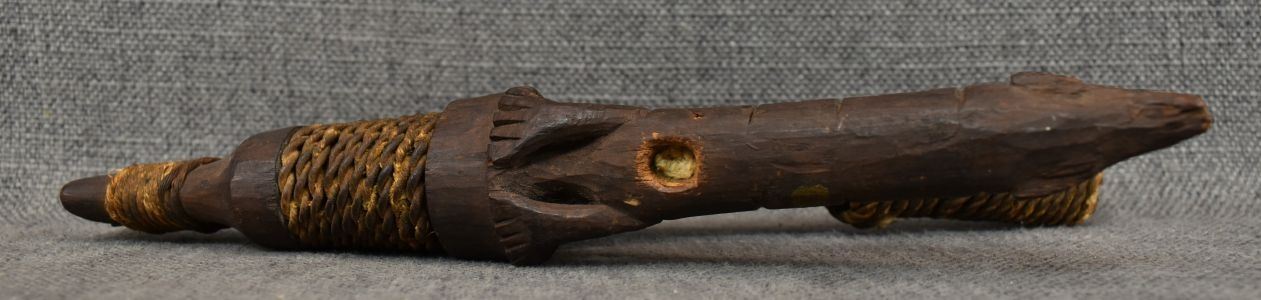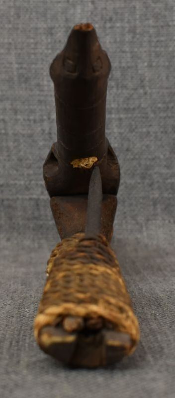 1920's Haida, hand made carved wood with metal pin and wrapped design 4.75" x 10.5" x 1.5"
