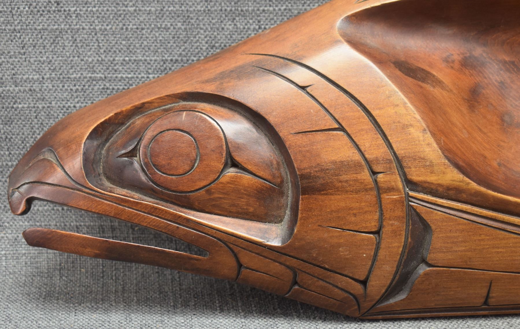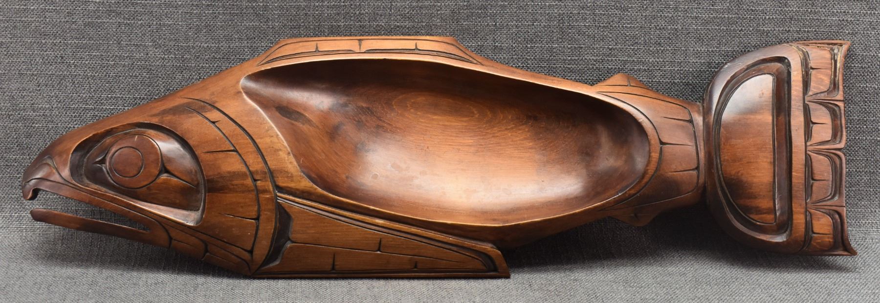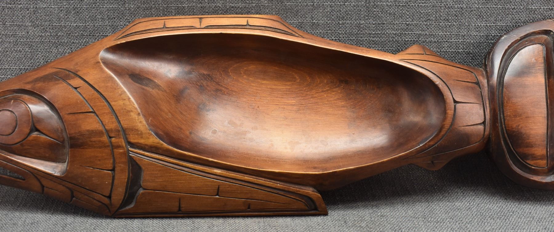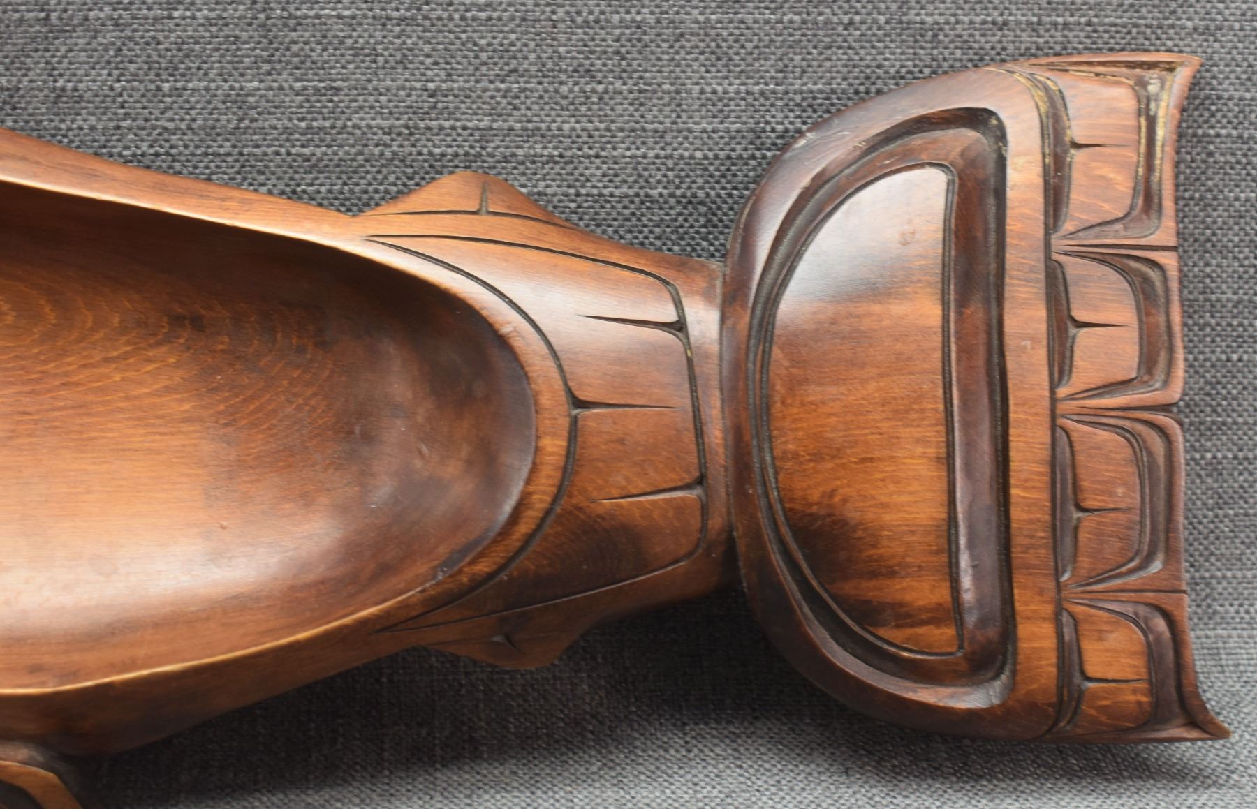 1990's Haida. Hand carved wooden grease bowl. 25'' x 8'' x 2''