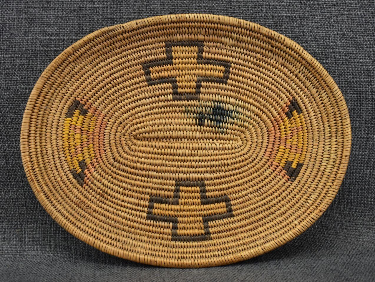 1960's Havasupai, hand woven oval with polychrome design 1"x 11.5" x 9"