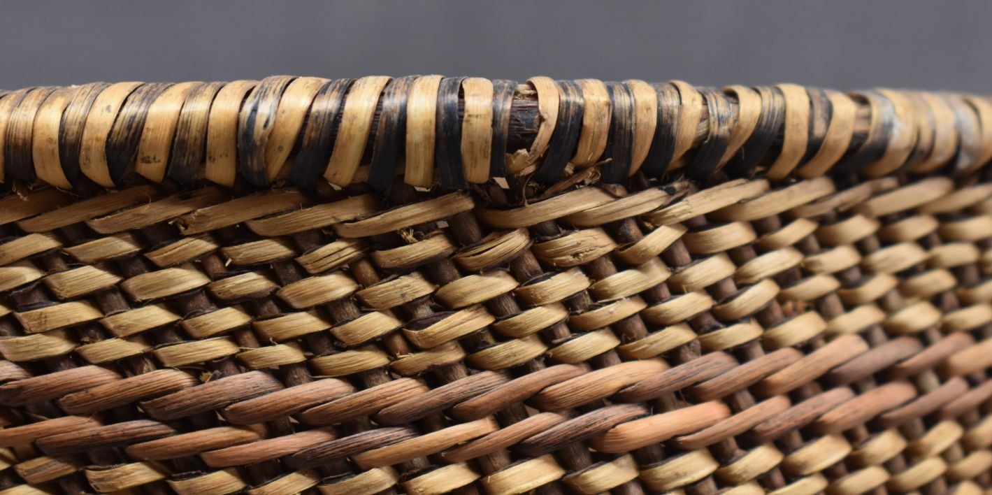 1930's havasupi. Hand woven banded design burden basket. 10'' x 11''