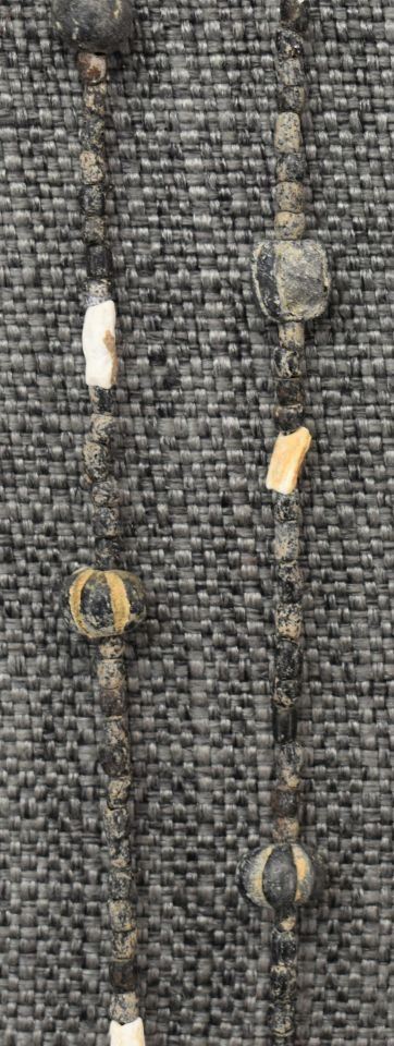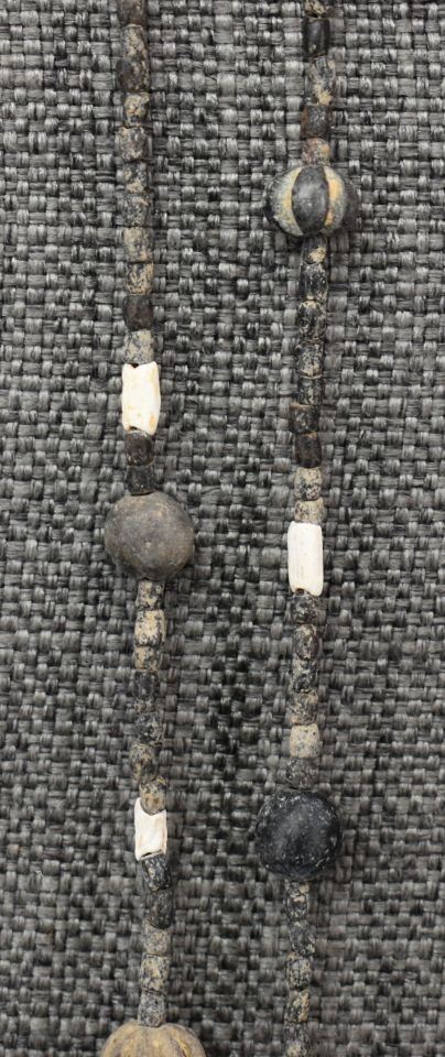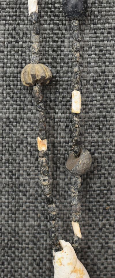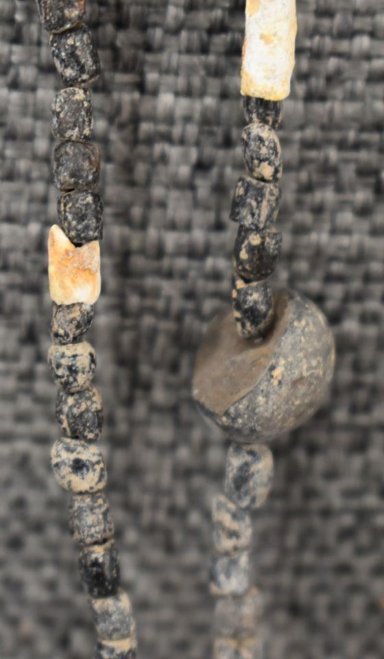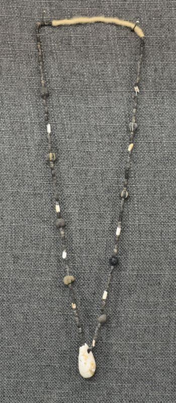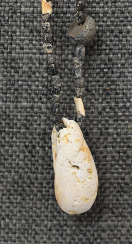 prehistoric Hohokam, single strand of beads 28" long with shell pendant 1.25" long