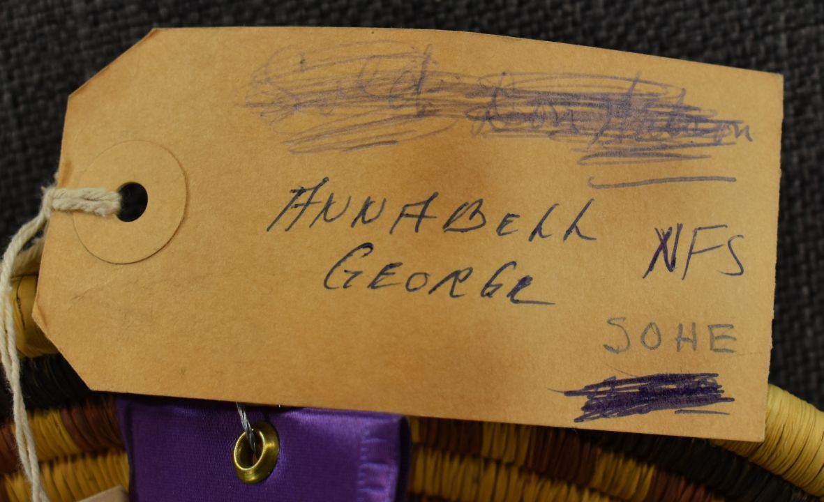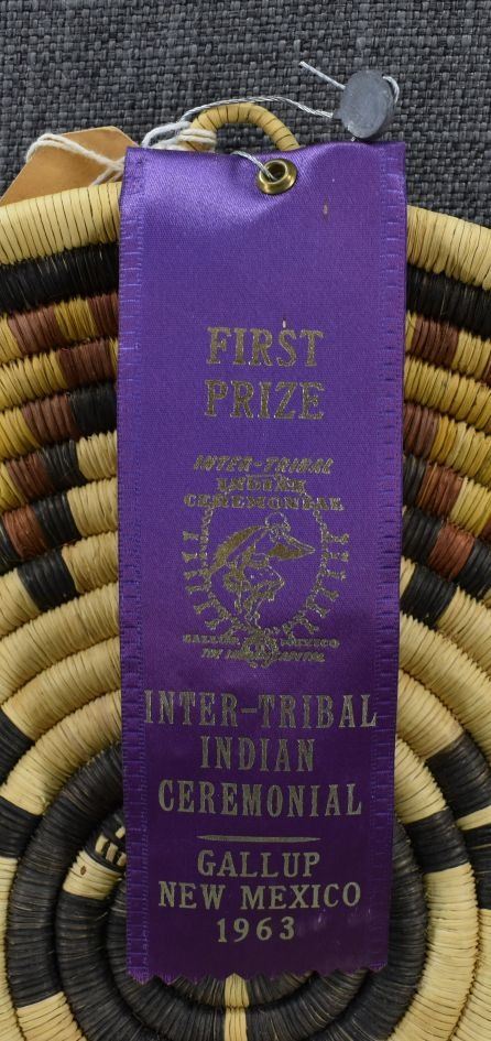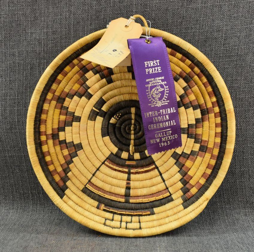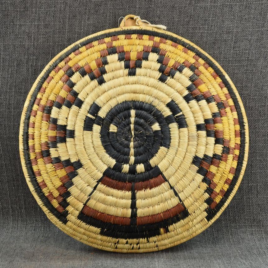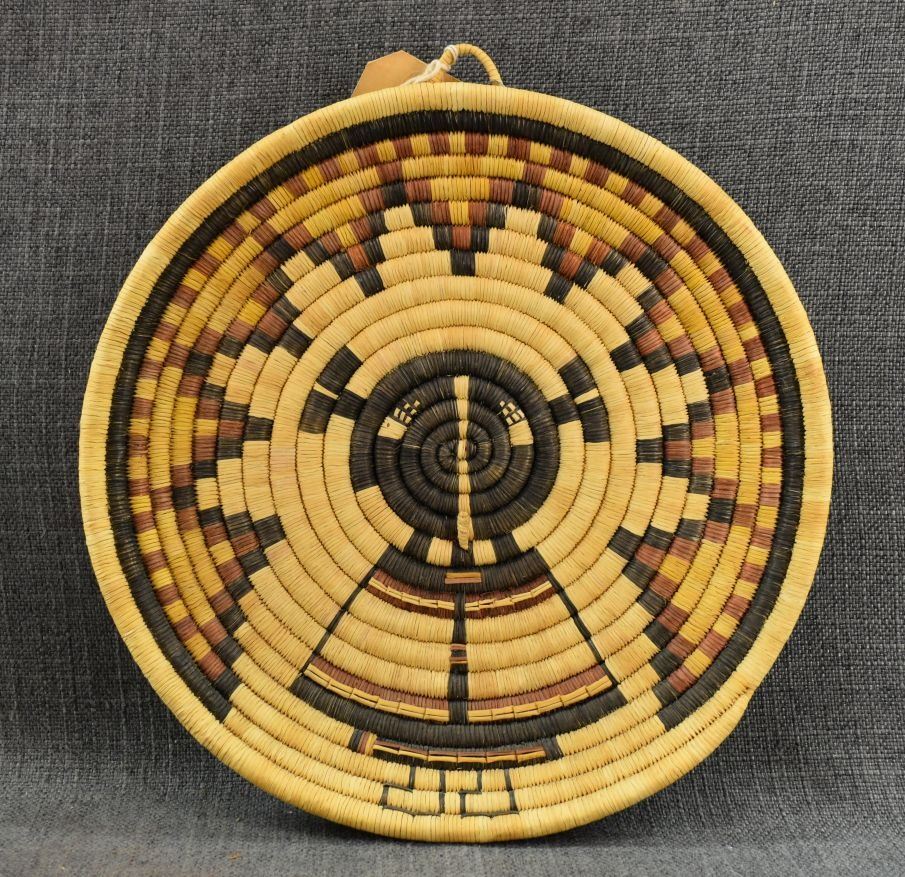 1960's Hopi . Hand woven second mesa basketry bowl by Annnabell George. 1.5'' x 11''