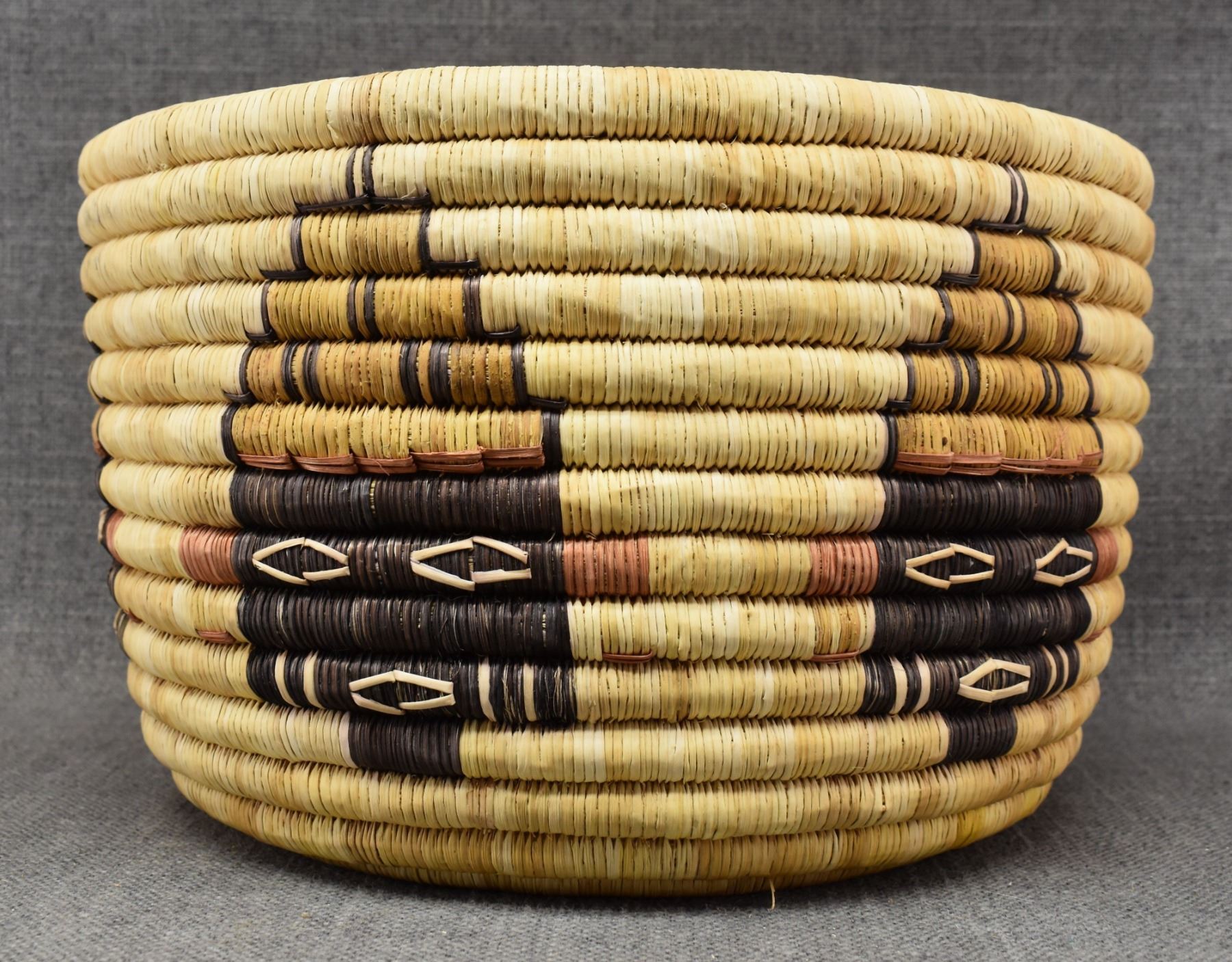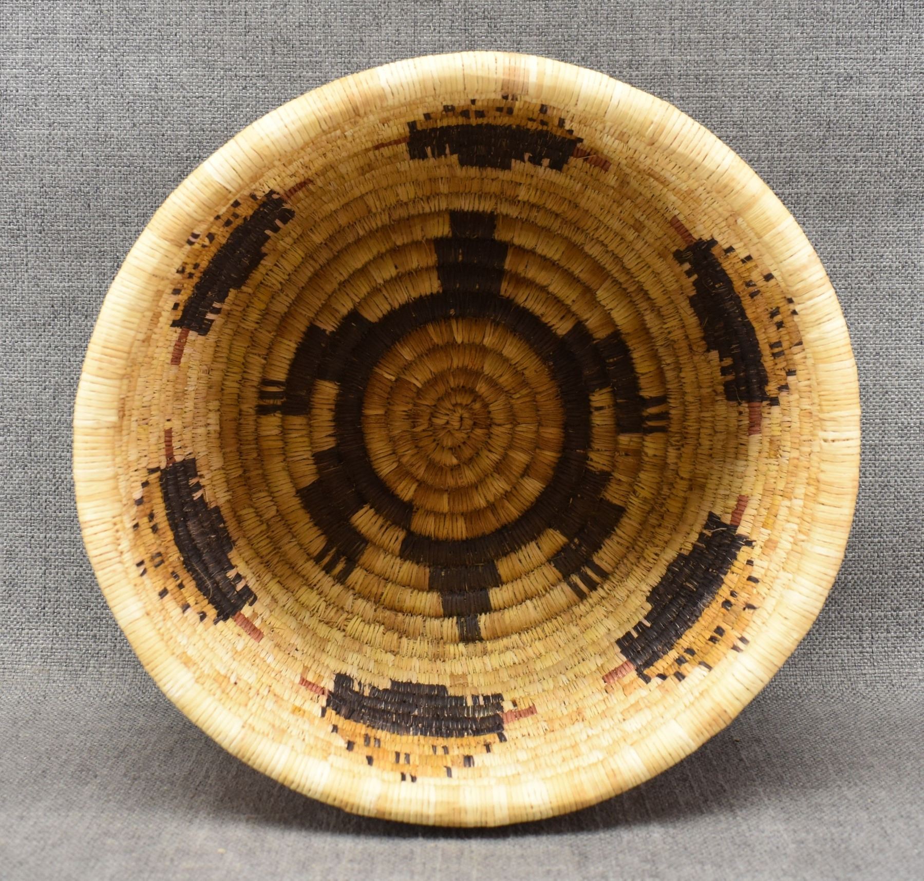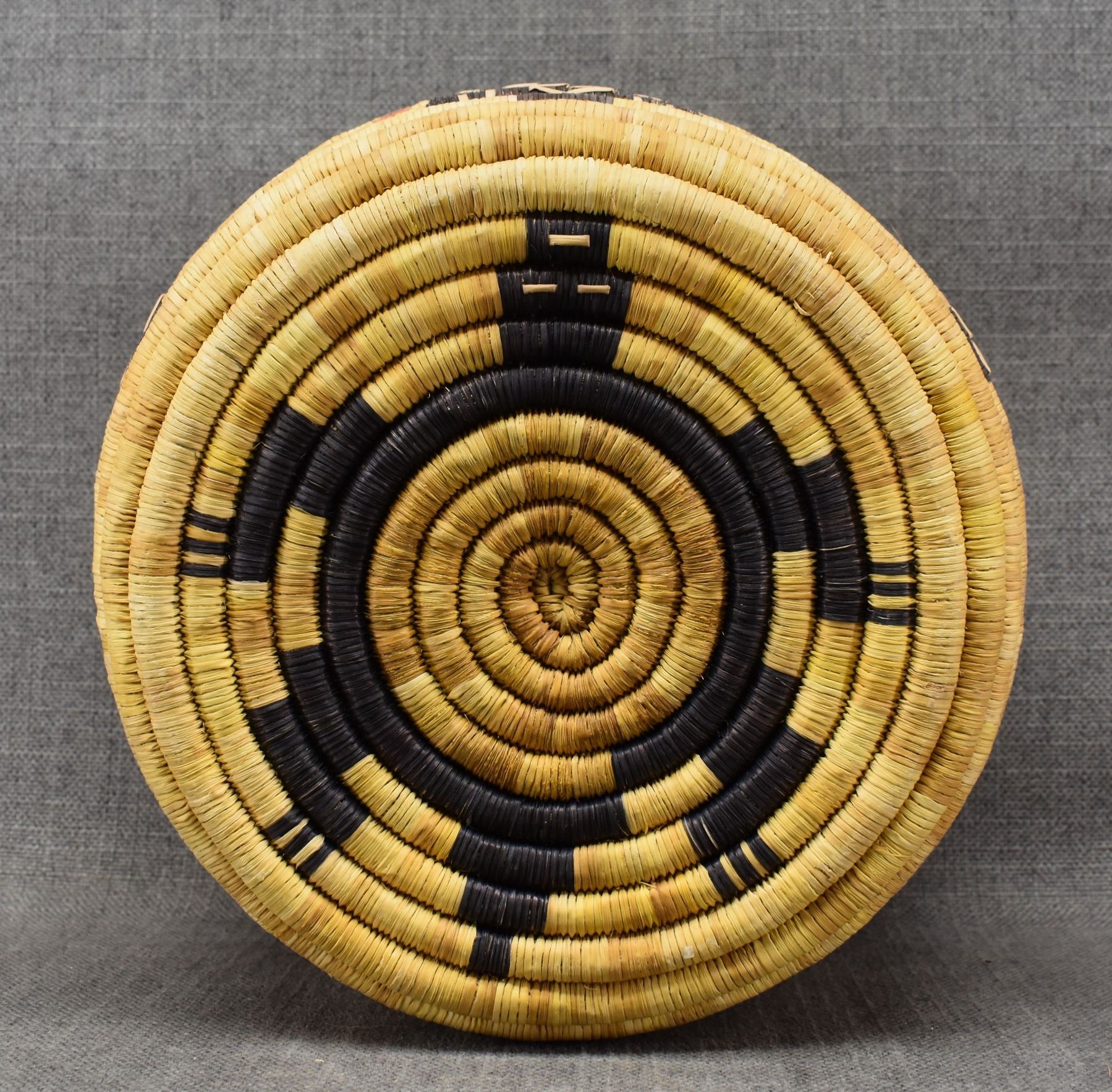 1970-80's Hopi 2nd mesa coil, hand woven polychrome kachina face and turtle design 7" x 11"