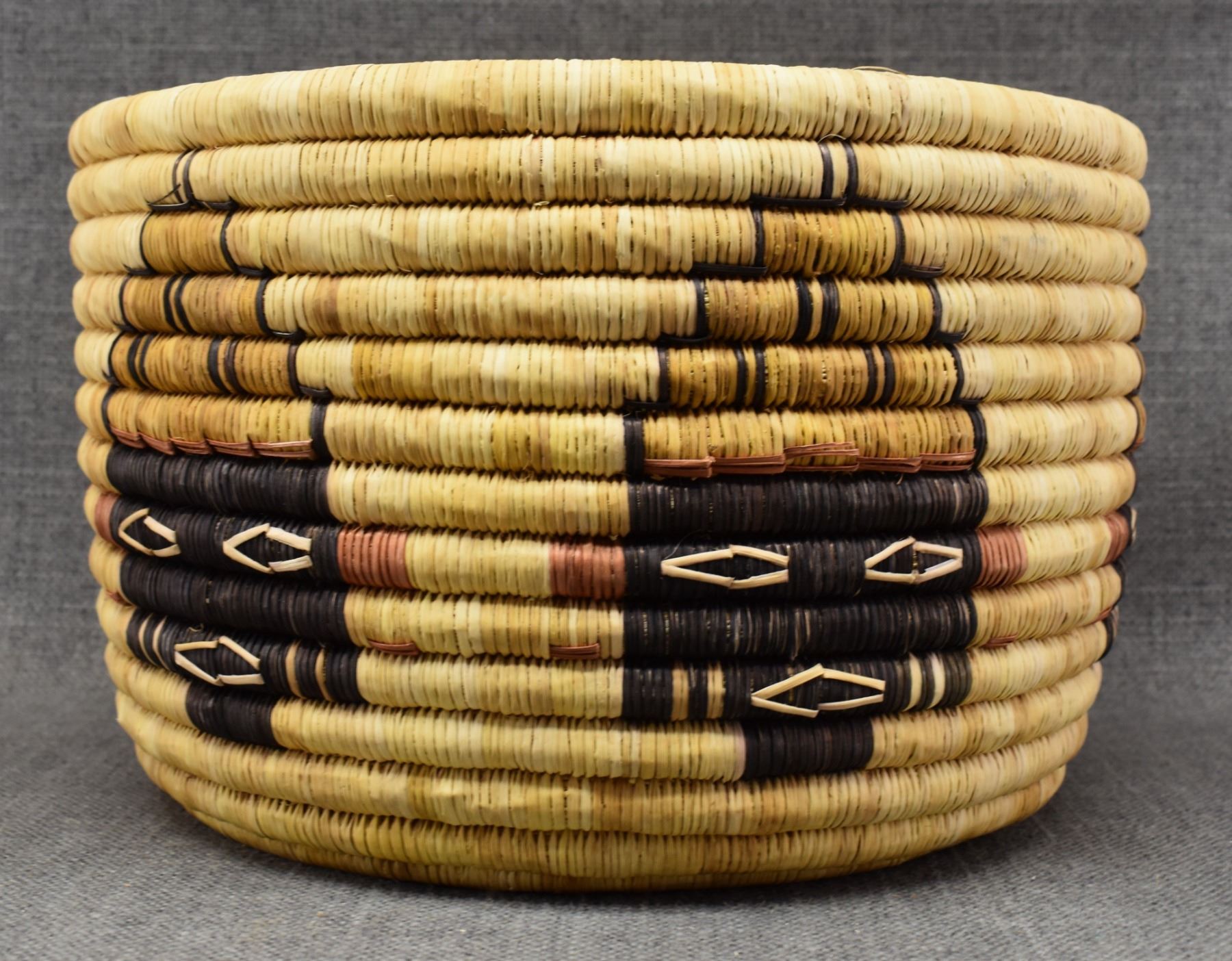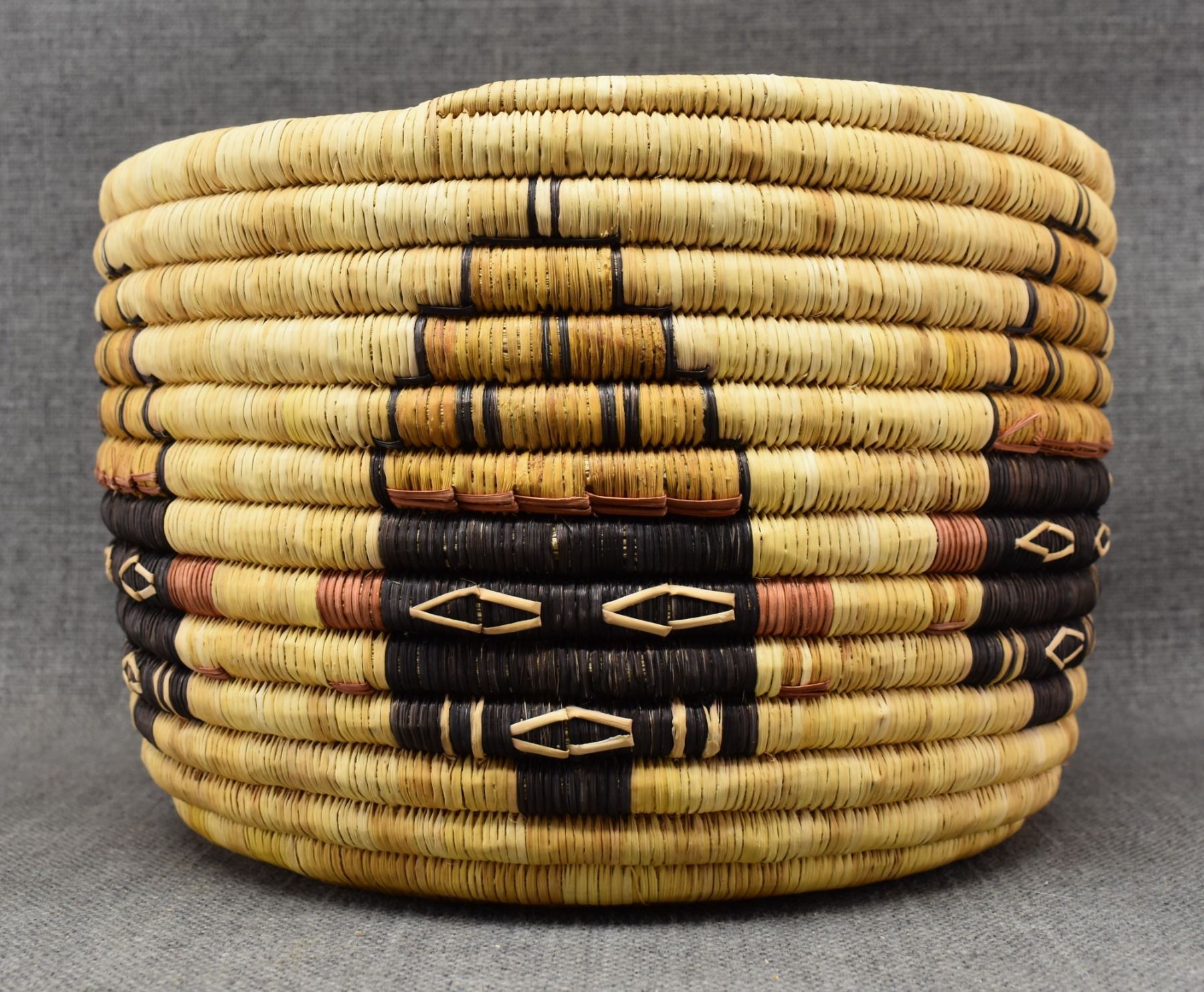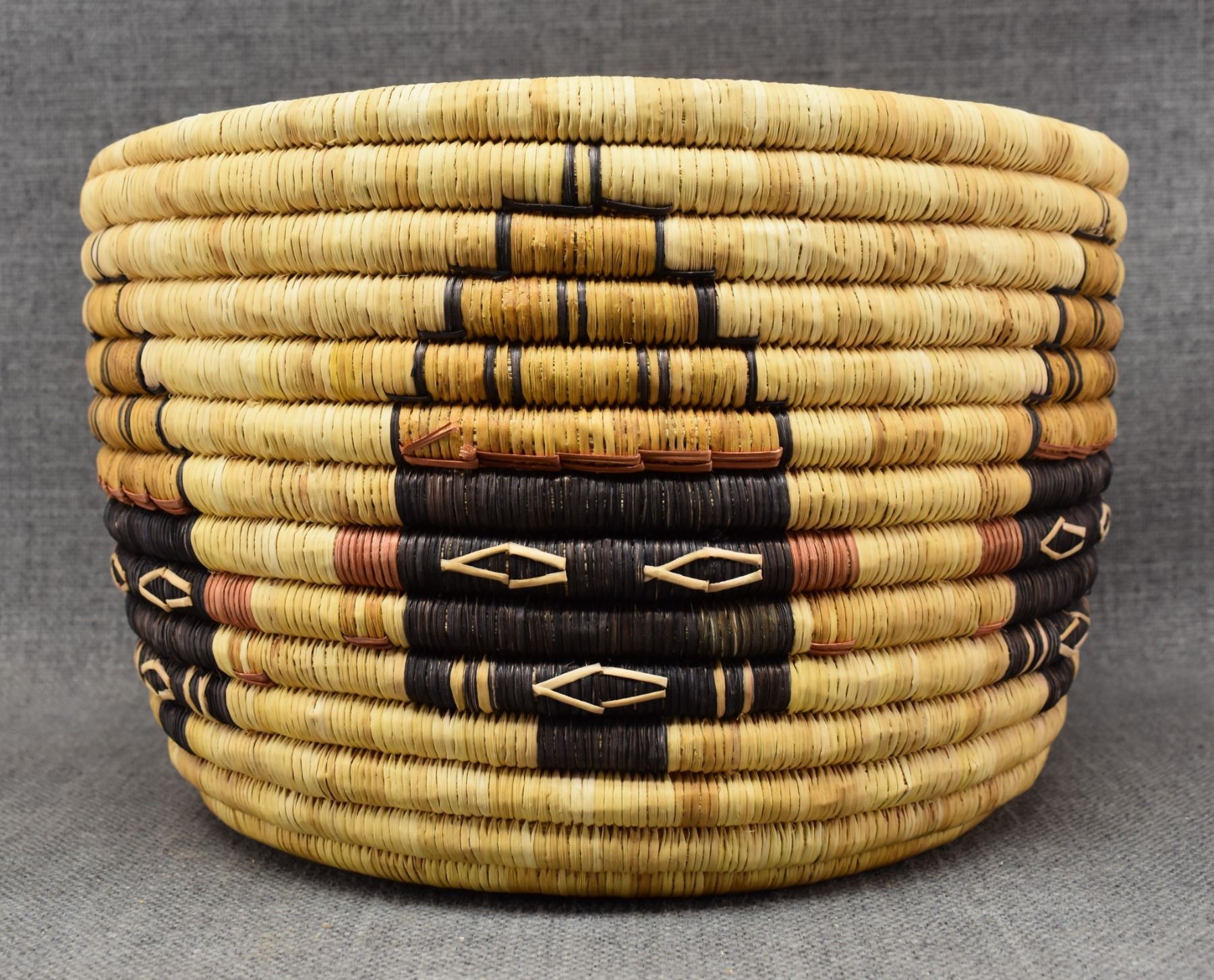 1970-80's Hopi 2nd mesa coil, hand woven polychrome kachina face and turtle design 7" x 11"