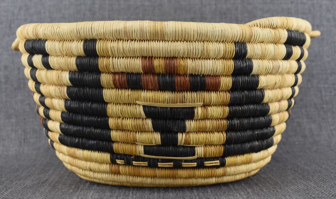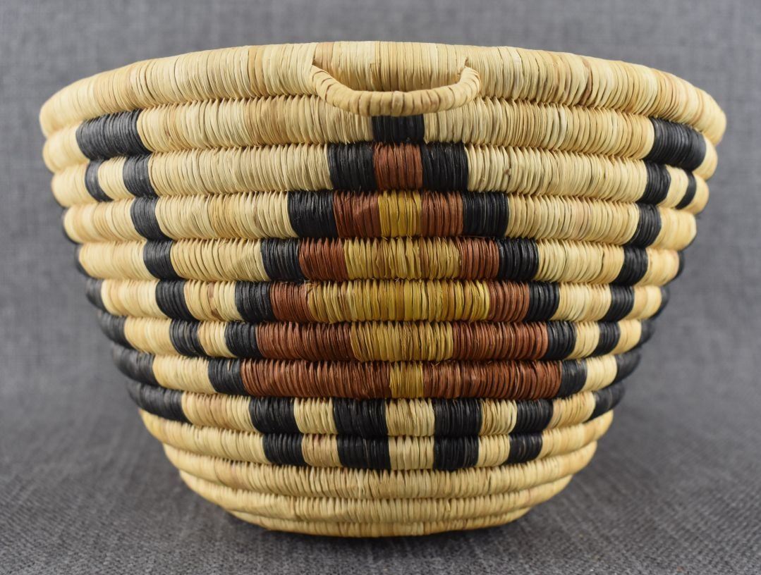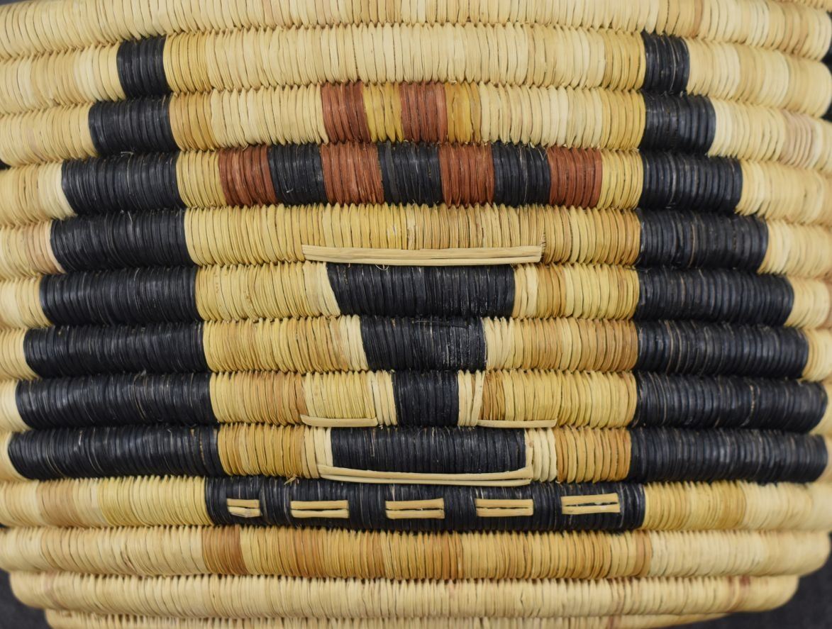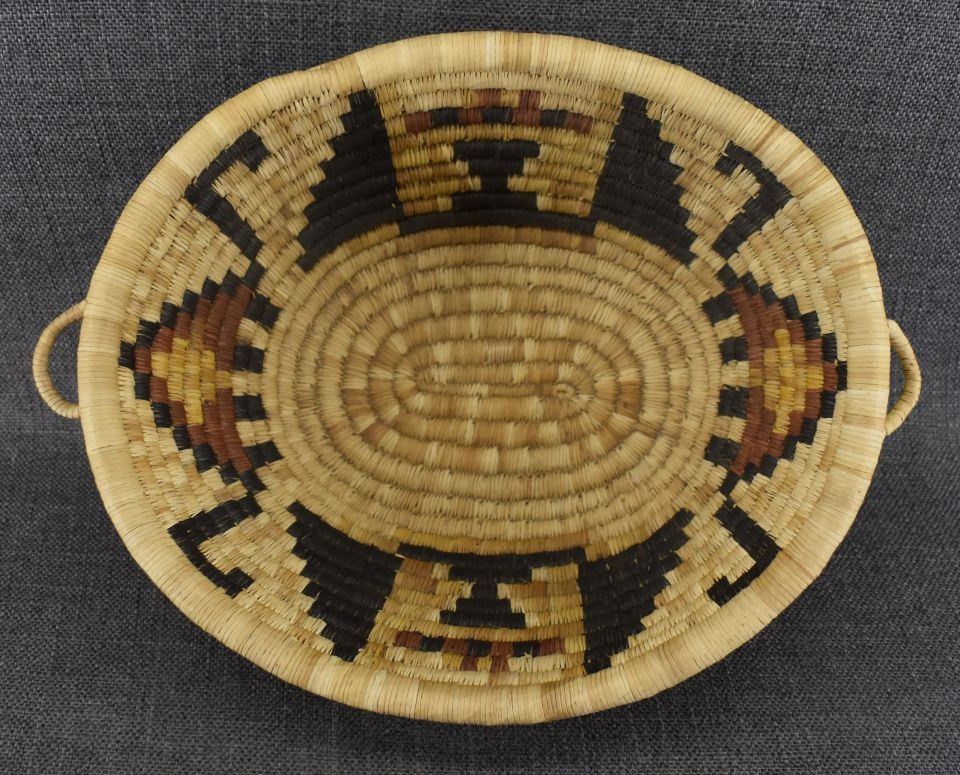 1980-90's Hopi, hand woven polychrome raincloud and kachina face design 5.5" x 11" x 9"