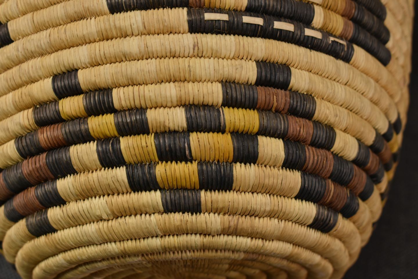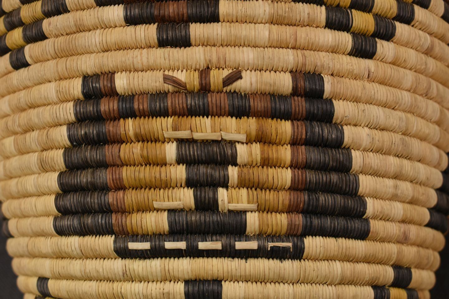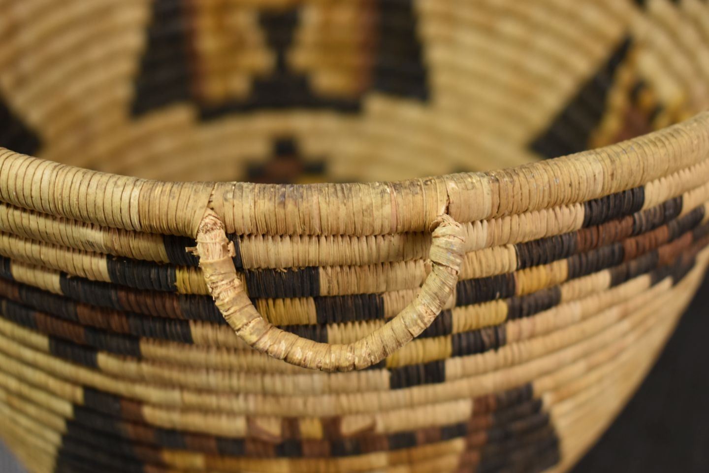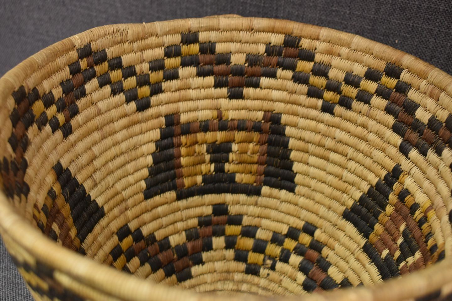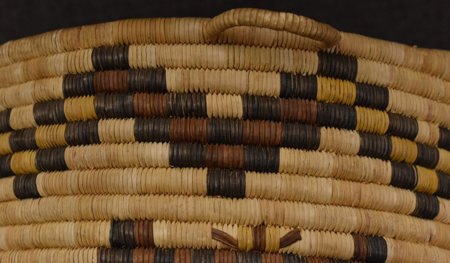 1970-80's Hopi 2nd Mesa, hand woven polychrome kachina face design 8.5" x 11" excluding handles