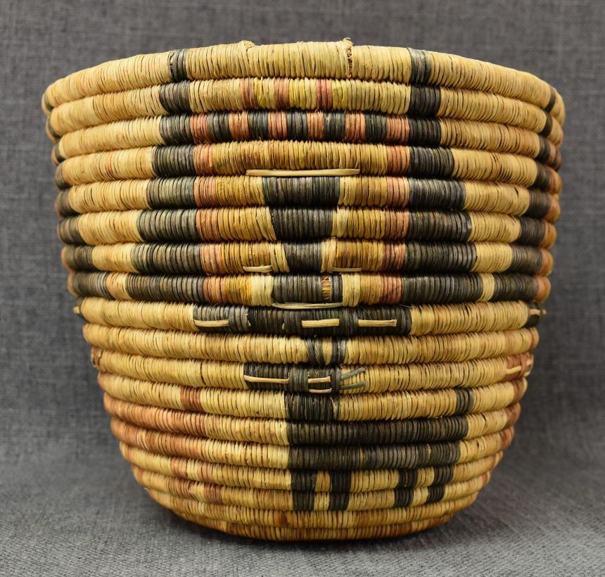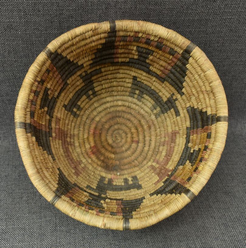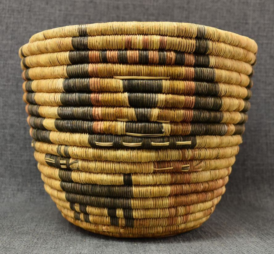 1970's Hopi 2nd mesa, hand coiled polychrome kachina face and animal design 7" x 9.25"