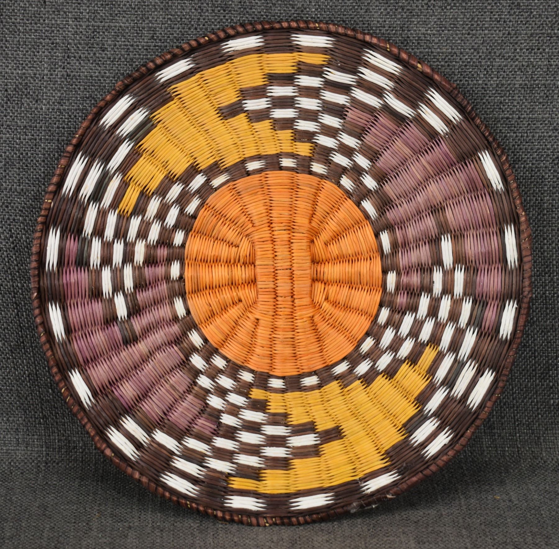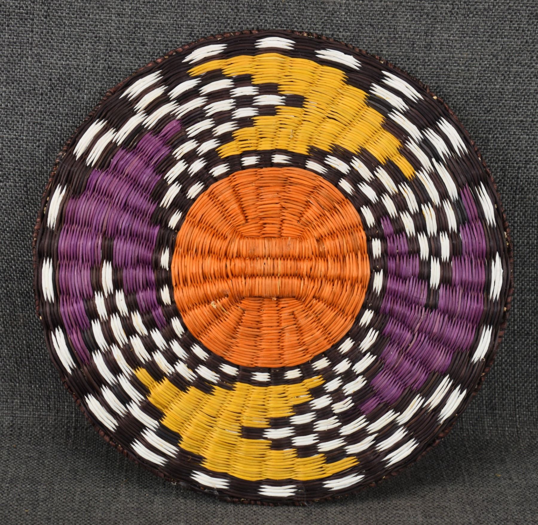 2000's Hopi, hand woven polychrome design attributed to Betsy Talashoma, 10.25" diameter