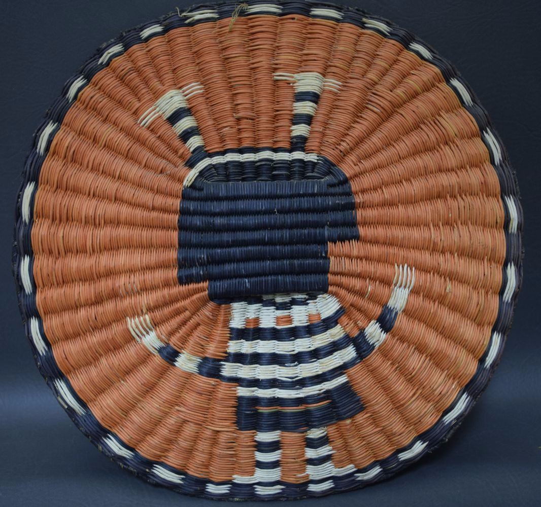 1950's third mesa wicker depicting koshari has fade. 2'' x 14''