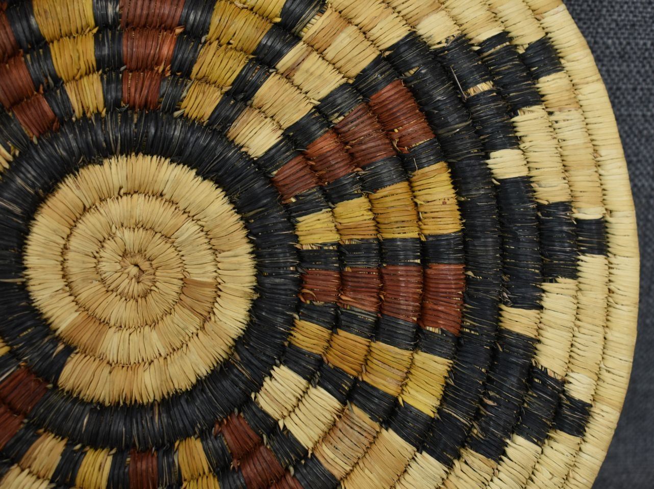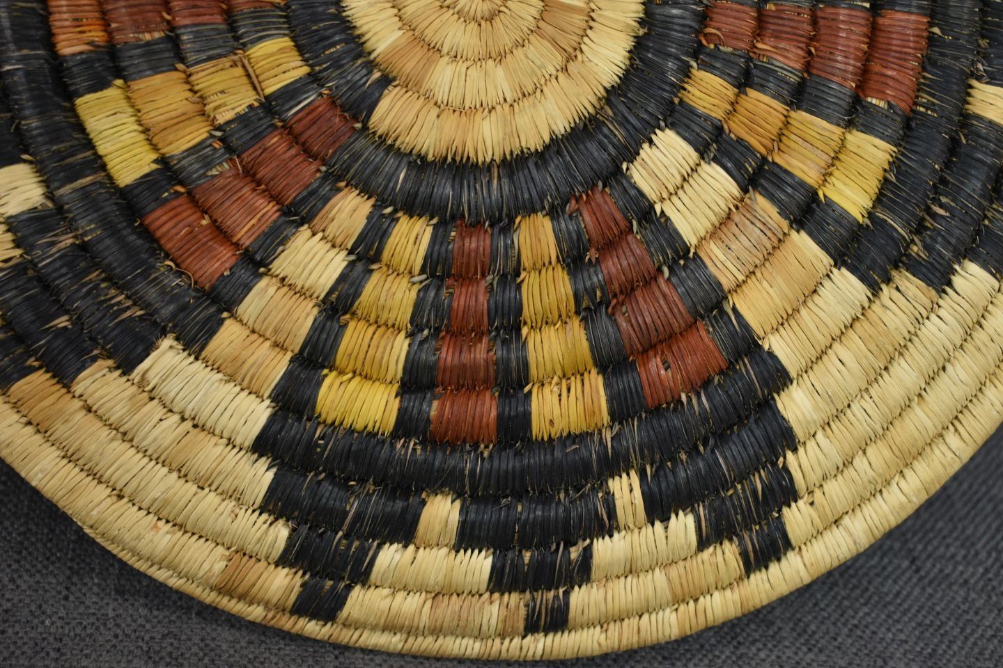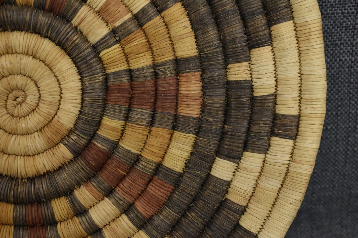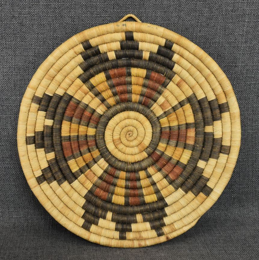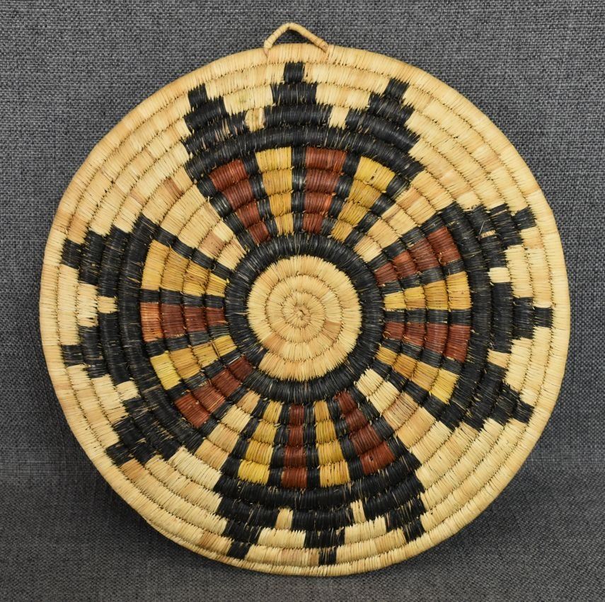 1980's Hopi. Hand woven second mesa basketry plaque, 1'' x 12''
