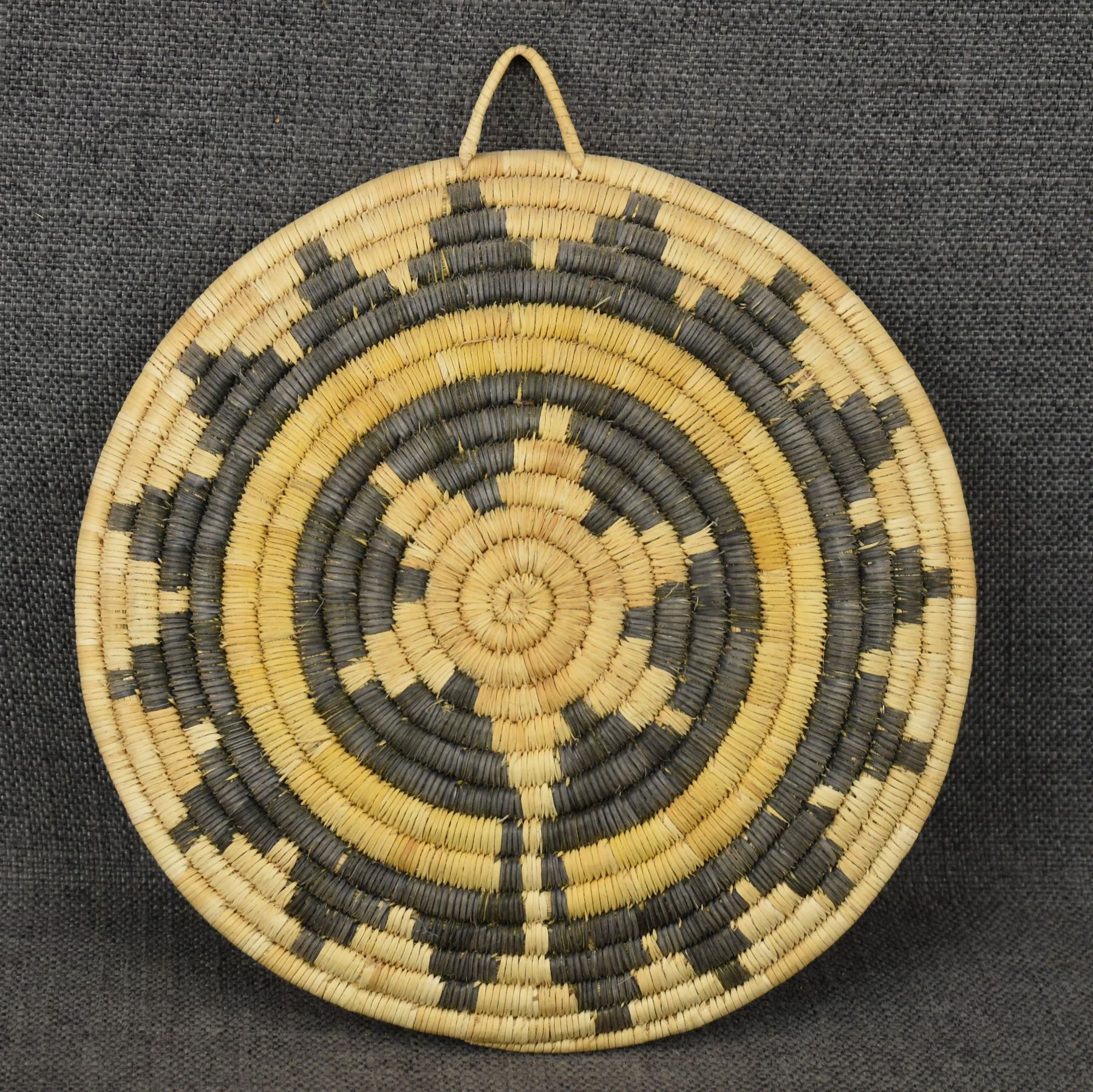 1980's Hopi 2nd mese, hand woven wedding basket design 9.25" diameter