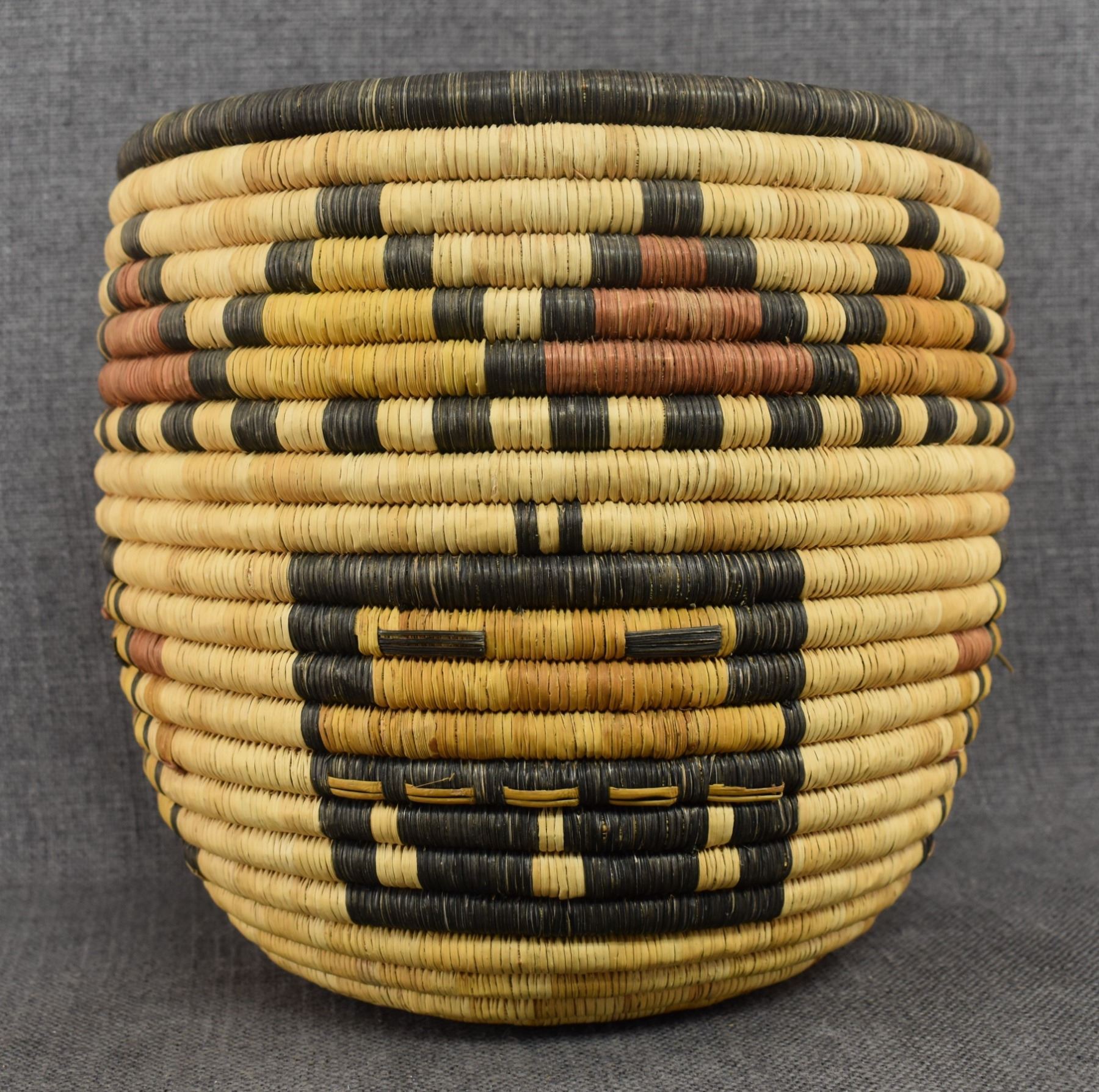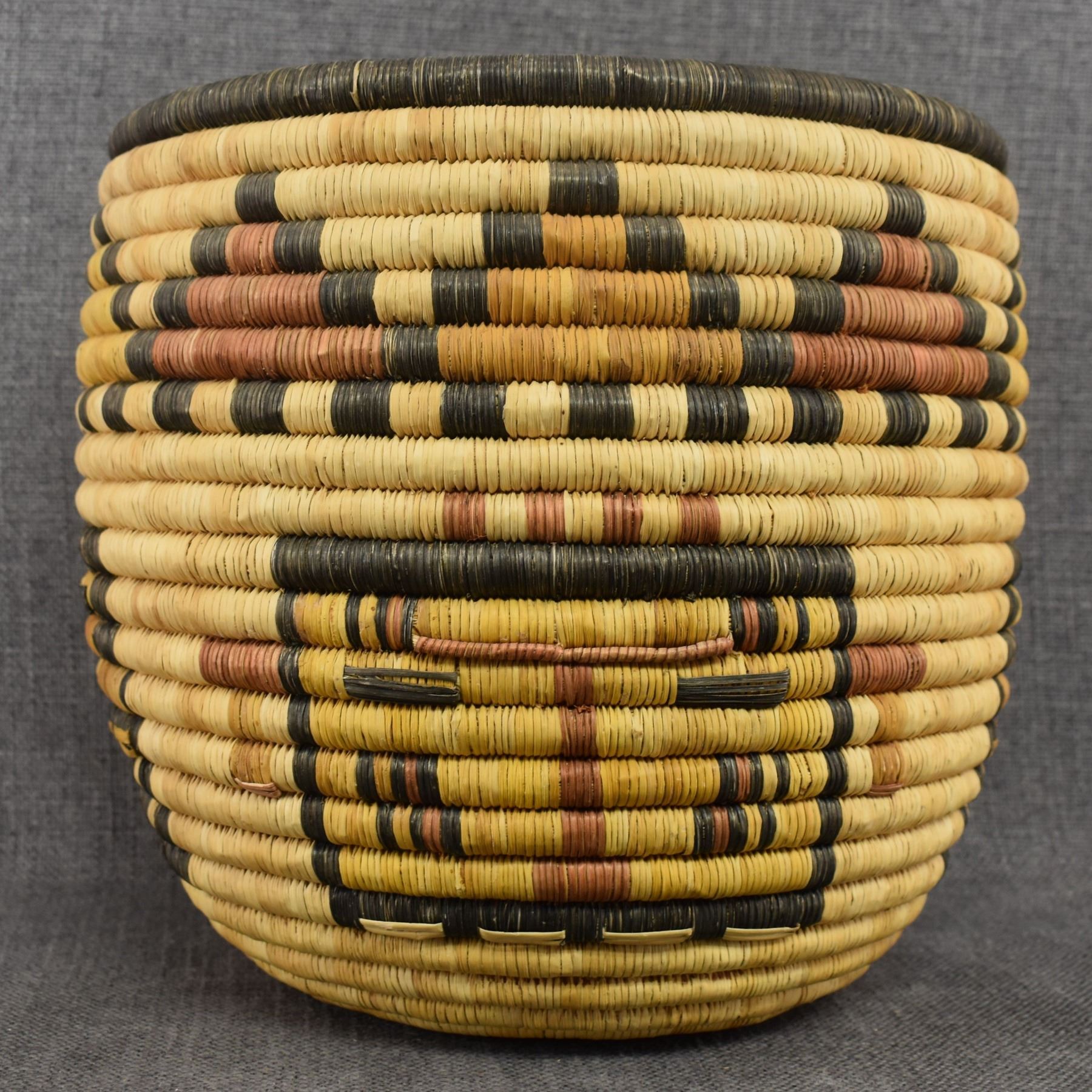 1980's Hopi. Hand woven poly chrome kachina face design. 9'' x 10''
