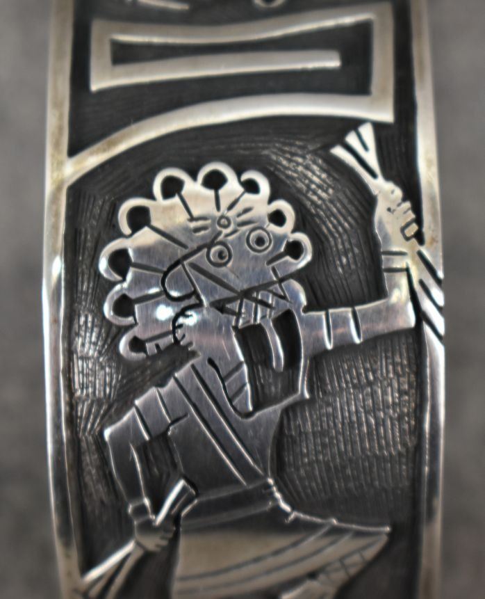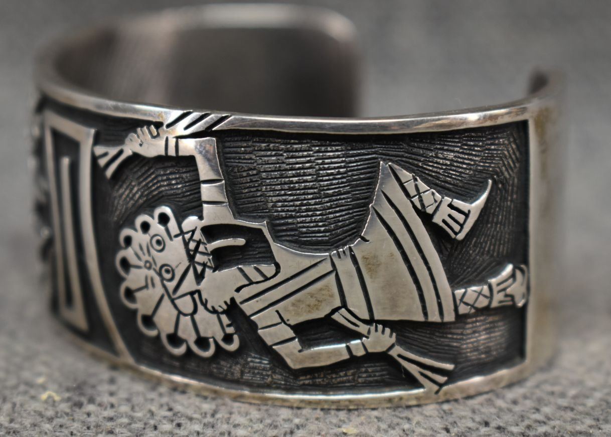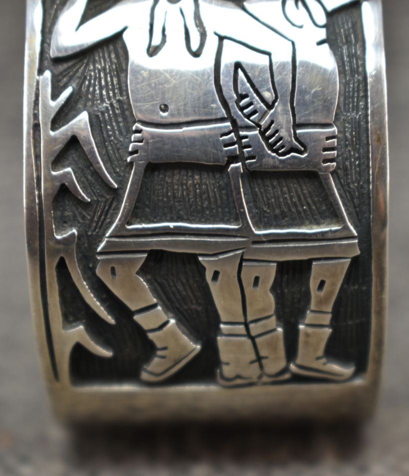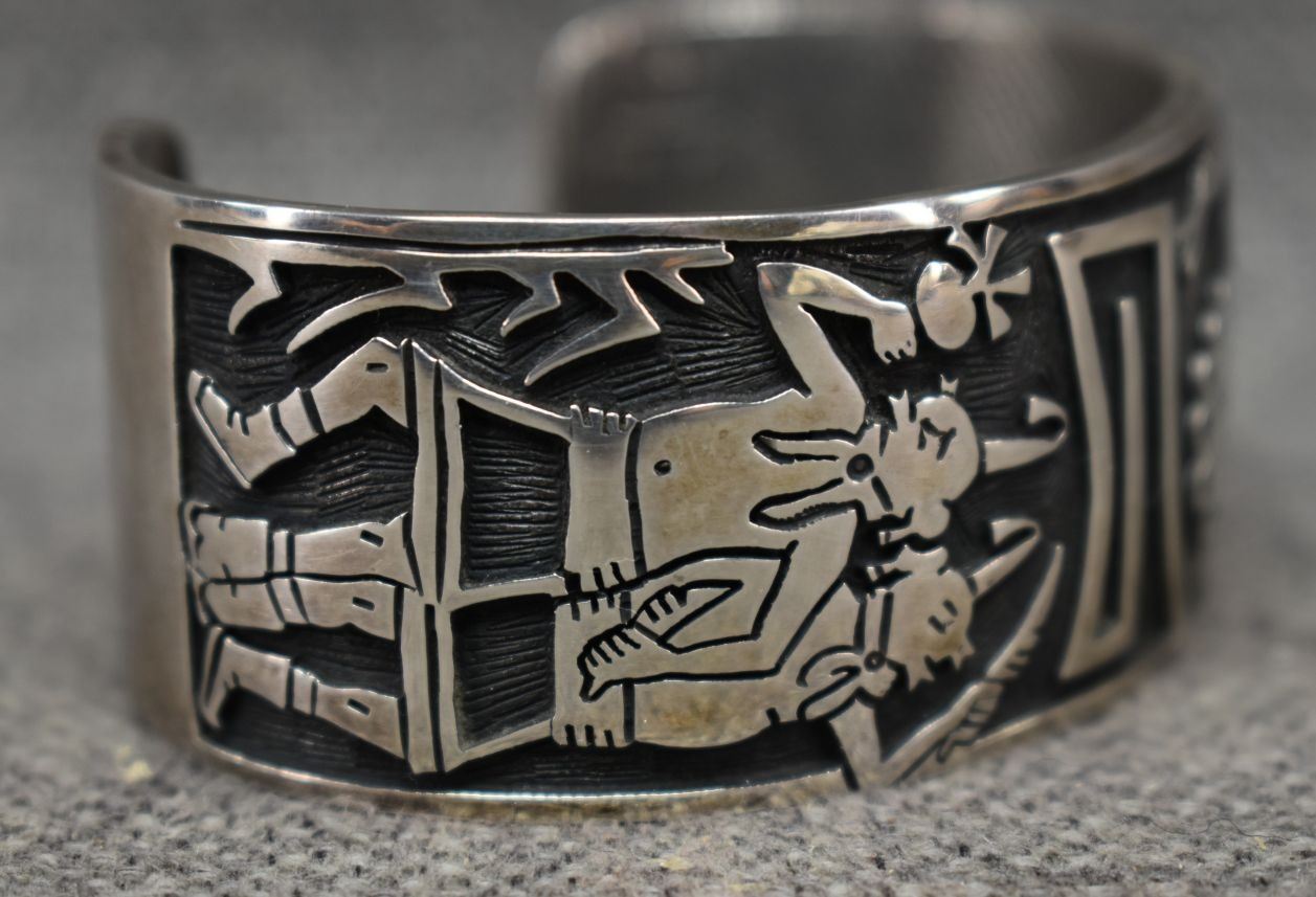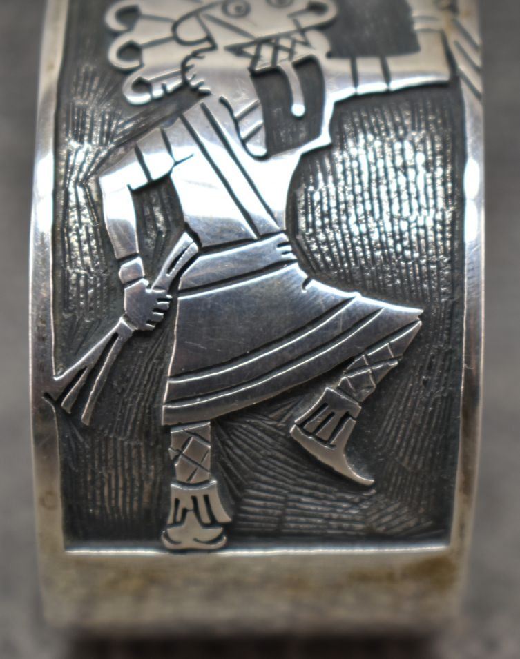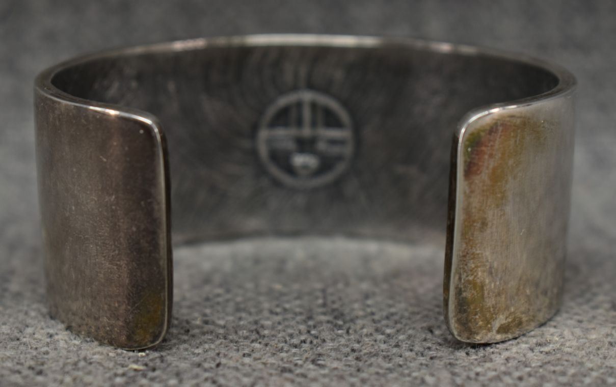 1990's Hopi. Sterling silver bracelet. Signed with hallmark. 1.25'' x 5.5'' x 1.25''. Total weight 89 grams