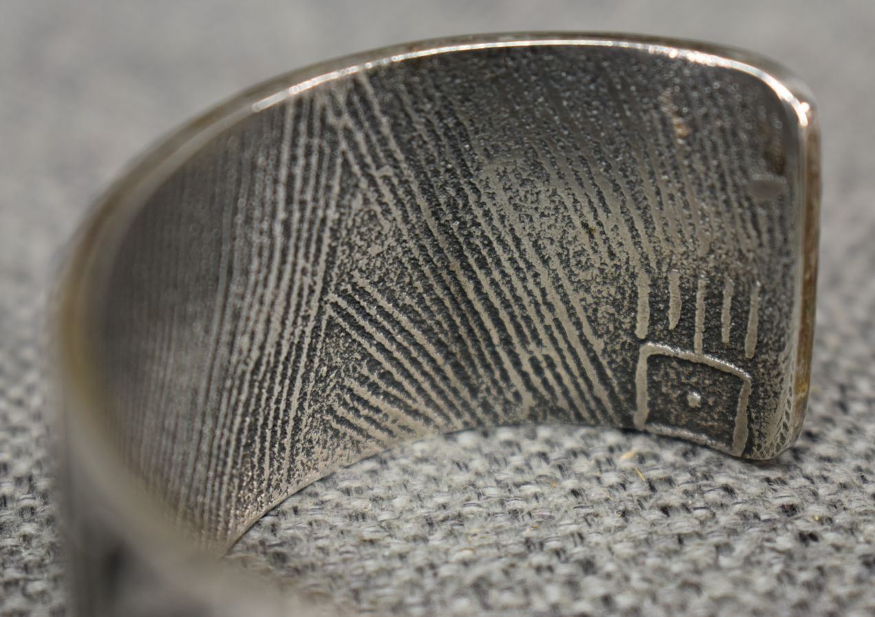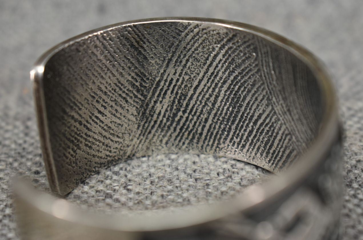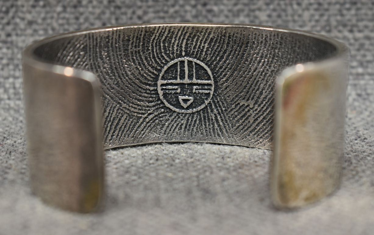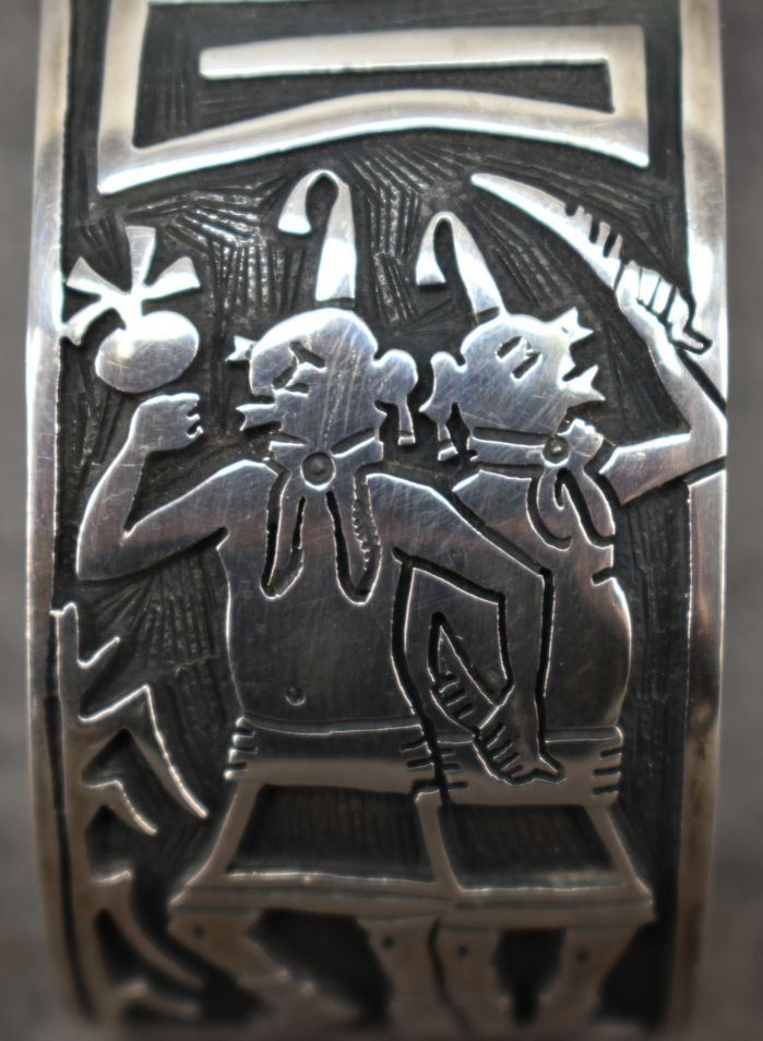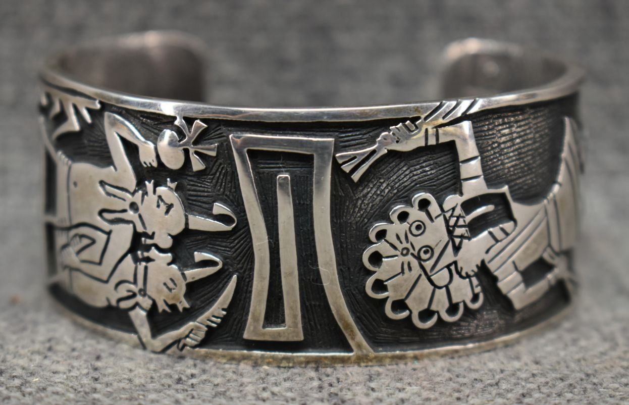 1990's Hopi. Sterling silver bracelet. Signed with hallmark. 1.25'' x 5.5'' x 1.25''. Total weight 89 grams