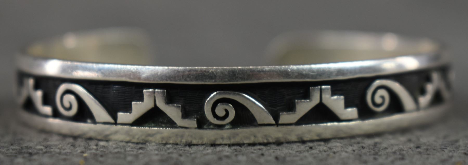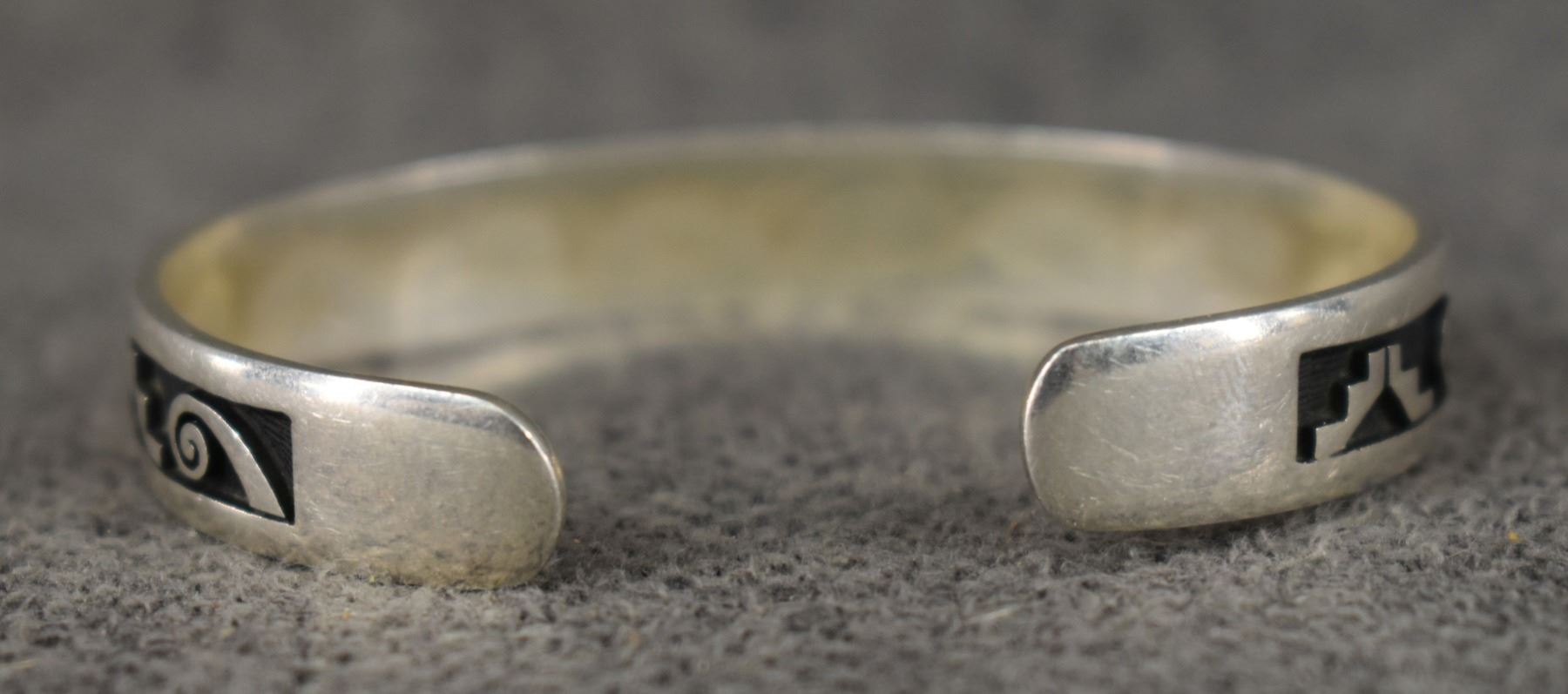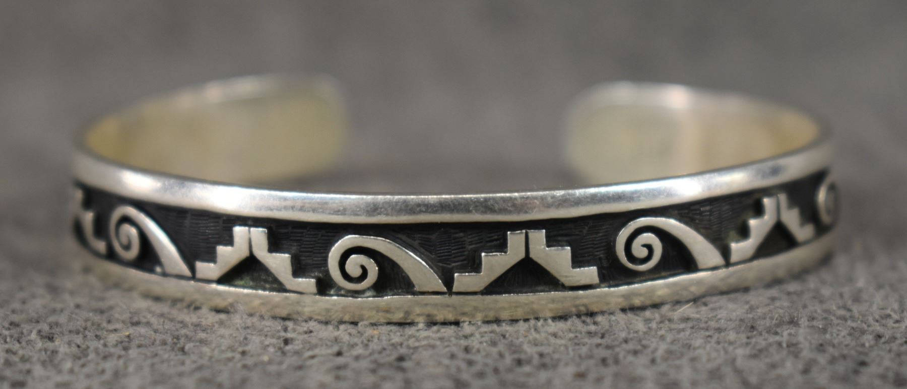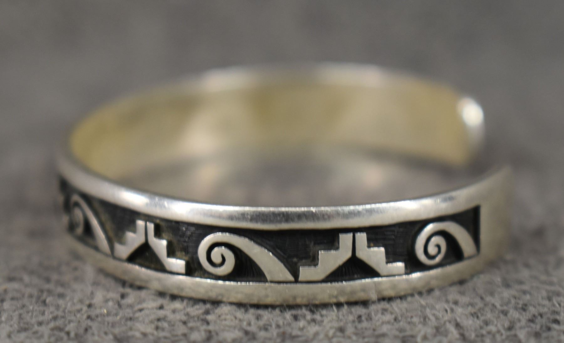 1990's Hopi sterling silver Bracelet with cut out design stamped L.K. for Lucion Koinva. .75" x 5.25" 15 grams