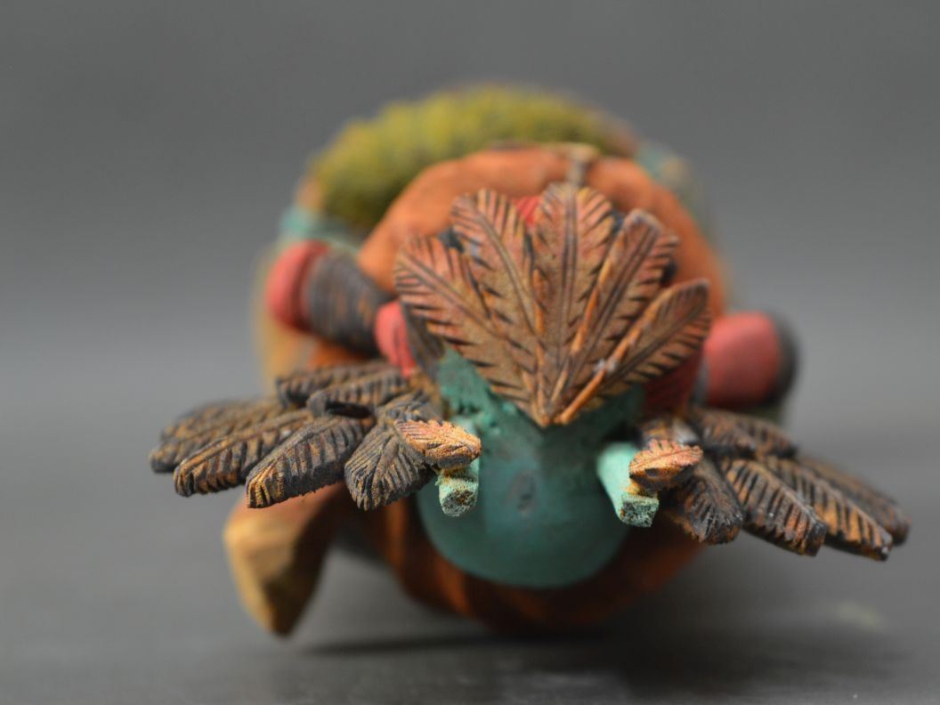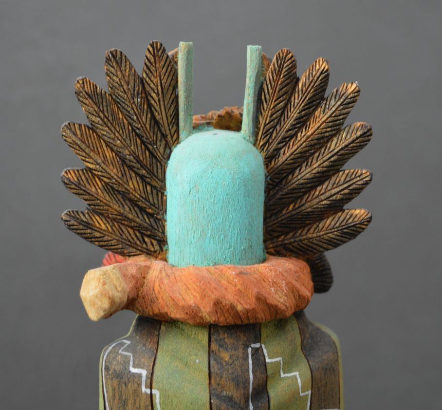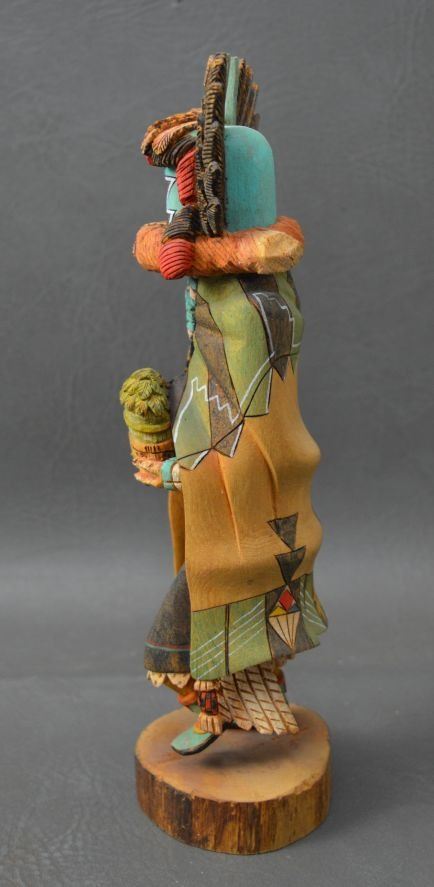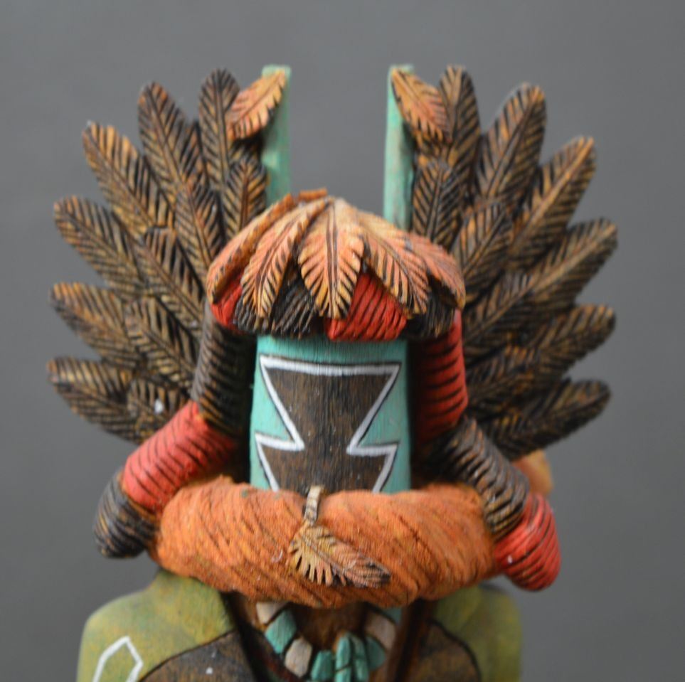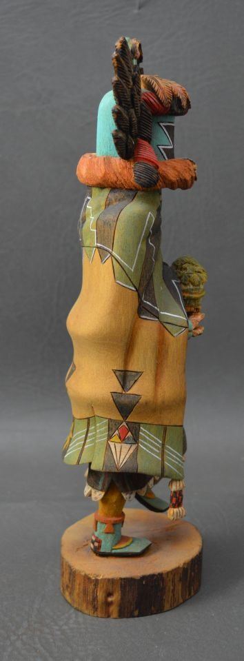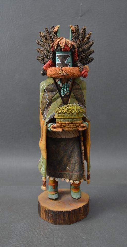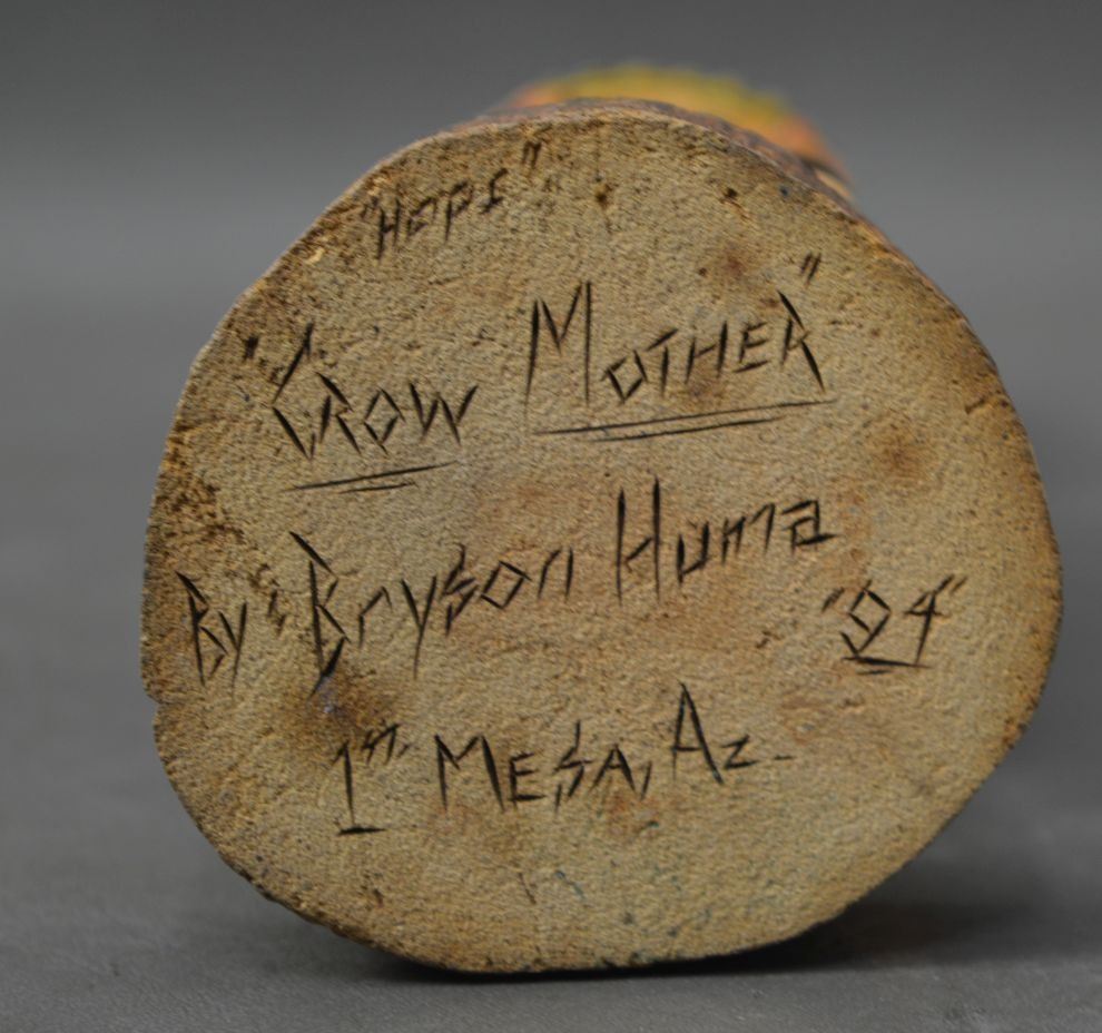 1994 Hopi Indian. Hand carved and painted cotton wood depicting Crow Mother, signed Bryson Huma. 10.5'' tall