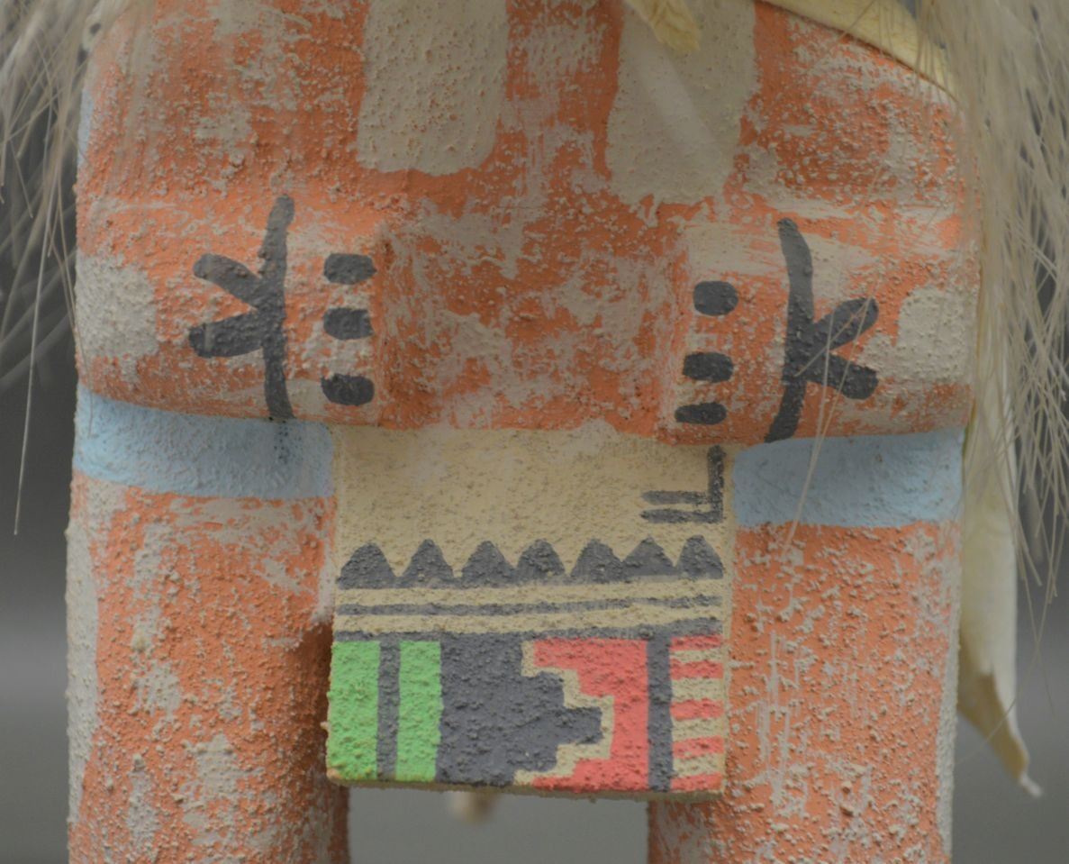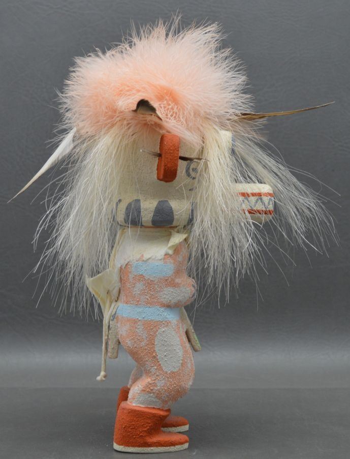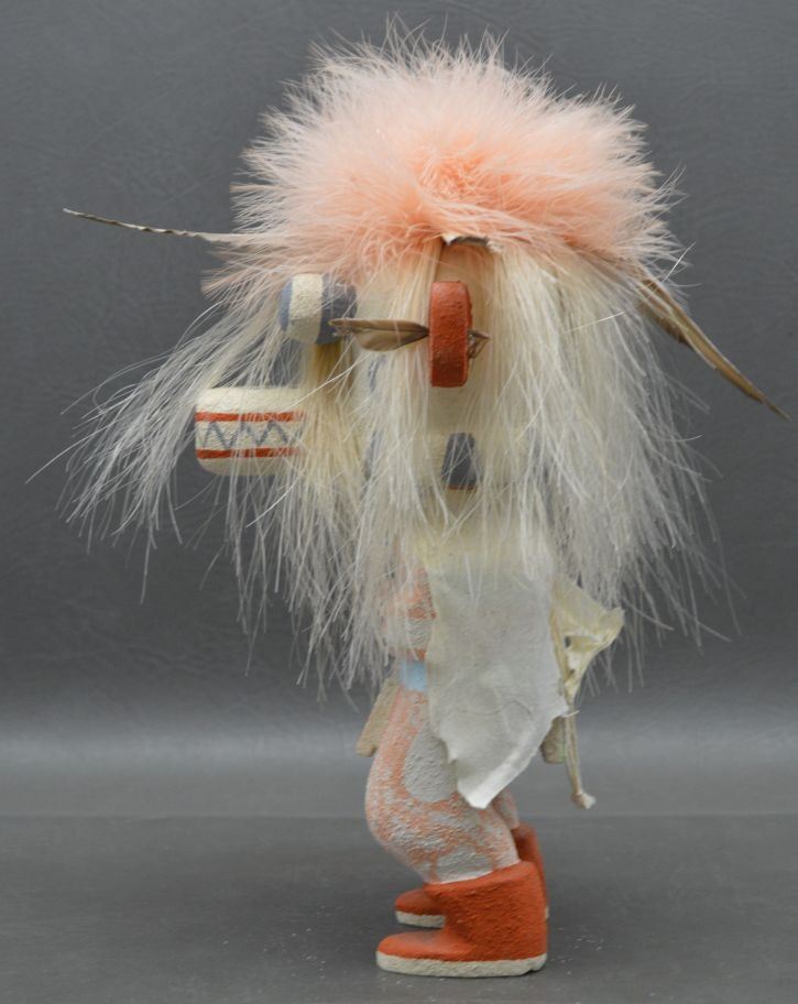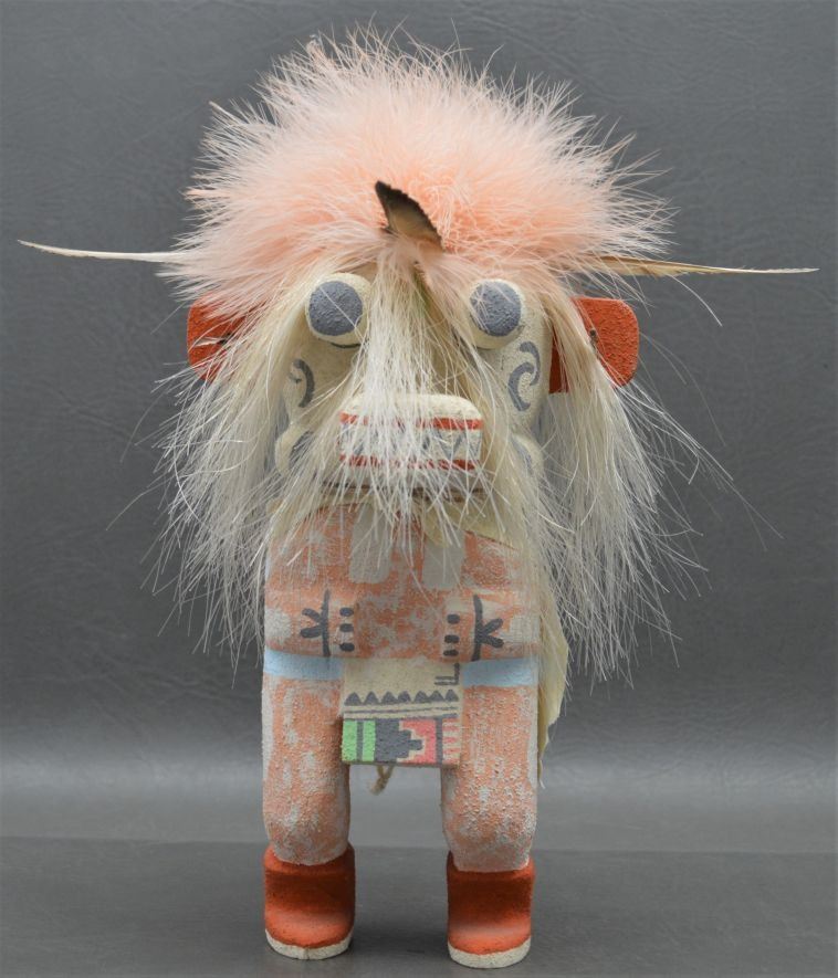 2000's Hopi Indian, hand carved and painted cotton wood depicting White Ogre signed Chester Poleyestewa. 12'' tall.