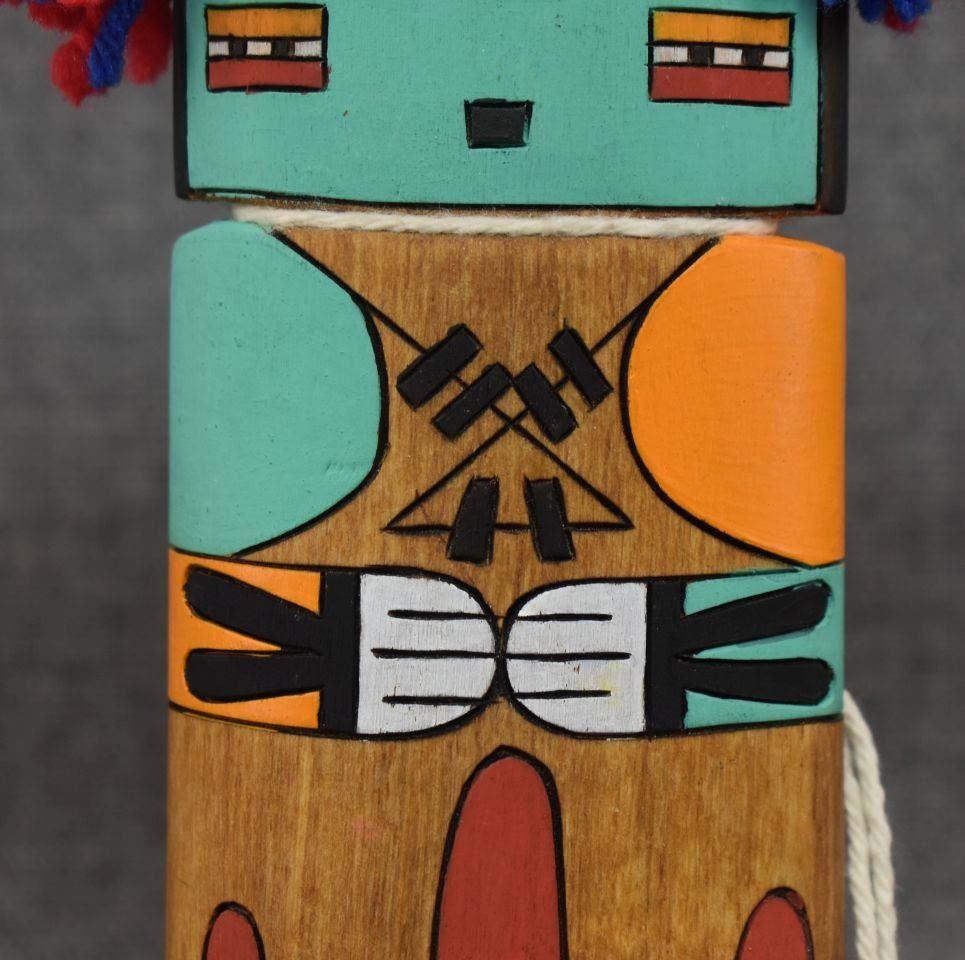 2000's Hopi Indian, hand carved and painted cotton wood Kachina, signed Dennis Koots. 8'' tall