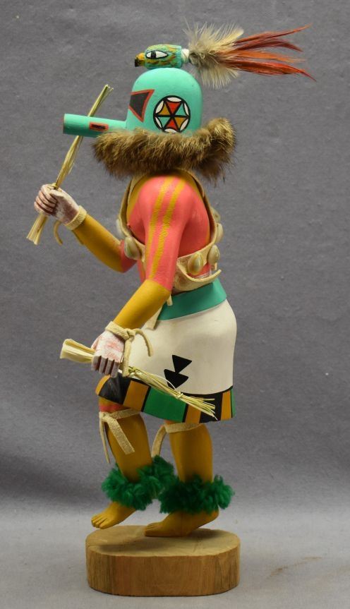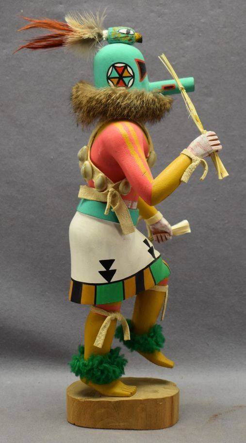 1970's Hopi Indian, hand carved and painted cotton wood Kachina. Signed Earl Yowytewa. 13'' tall