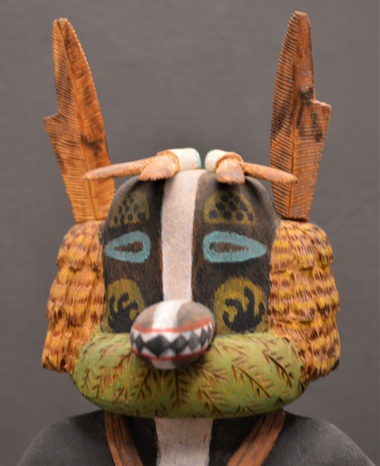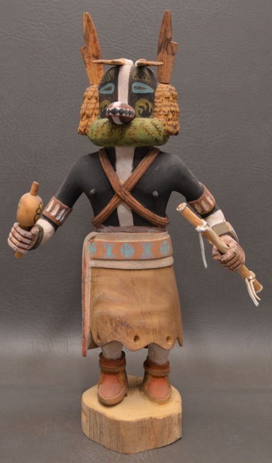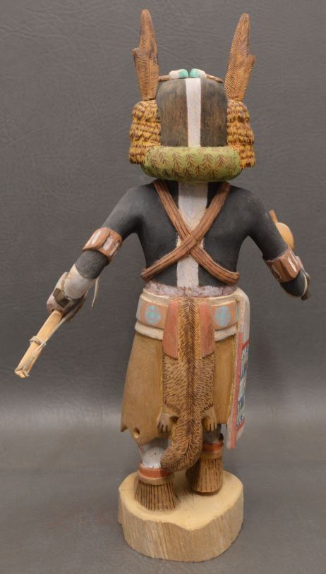 1990's Hopi Indian . Hand carved and painted cotton wood kachina signed Everett Tawahongva. 14'' tall