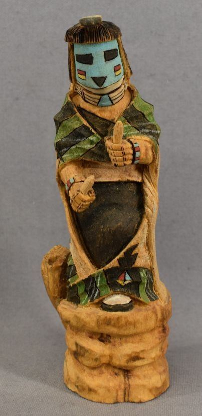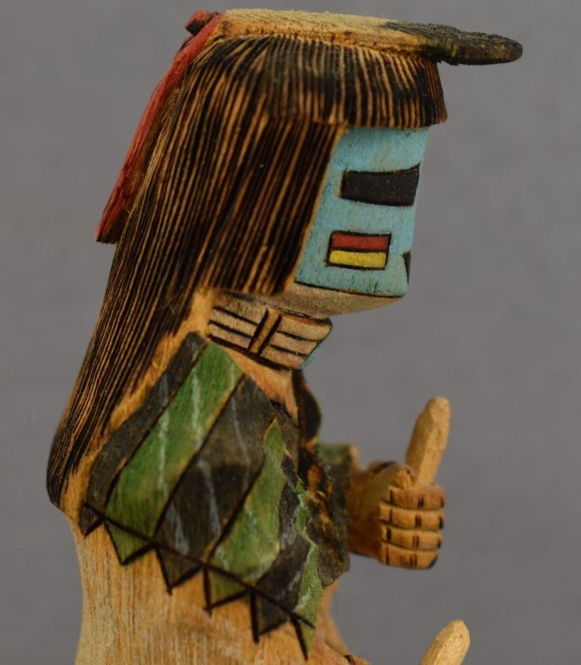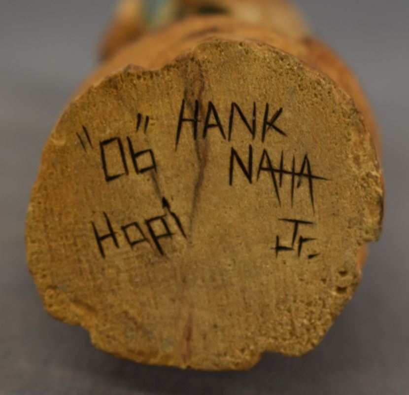 1990's Hopi Indian . Hand carved and painted cotton wood kachina. Signed Hank Naja Jr. 7'' tall