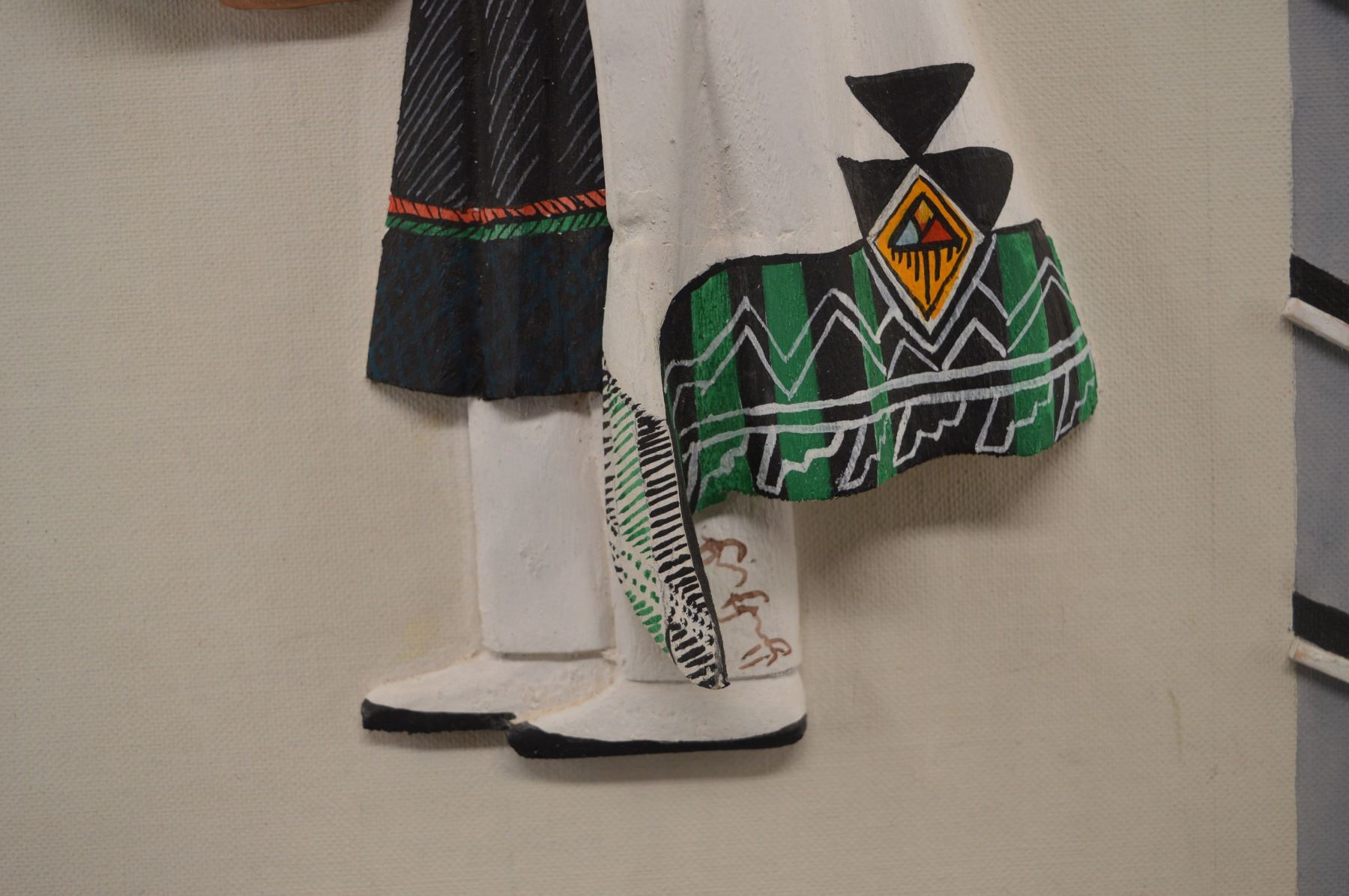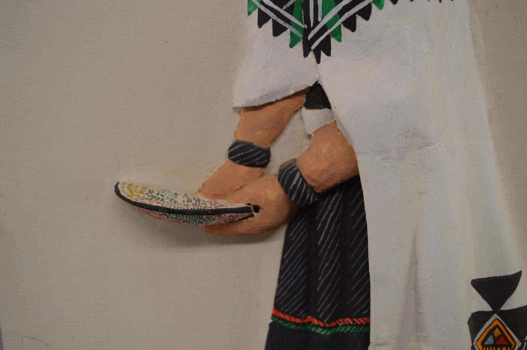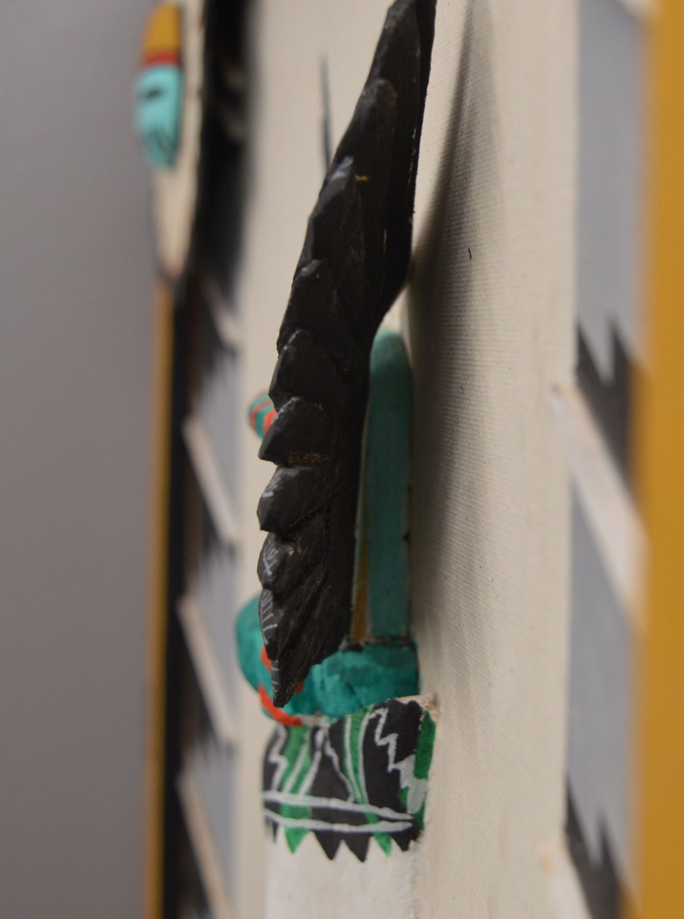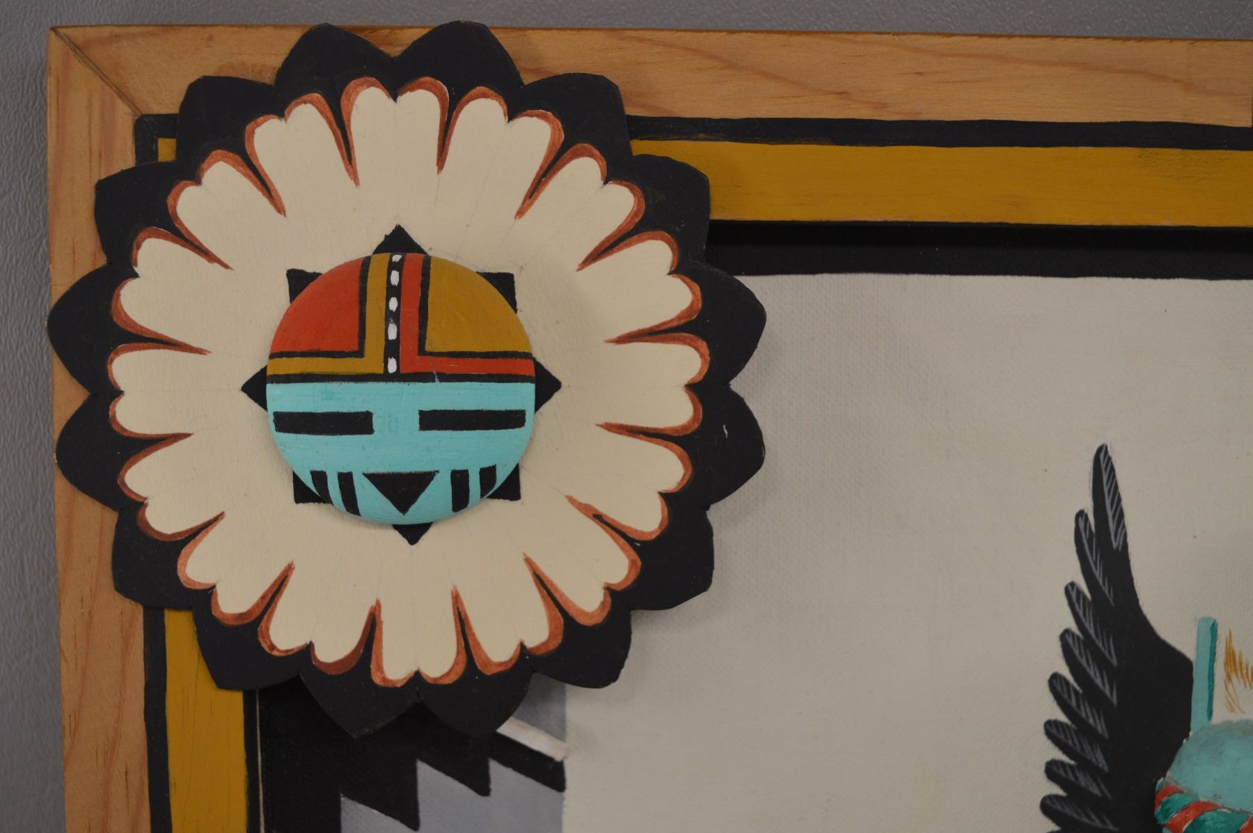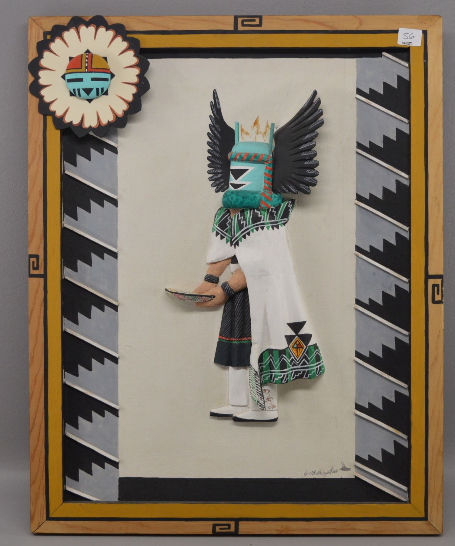 1960's Hopi Indian. Hand carved cotton wood and painted 3 dimensional painting and frame by Cliff Bahnimptewa. 19.5'' x 15.5''