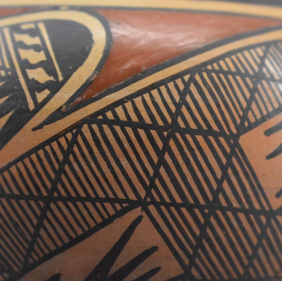1970's Hopi Indian. Hand coiled and painted migration design pottery jar, signed Tonita Nampeyo. 3'' x 4.25''