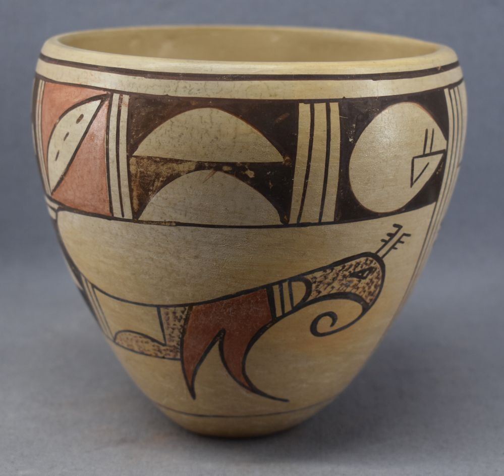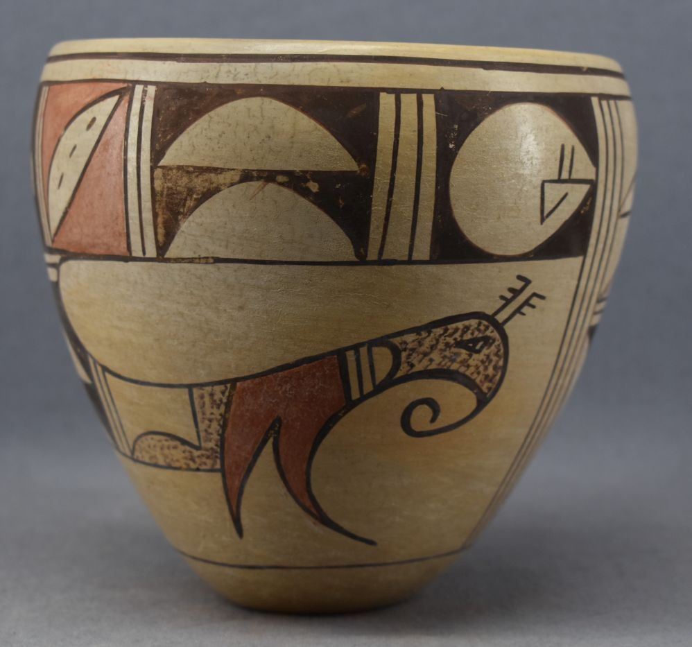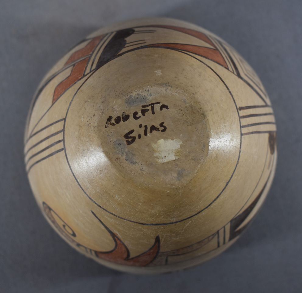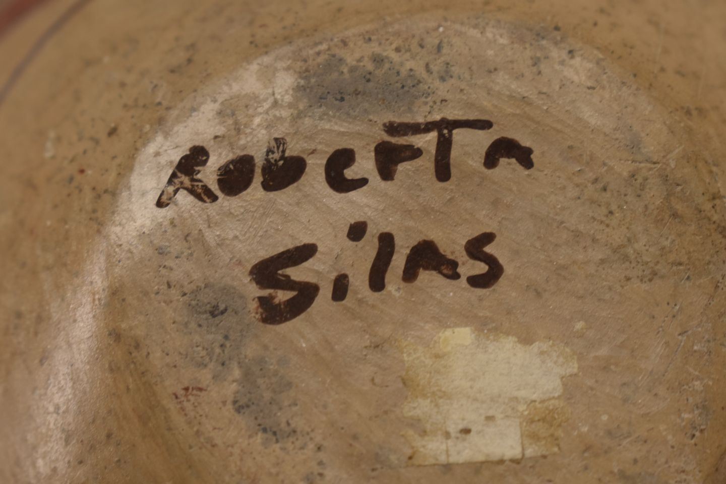 1980's Hopi Indian, hand coiled an painted pottery vase , signed Roberta Silas. 6.5'' x 6.5'''