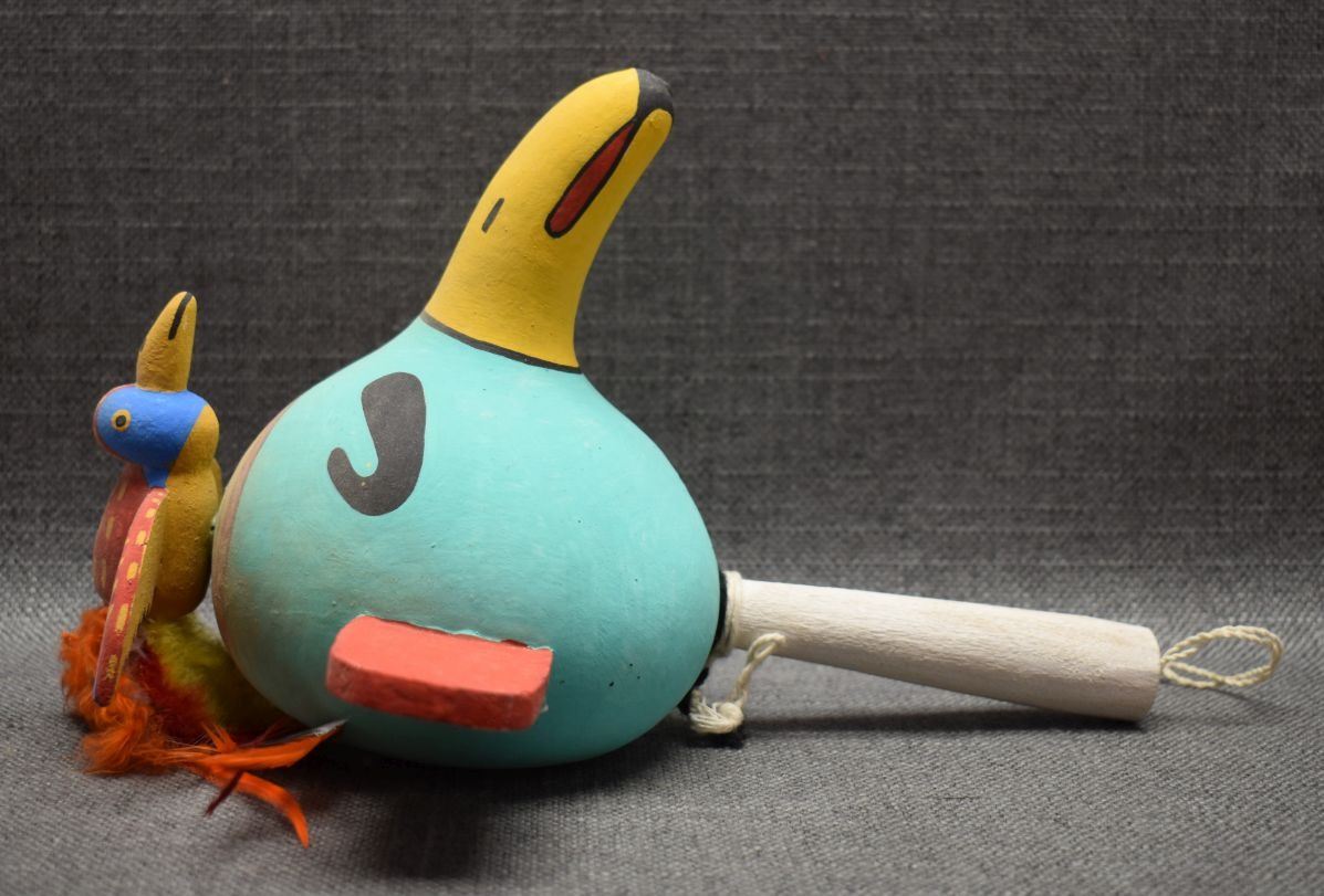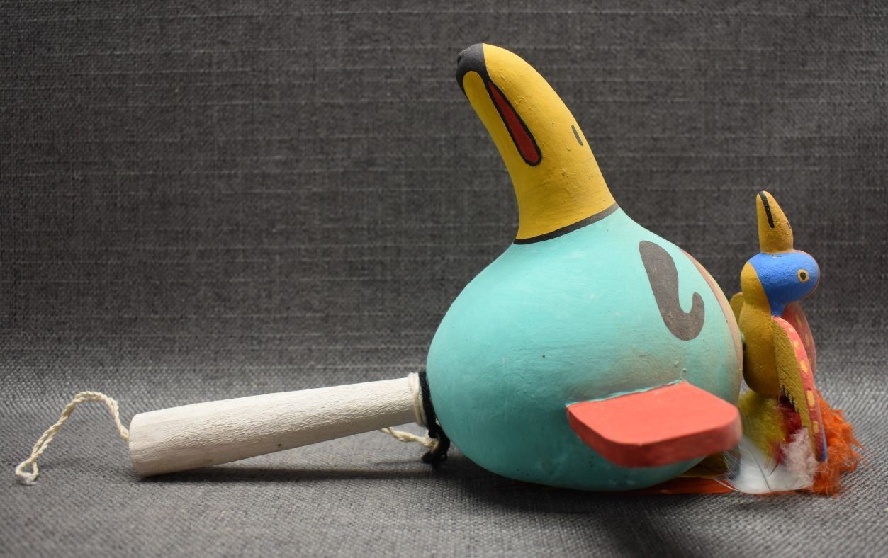 1970's Hopi Indian. Hand carved and Painted gourd rattle. 11'' x 8'' x 7''