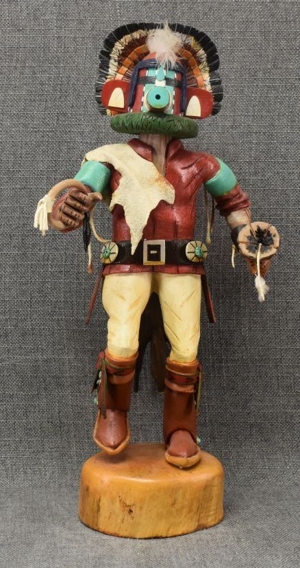 1990-2000's Hopi, carved and painted cottonwood depicting corn dancer kachina by Aaron Fred 16" tall