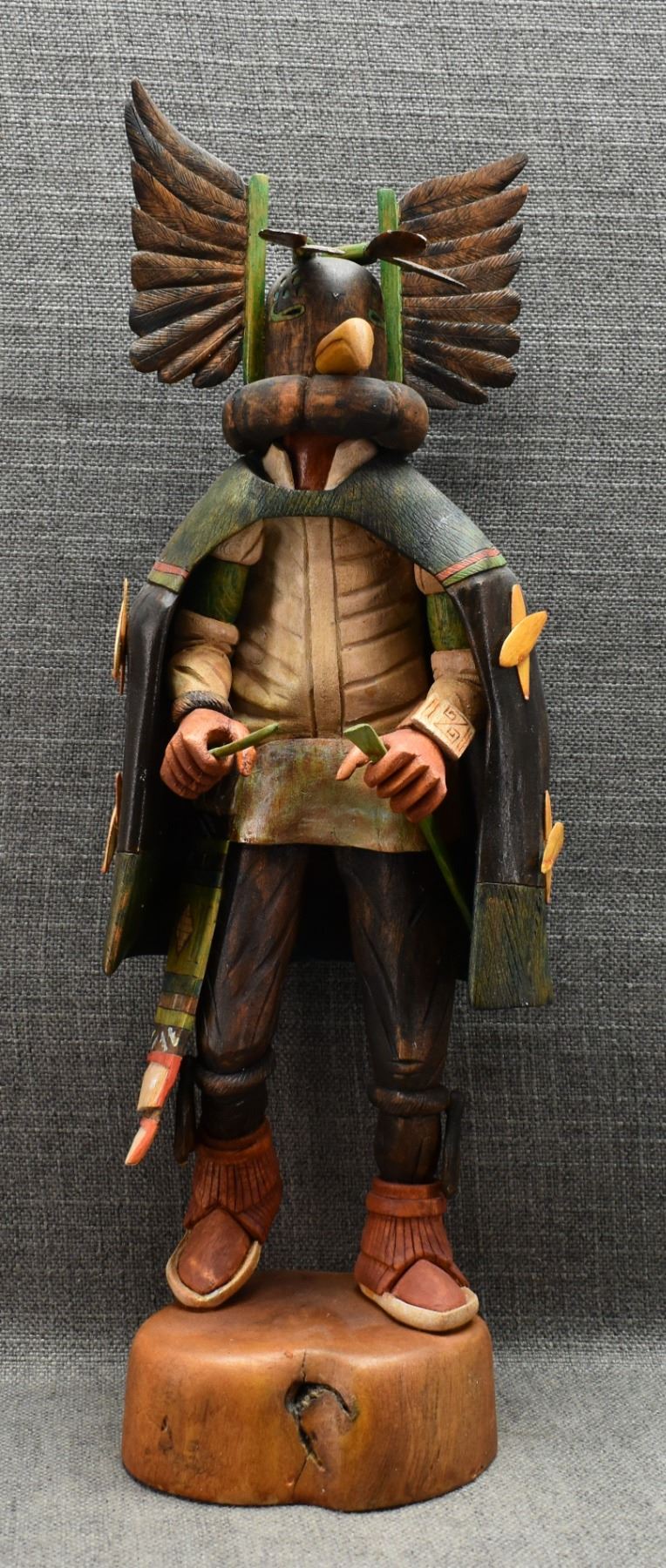 1990's Hopi, carved and painted cottonwood depicting crow dancer kachina by Aaron Fred 18.5" tall