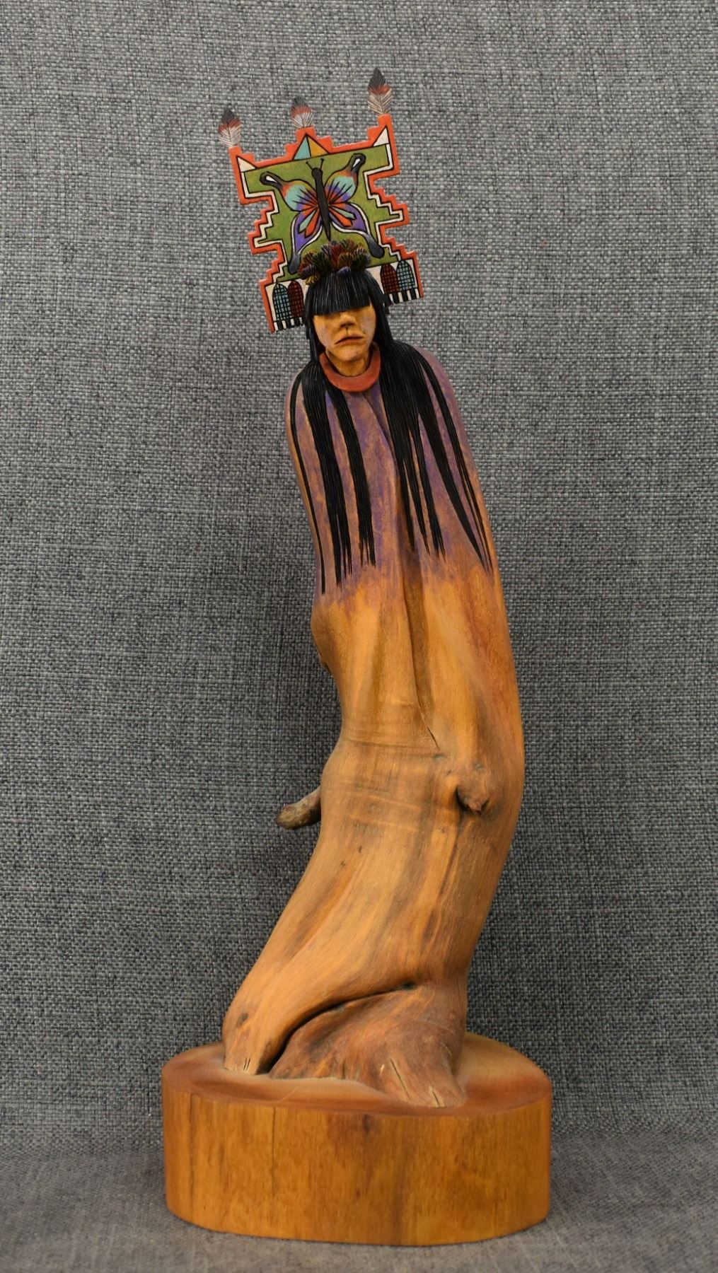 1990's Hopi, hand carved and painted cottonwood "butterfly girl (Poli-Mana)" by Armand Fritz 15.5" tall