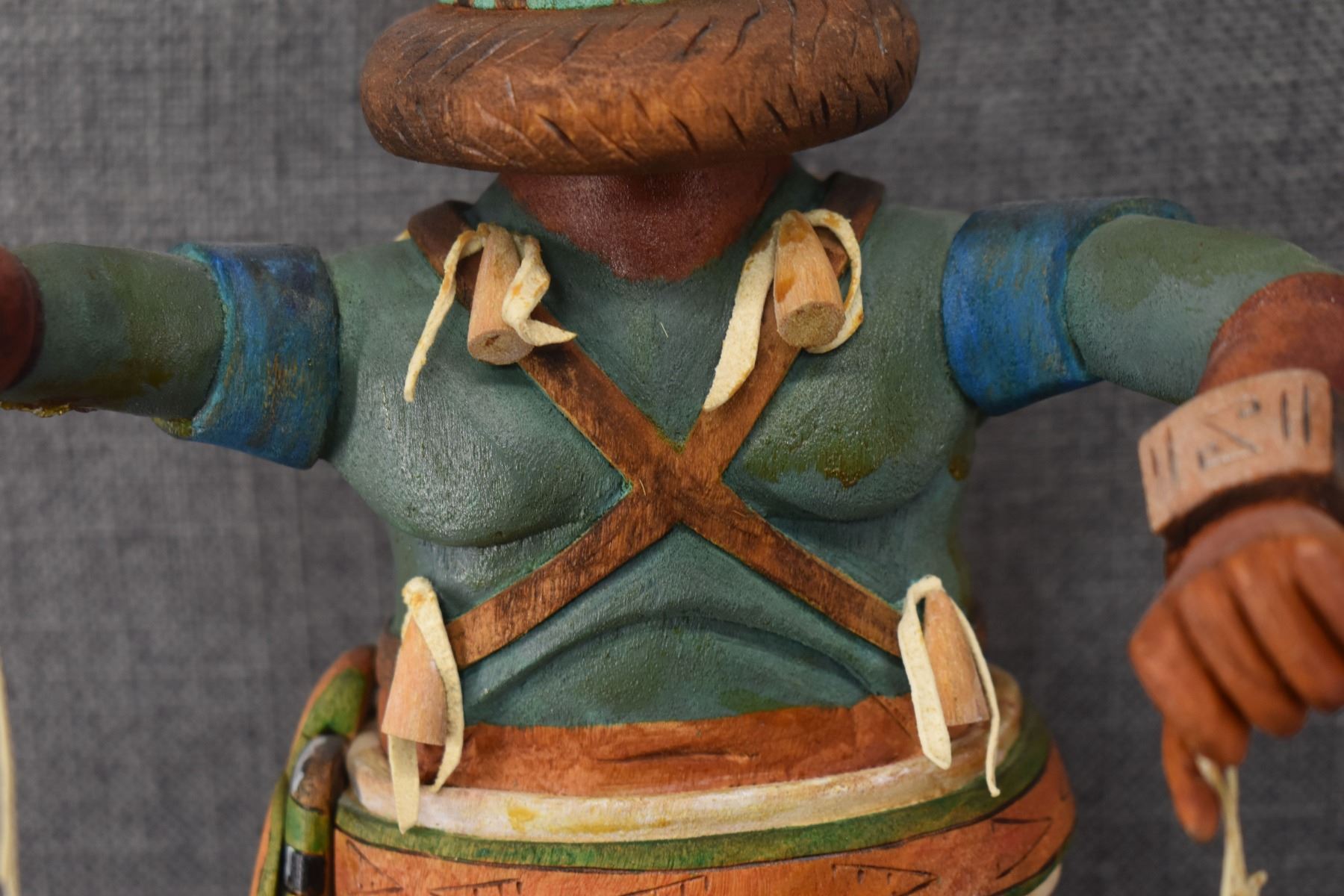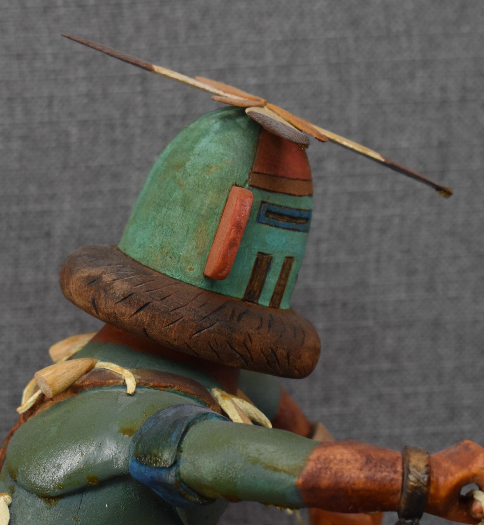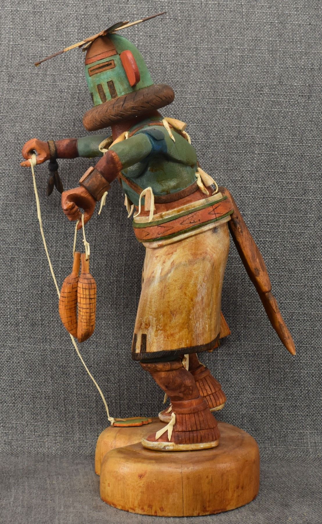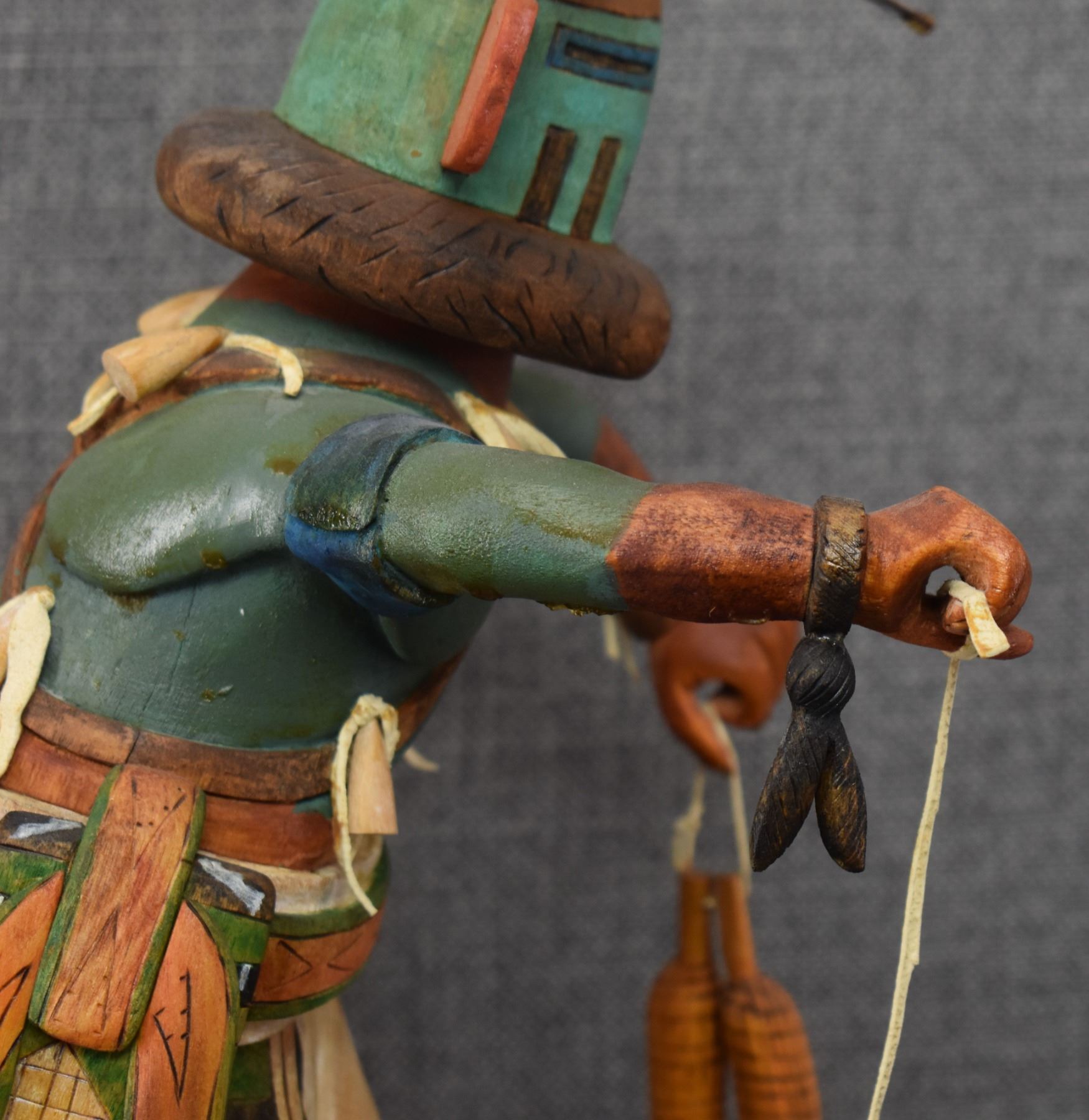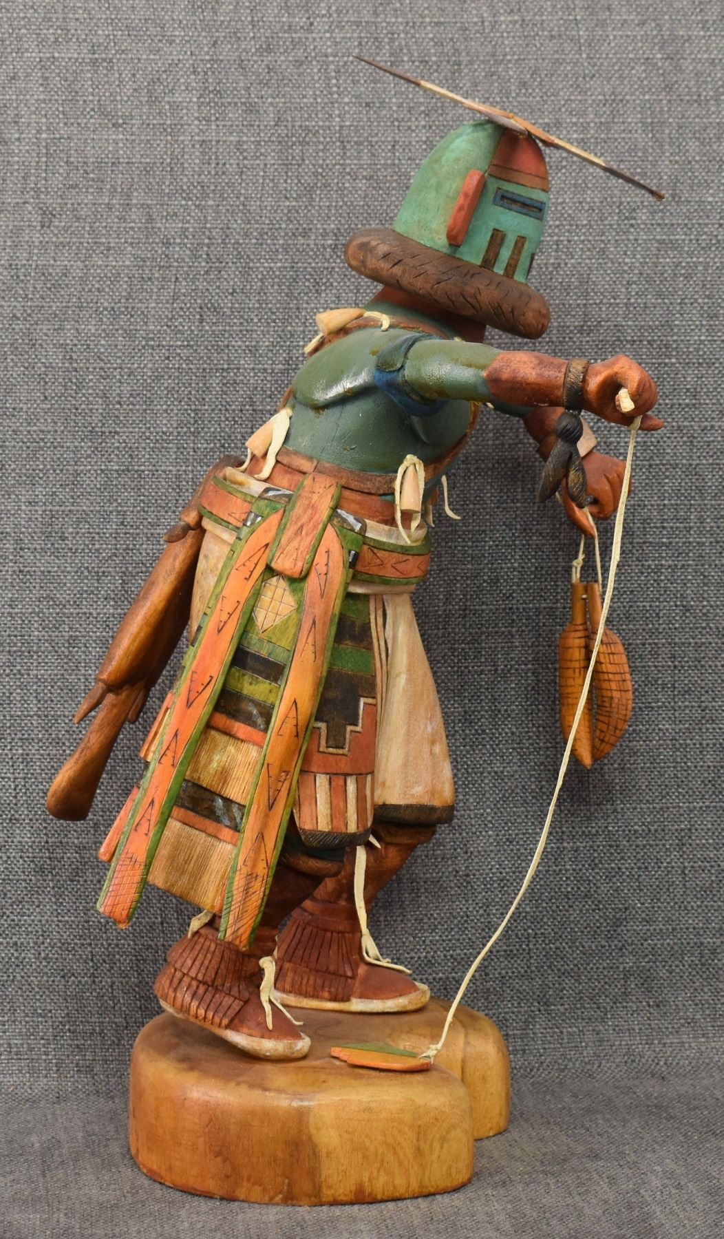 1990's Hopi. Hand carved and painted cotton wood kachina, signed Arron Fred. 17'' tall