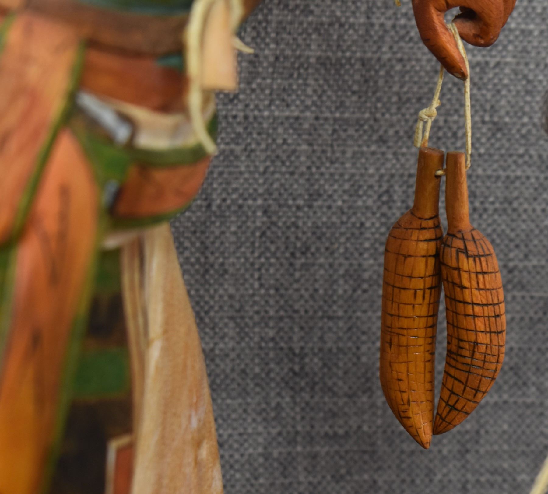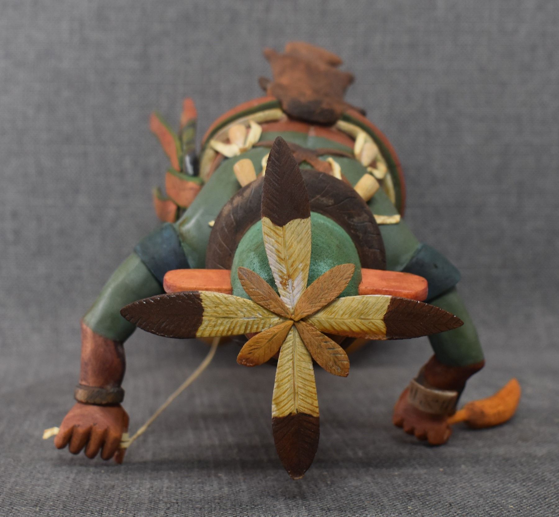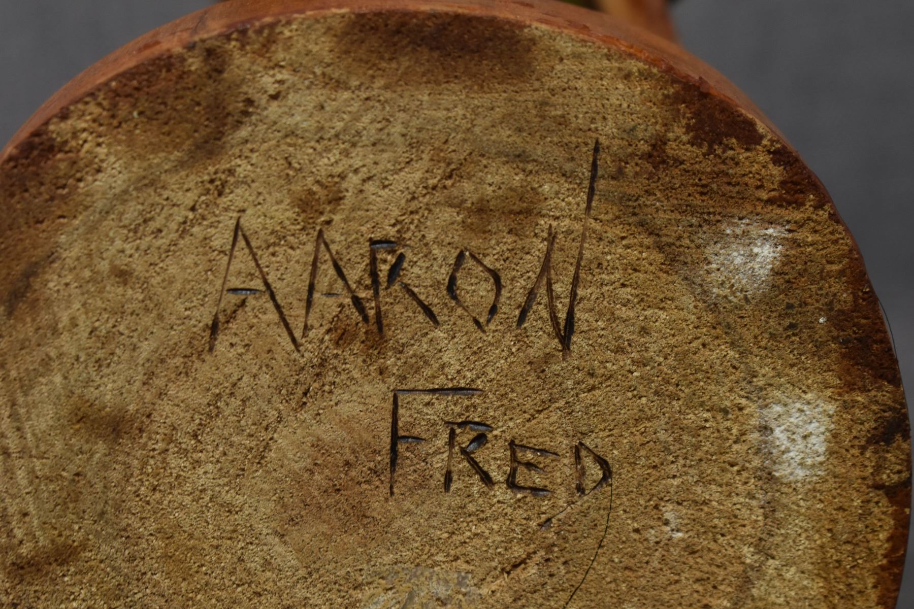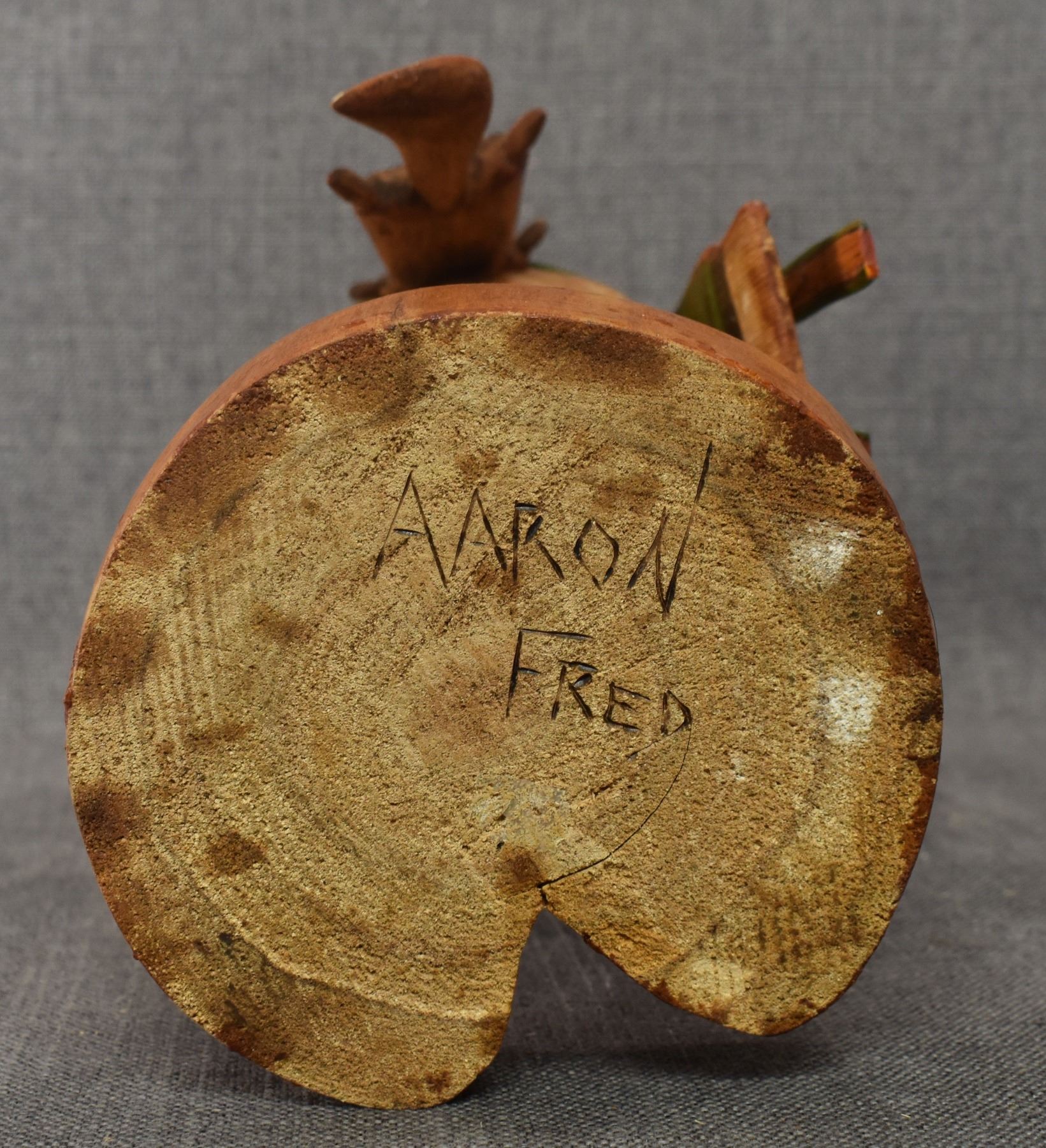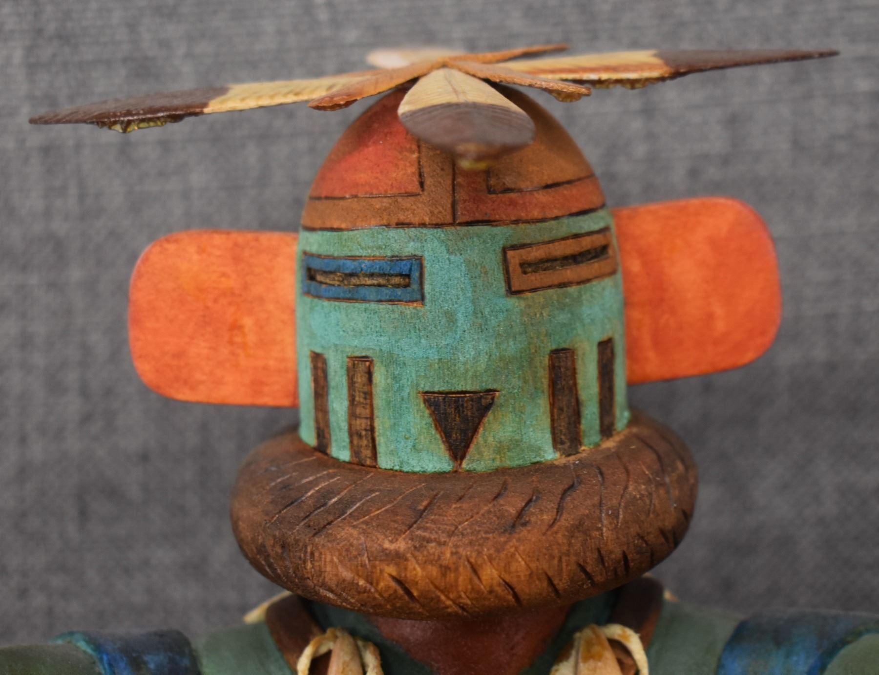 1990's Hopi. Hand carved and painted cotton wood kachina, signed Arron Fred. 17'' tall