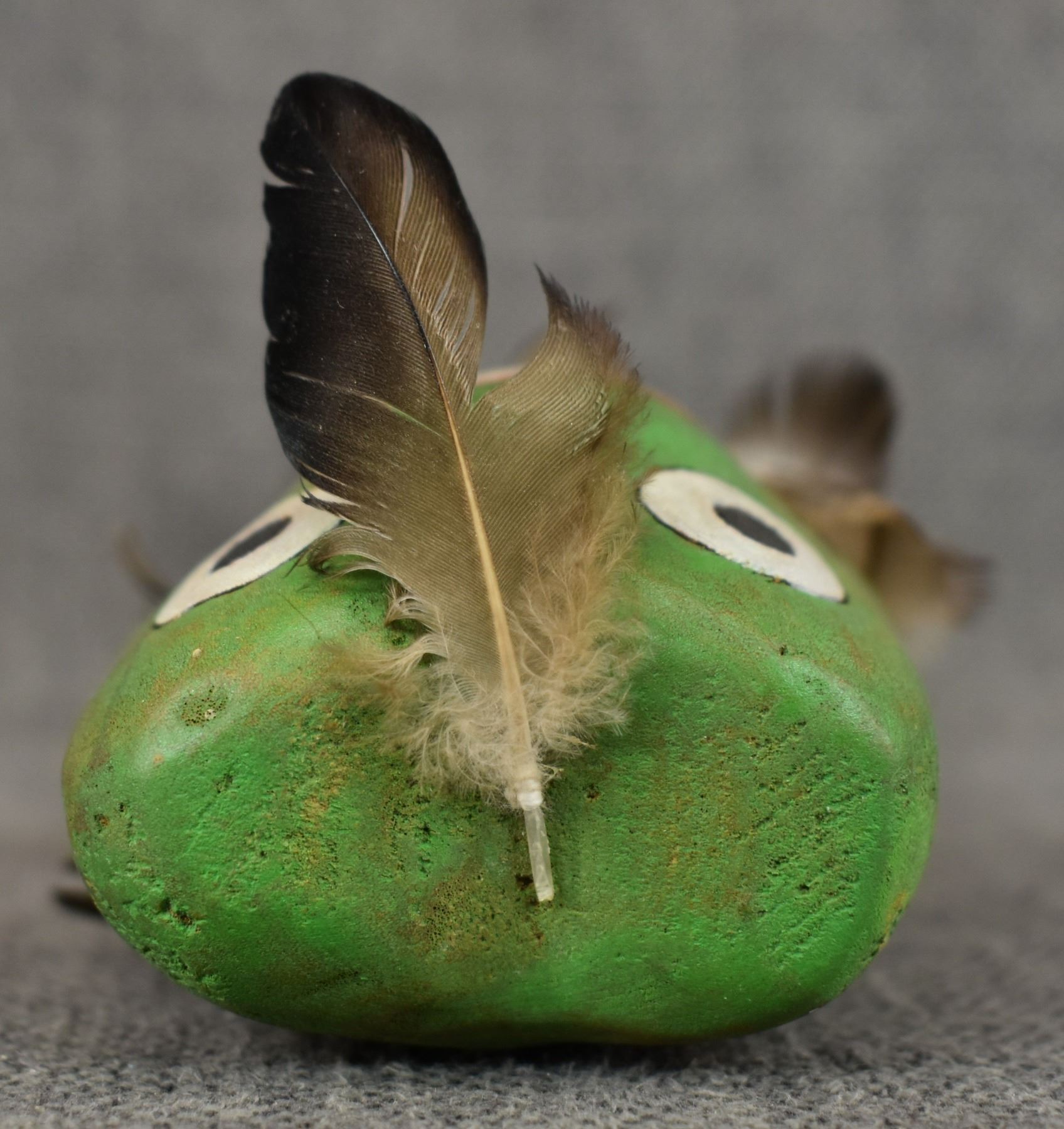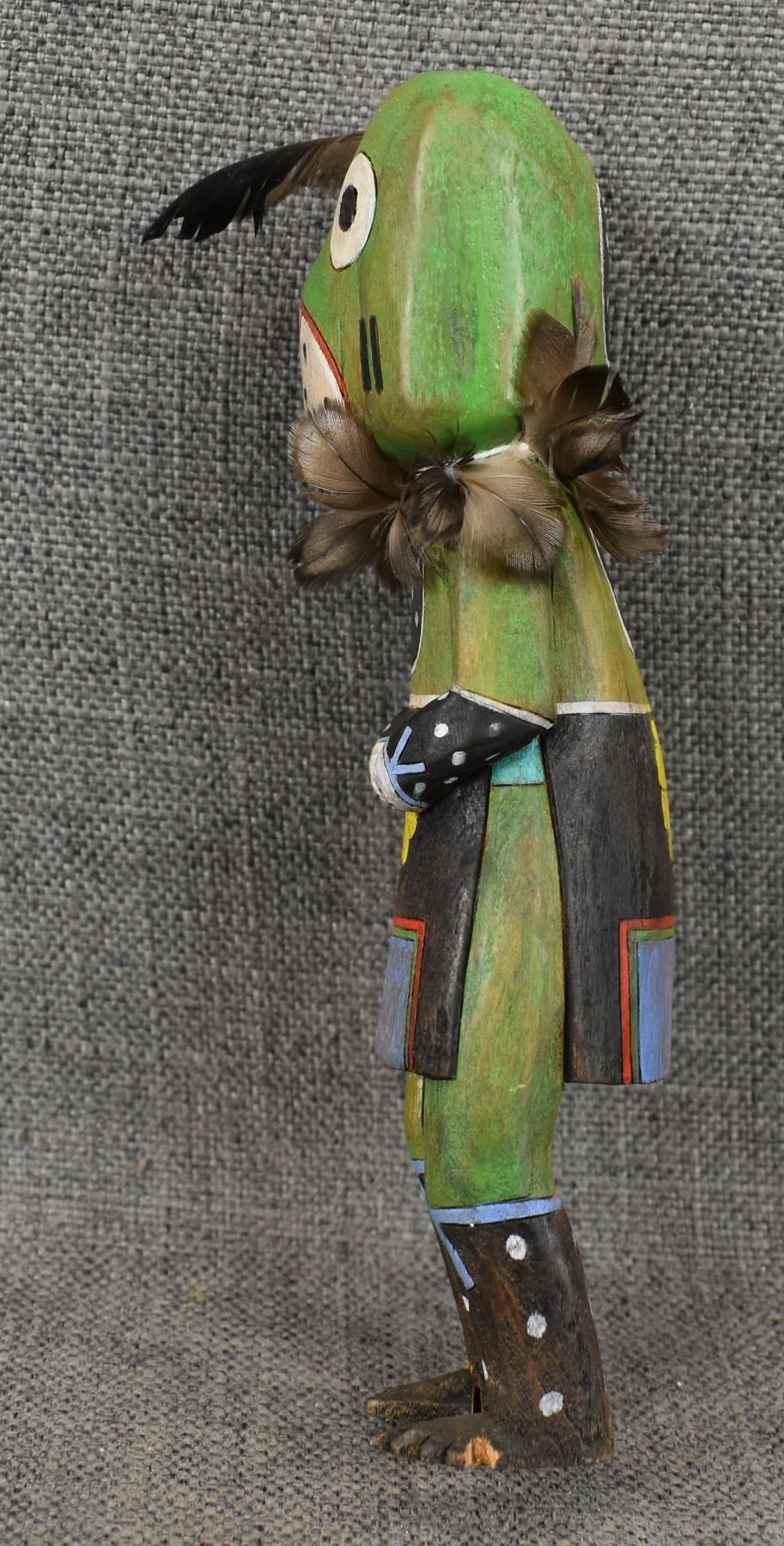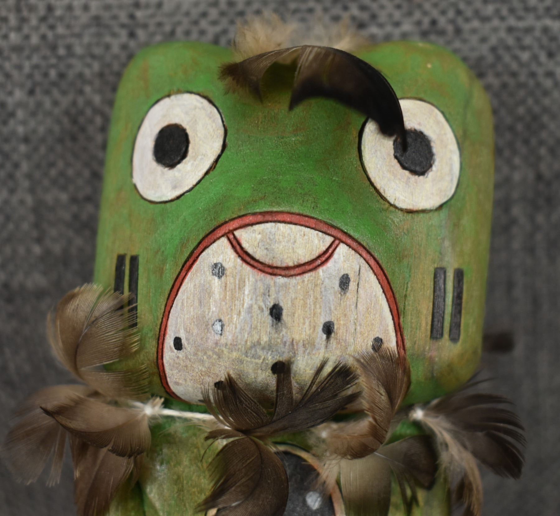 2010 hand carved and painted cotton wood depicting frog. Signed Brendan Kayquoptewa. 8'' tall