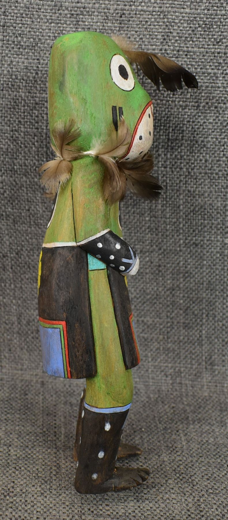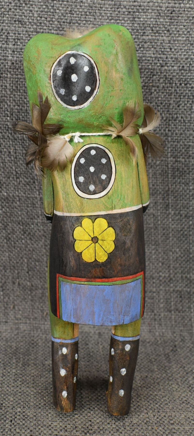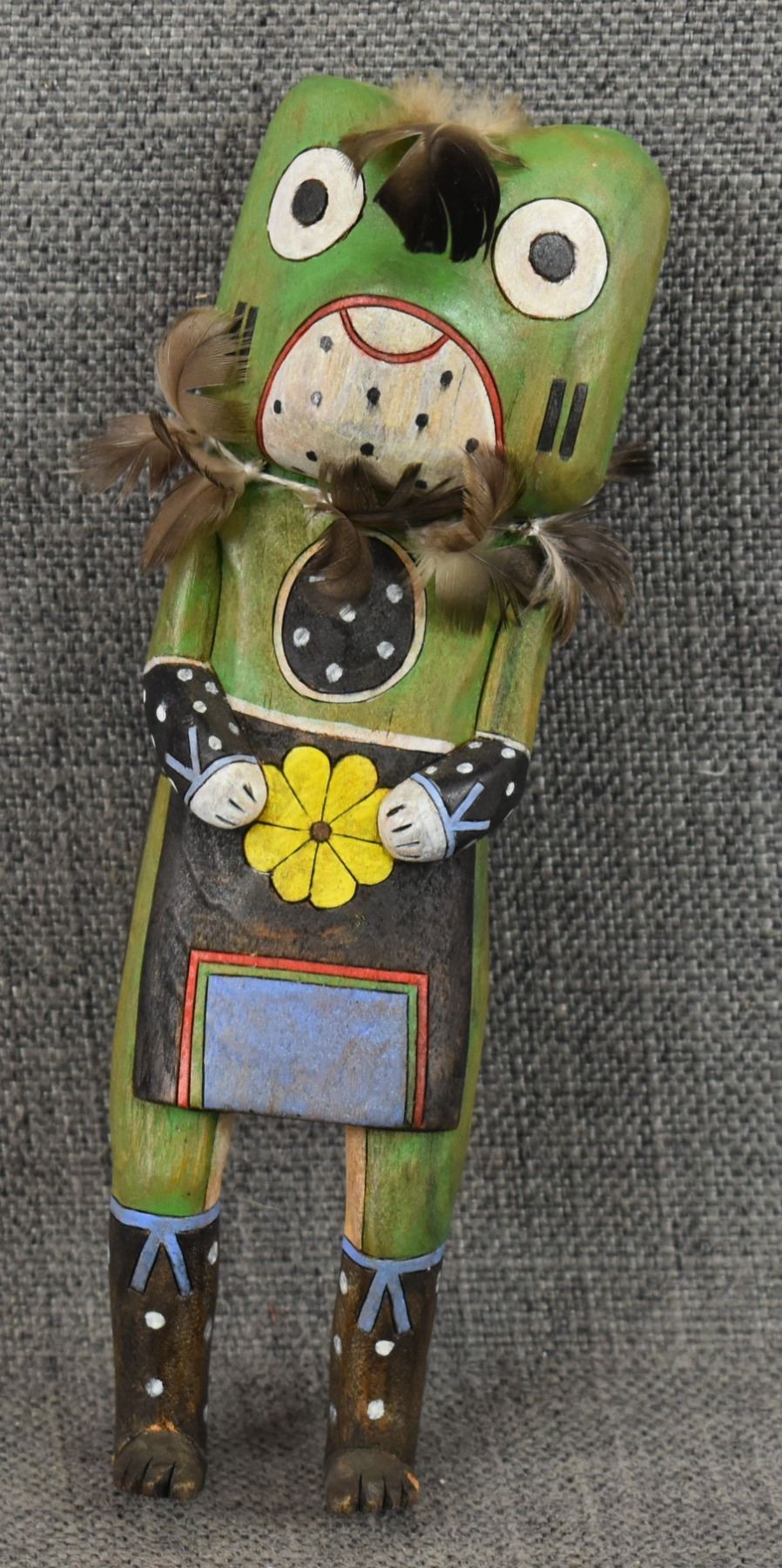 2010 hand carved and painted cotton wood depicting frog. Signed Brendan Kayquoptewa. 8'' tall