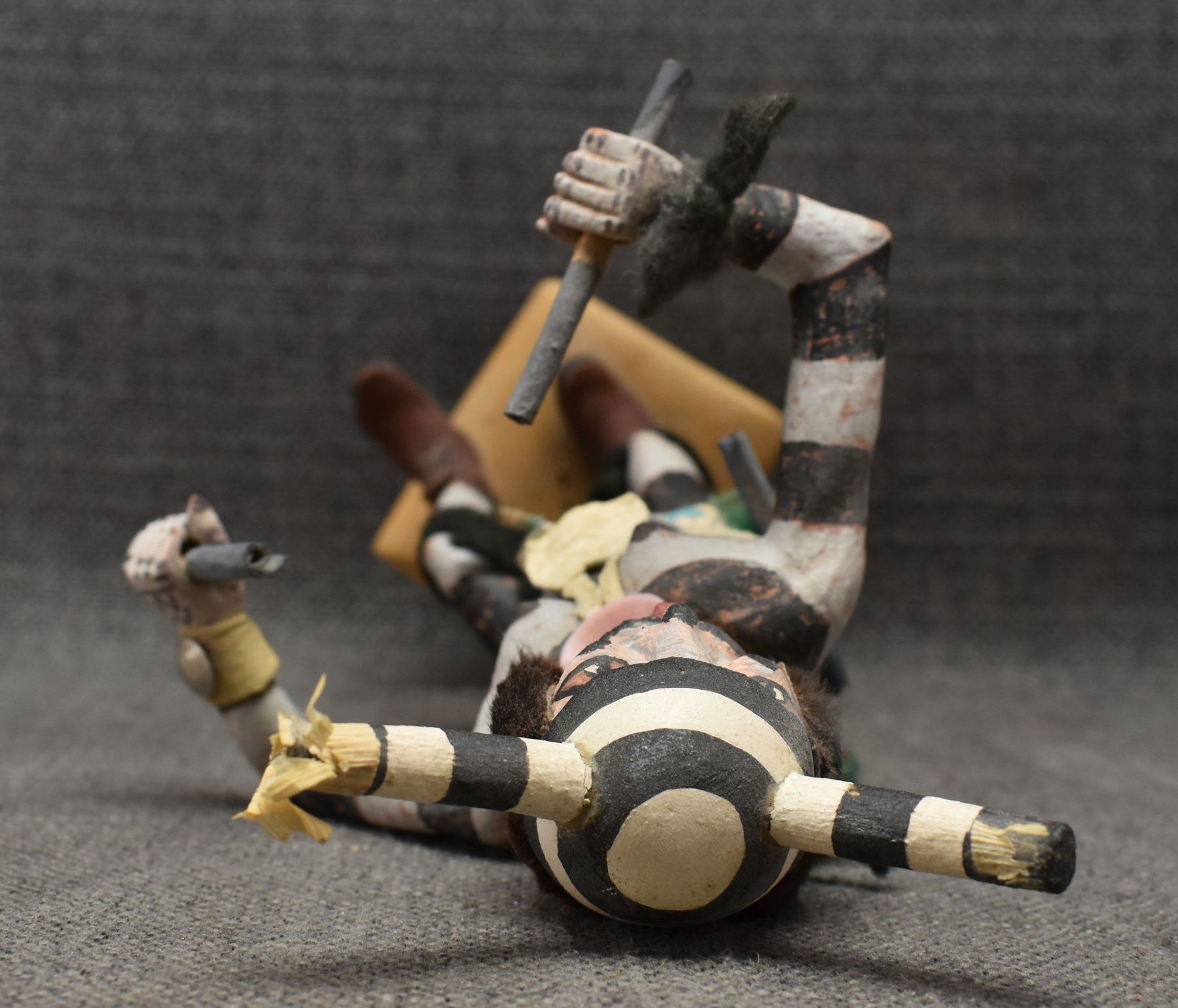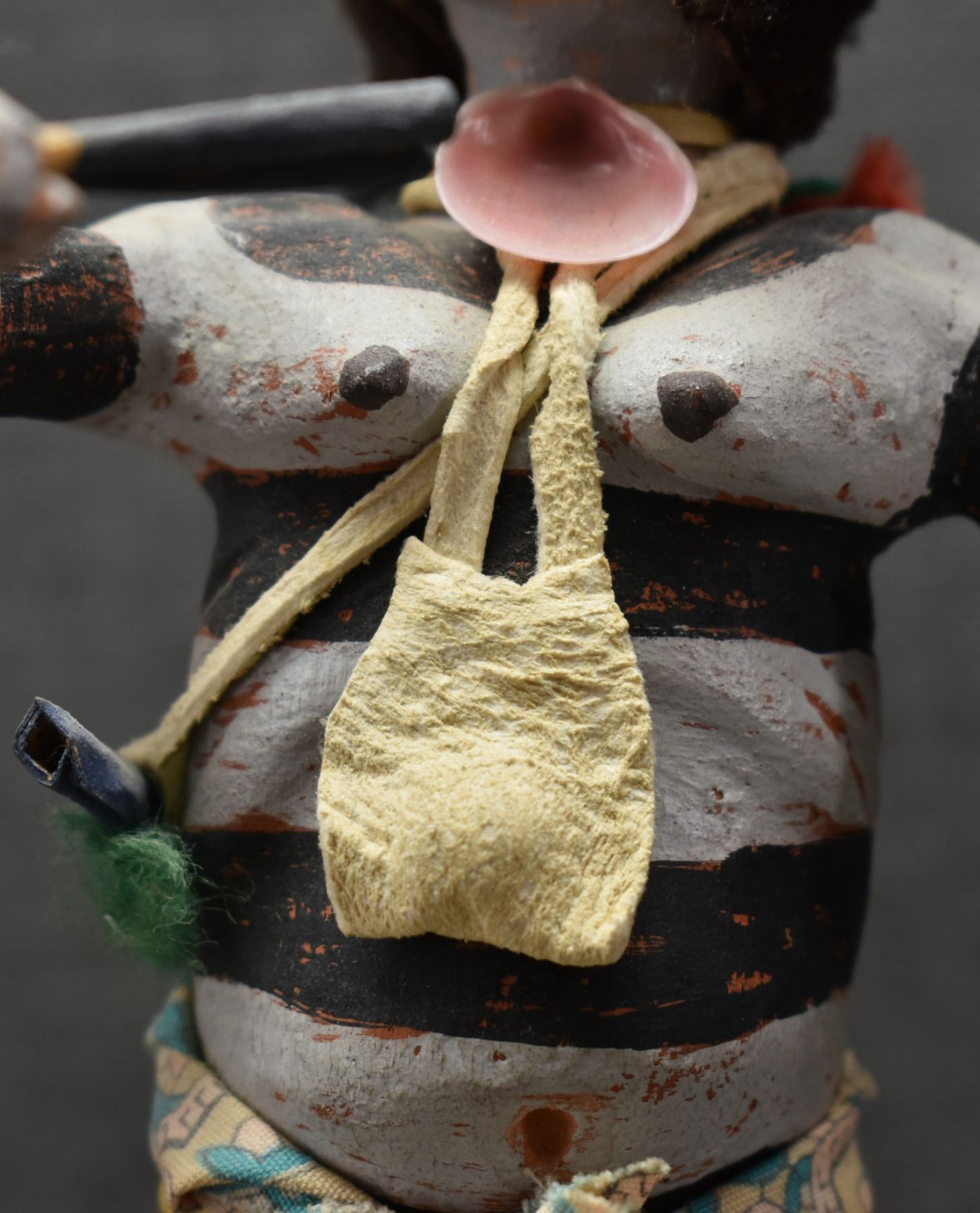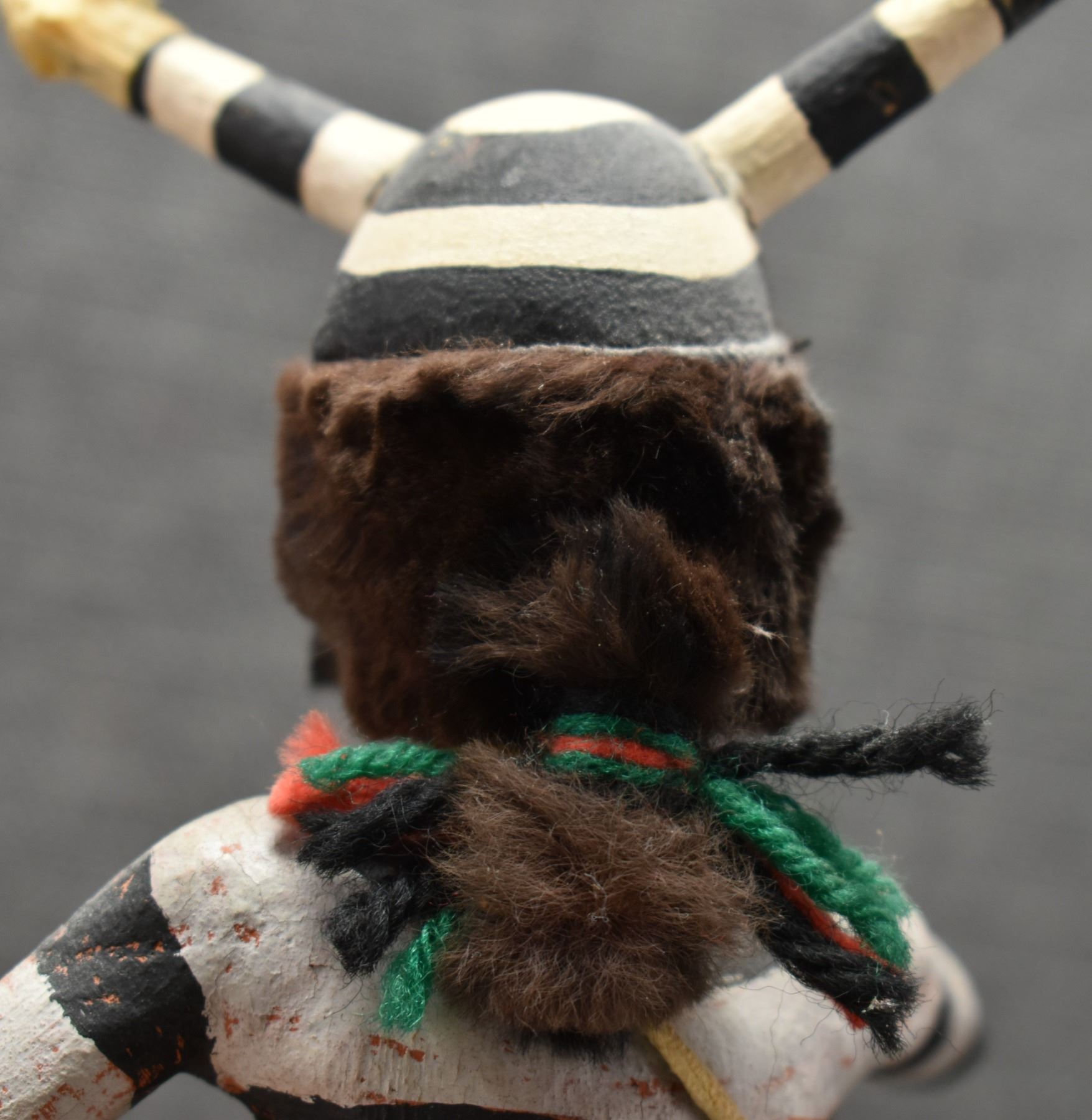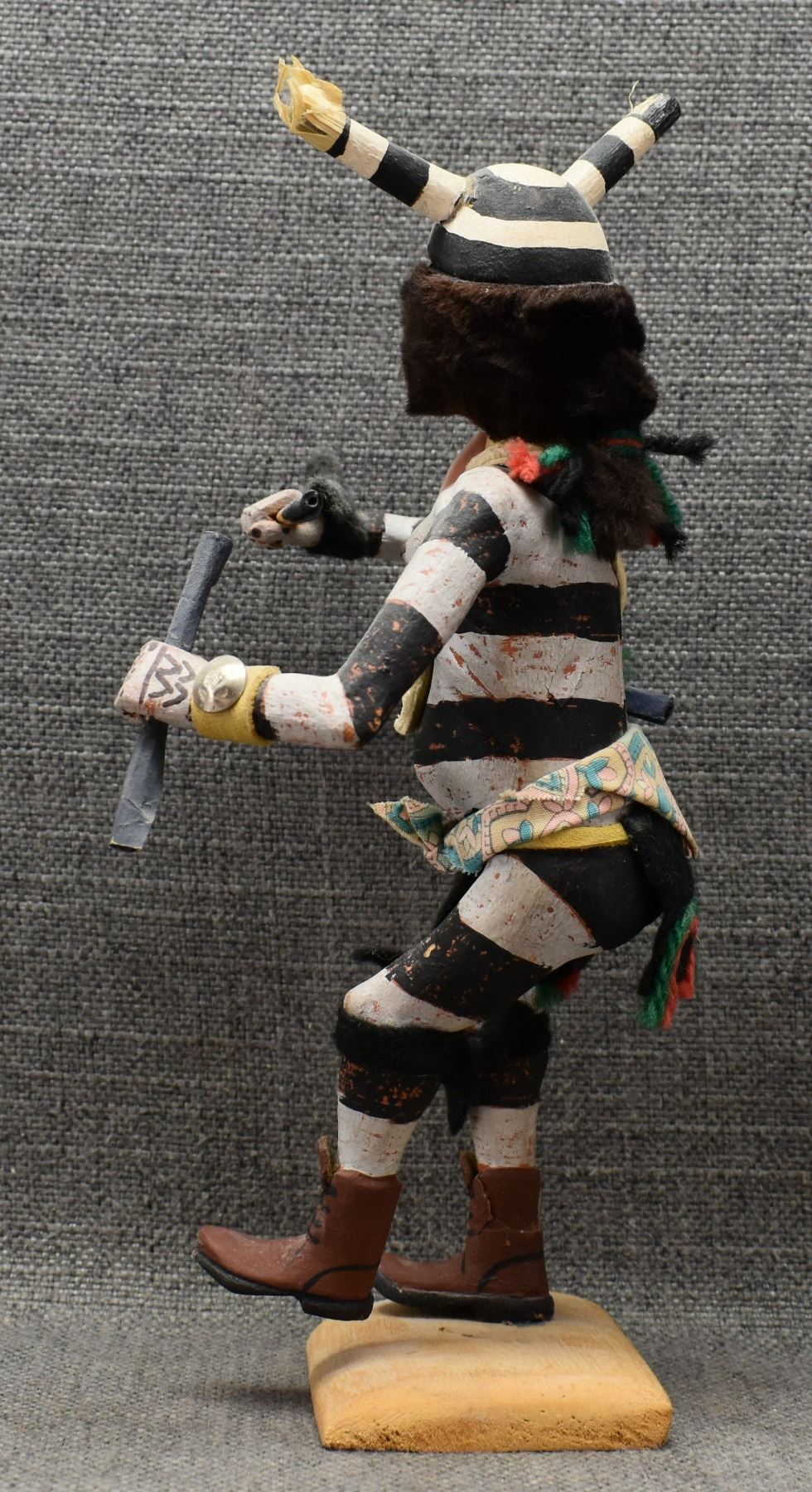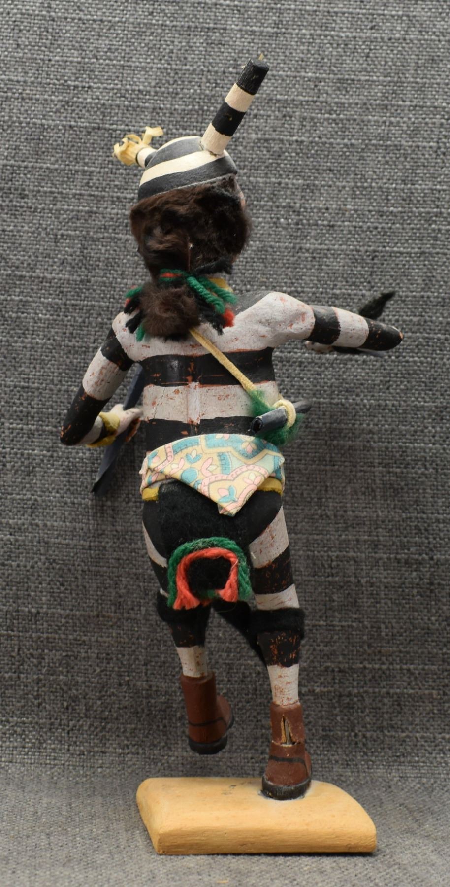 1970's Hopi. Hand carved and painted cotton depicting clown kachina. 10'' tall