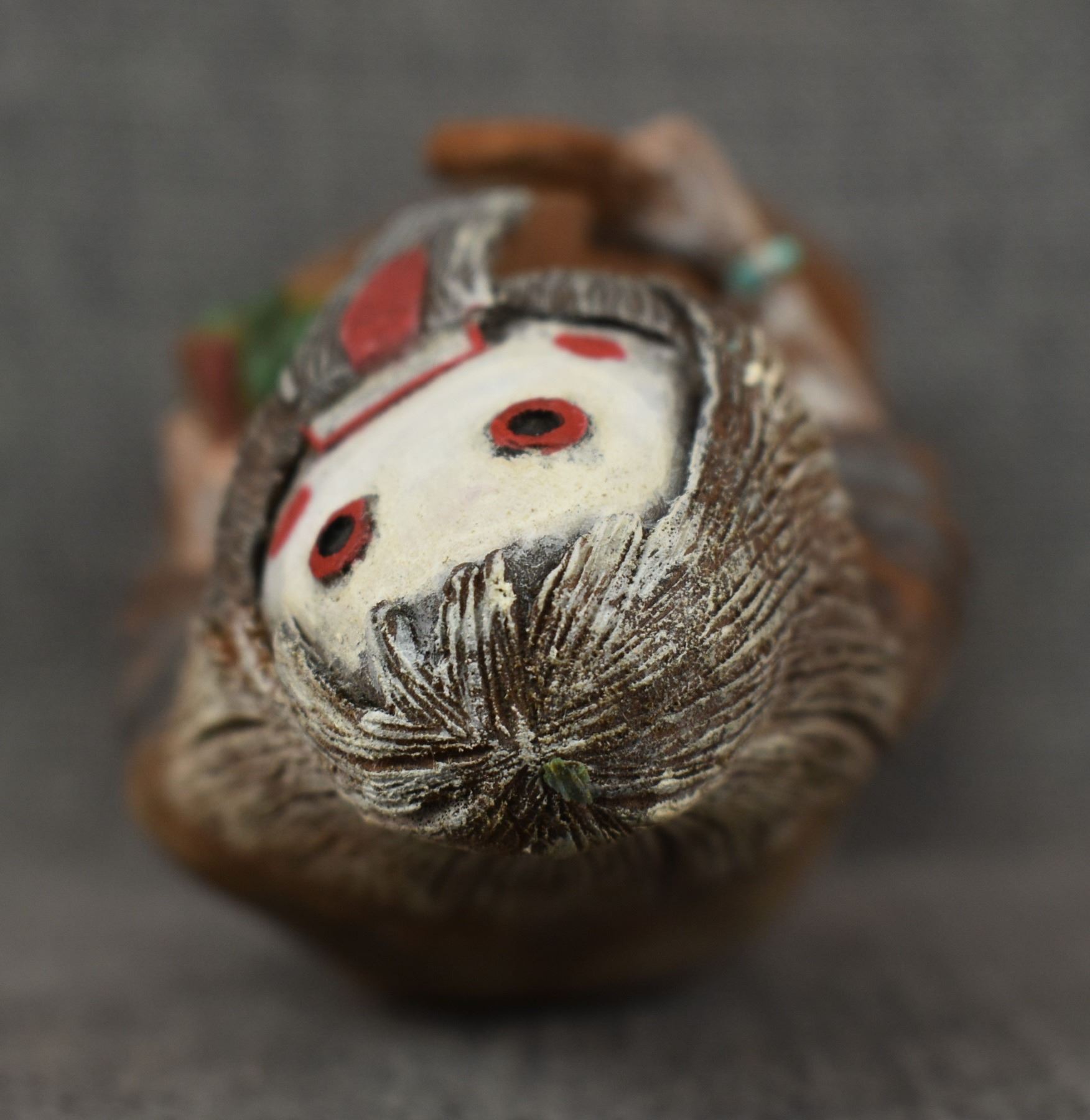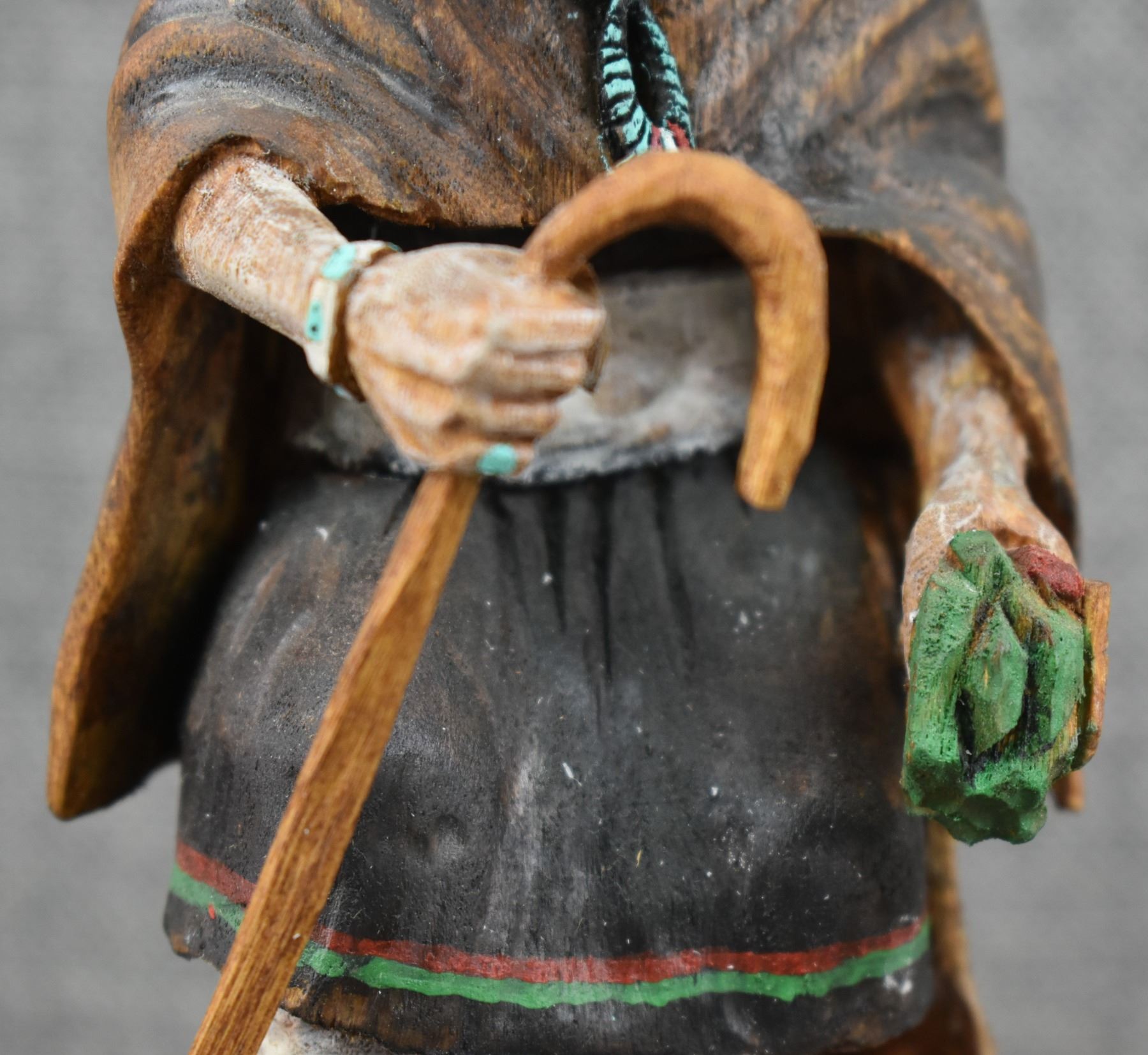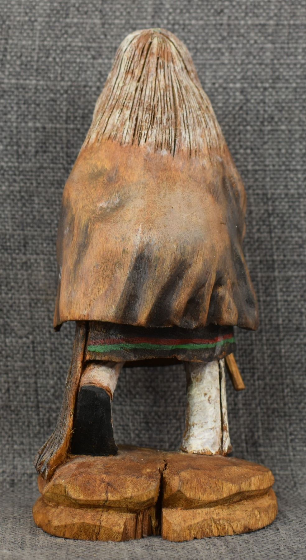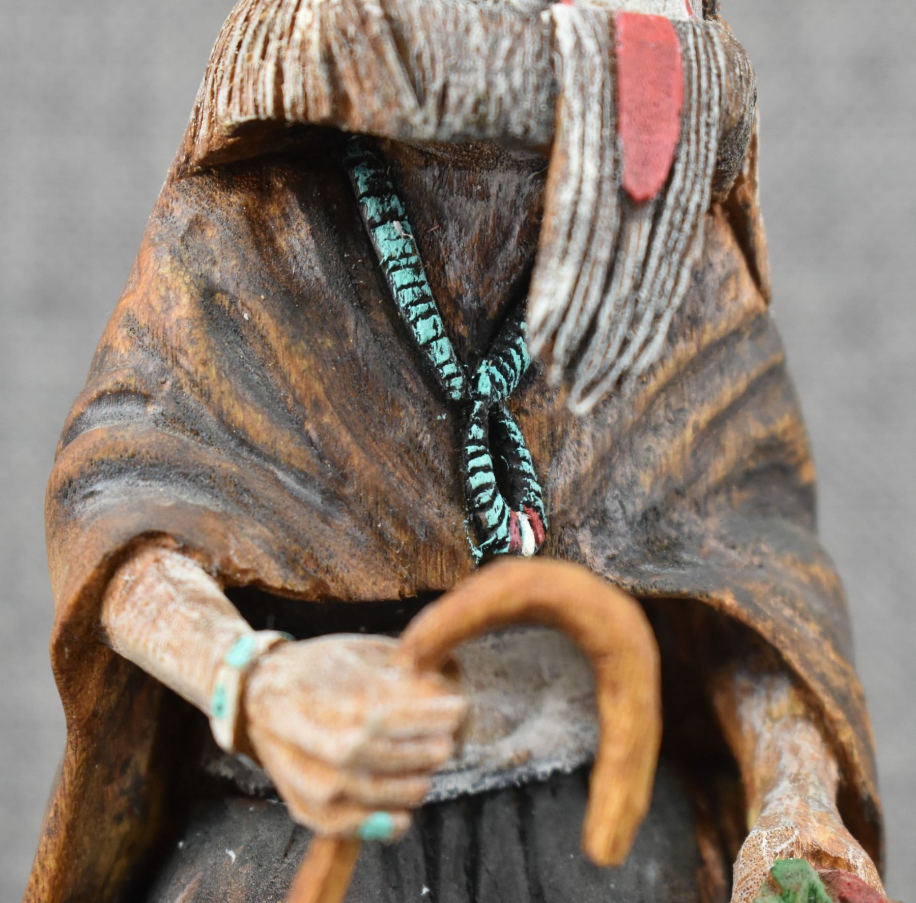 1990's Hopi hand carved and painted cotton wood depicting long haired Kachina signed Carson Chee. 7" tall