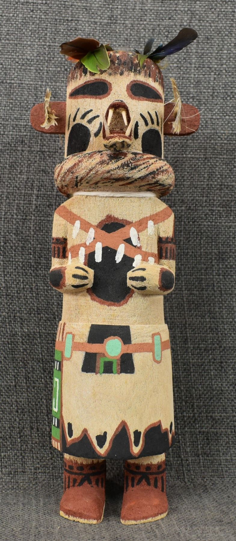 2000's Hopi, carved and painted cottonwood depicting white bear kachina by Cliffton Lomayaktewa 10" tall