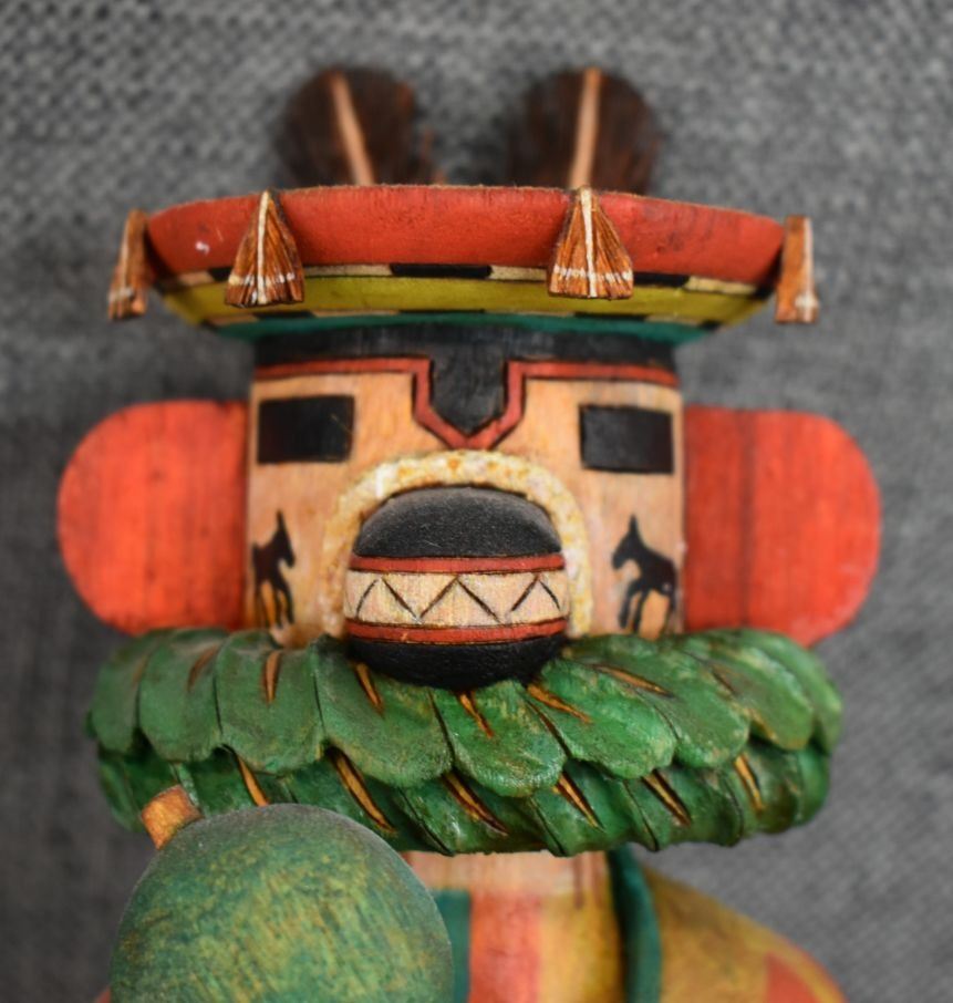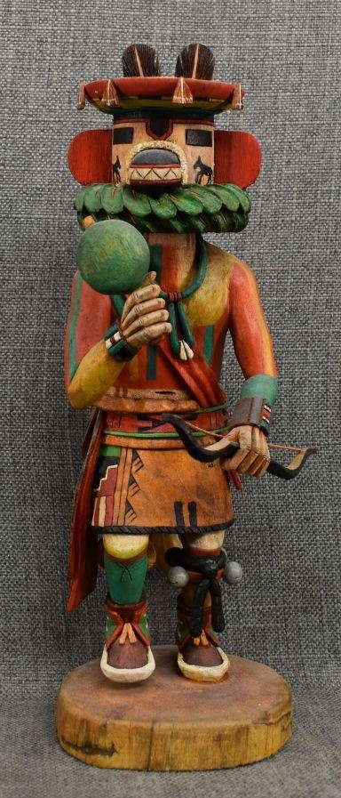 1992 Hopi. Hand carved and painted cotton wood ,signed D. Hayah, 13'' tall