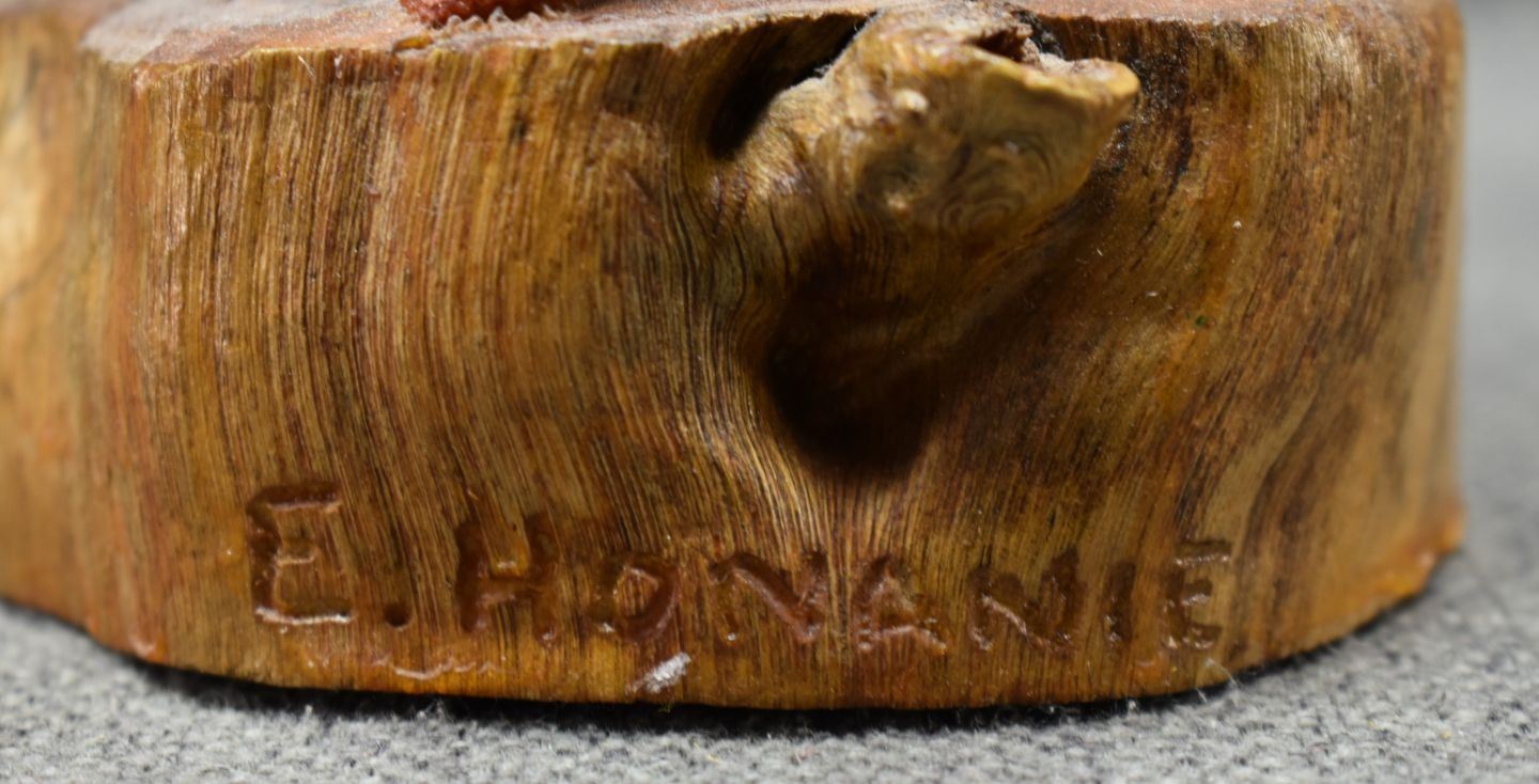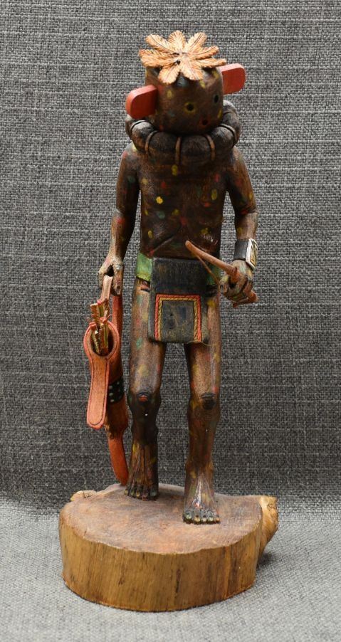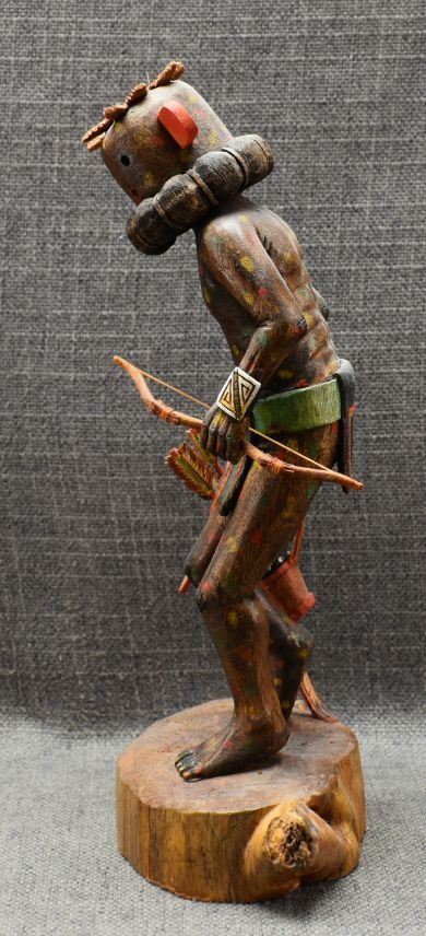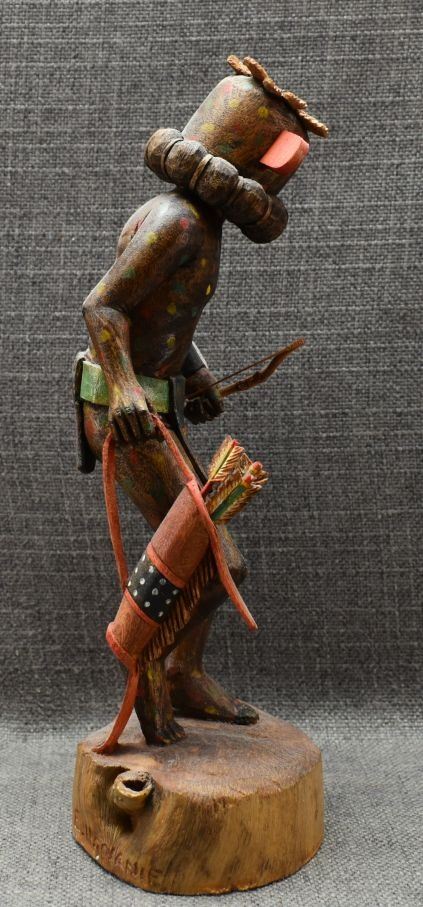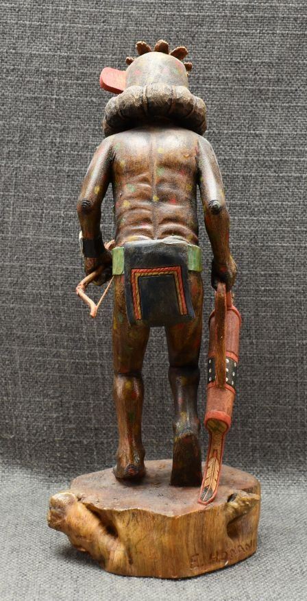 1980's Hopi, hand carved and painted cotton wood kachina signed E. Honanie for Ernest Honanie. 11" tall