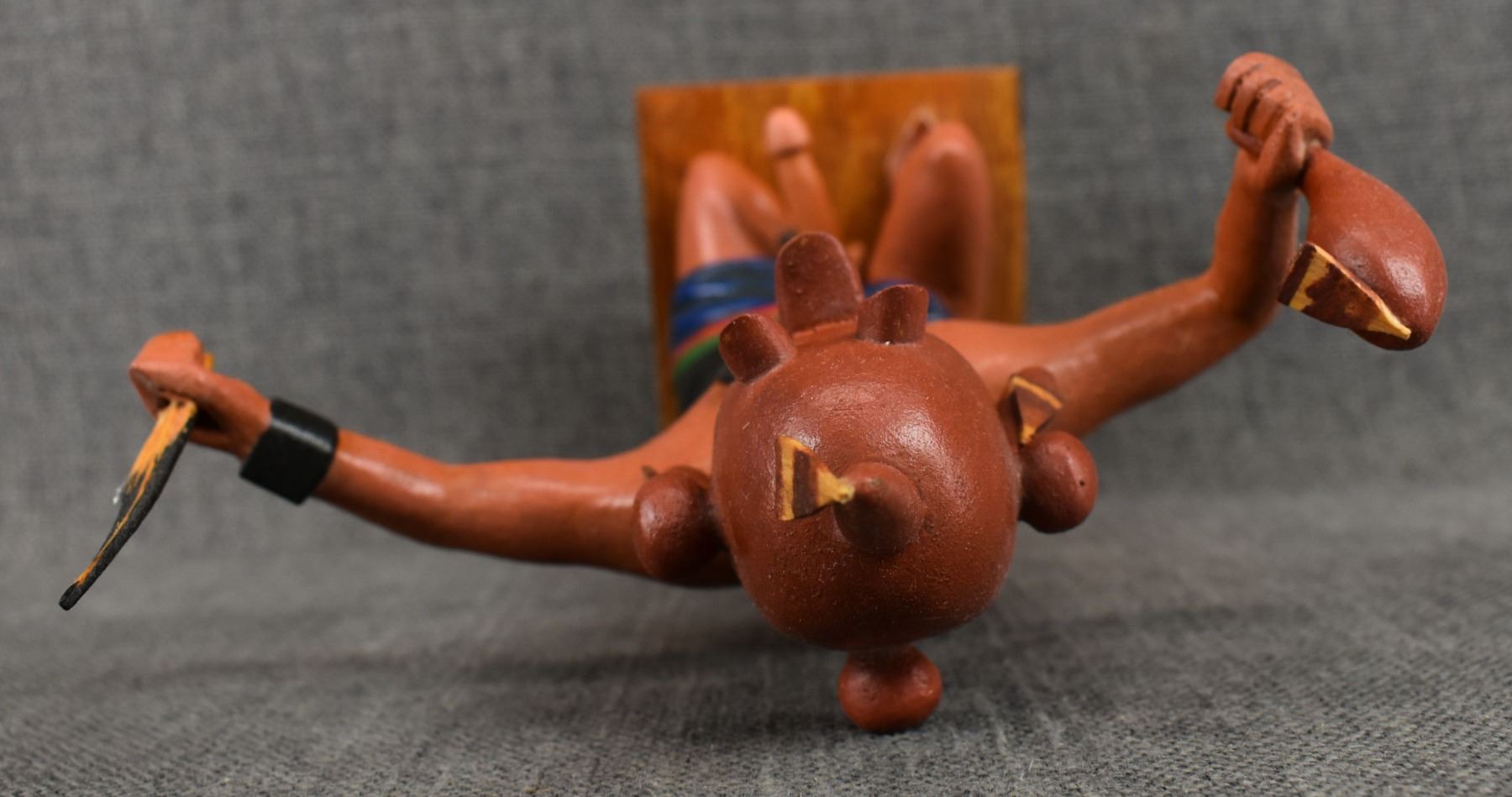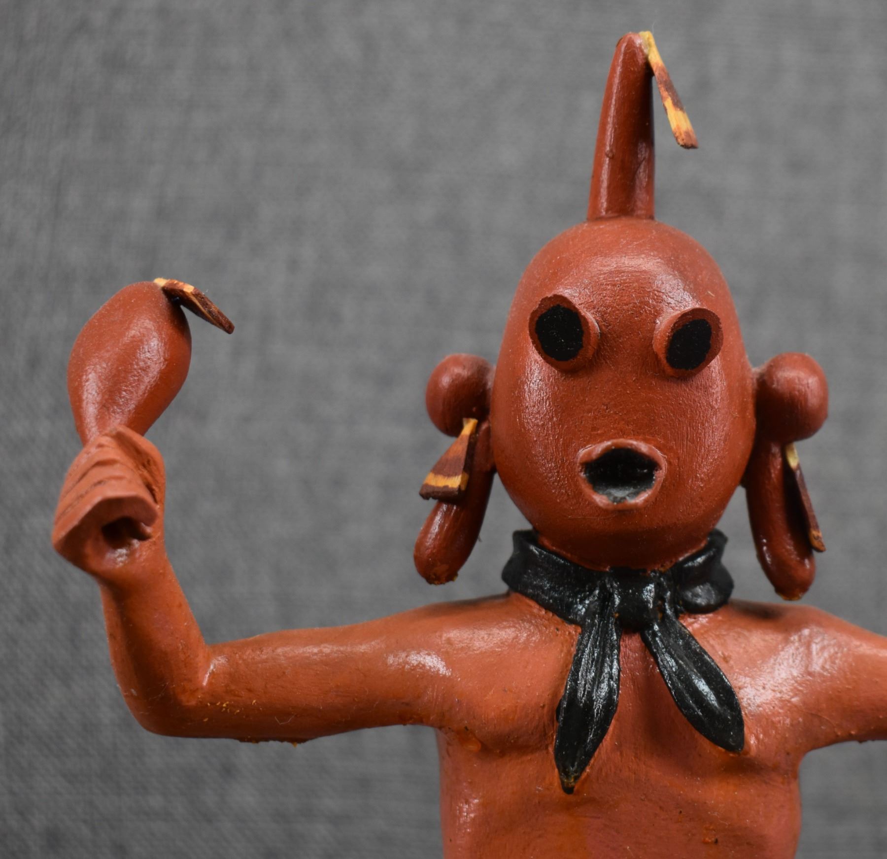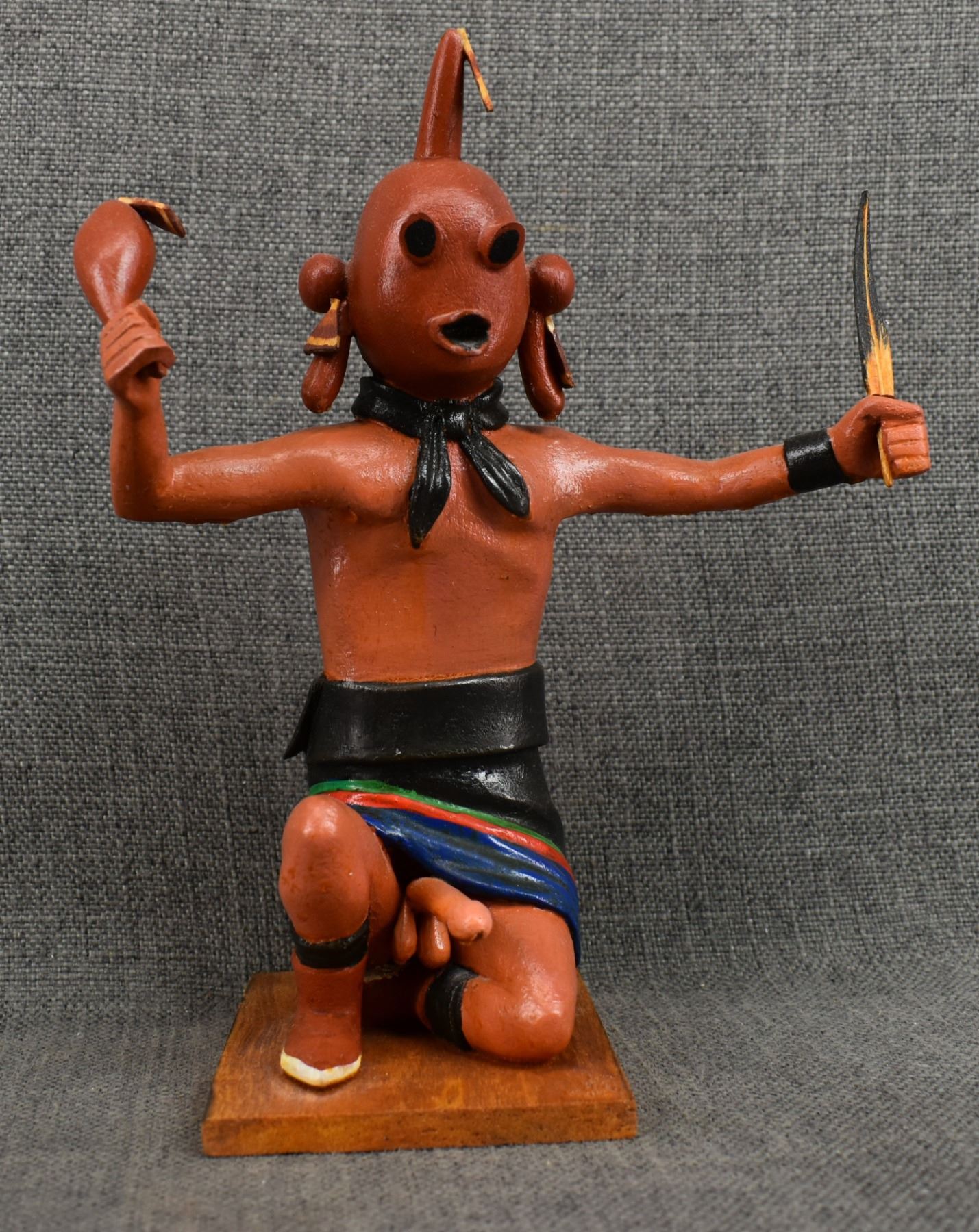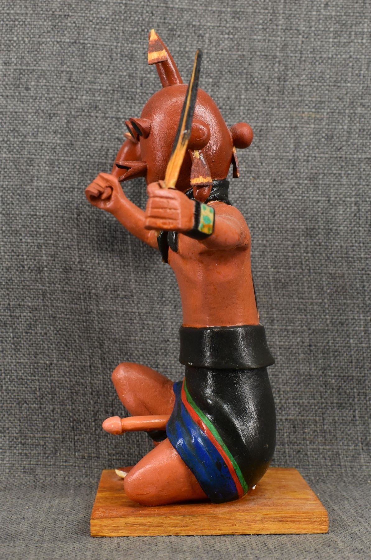 199's Hopi. Hand carved and painted cotton wood depicting happy Mudhead. Signed Franklin Namingha, 10'' tall