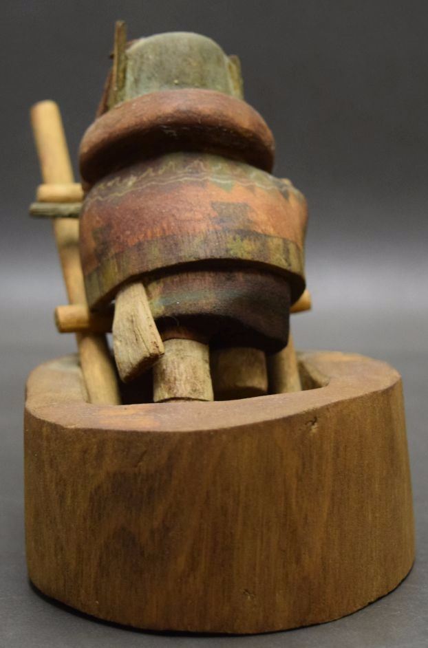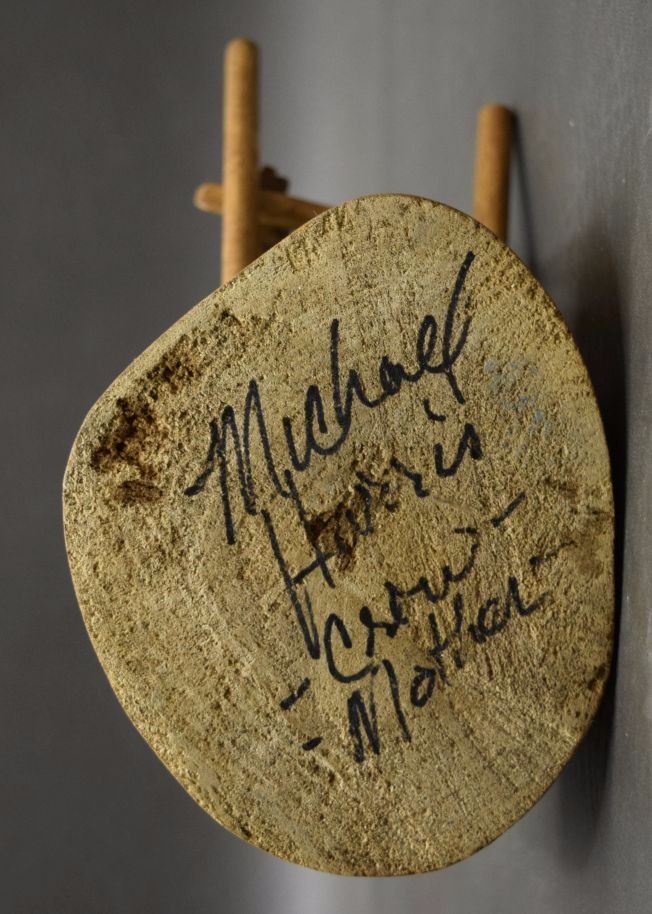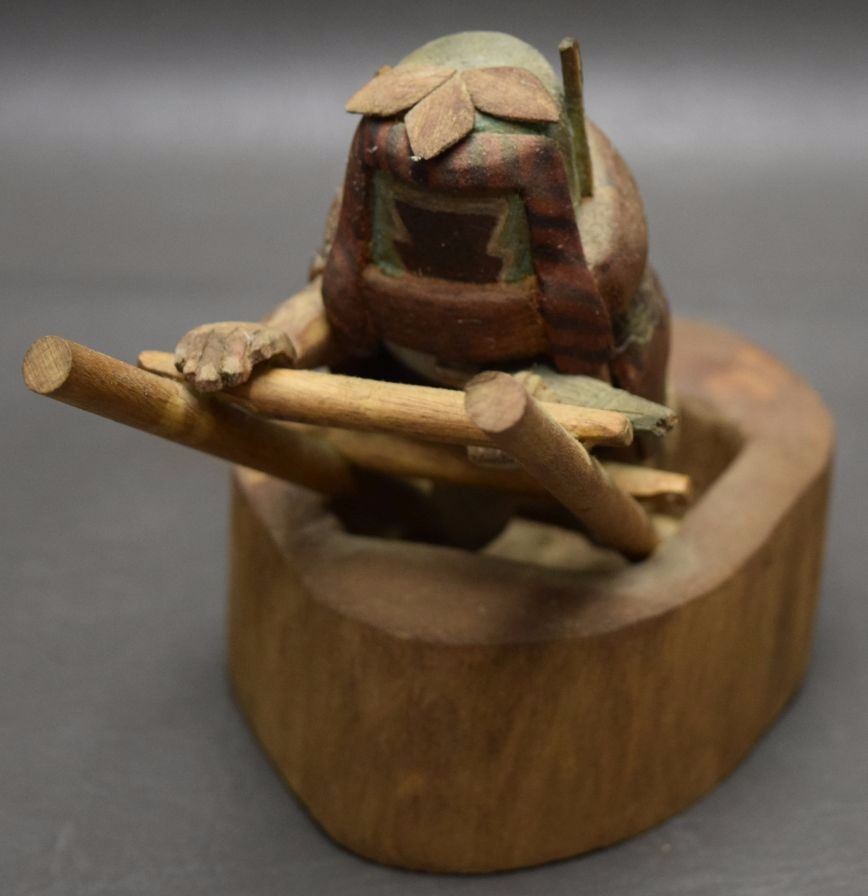 1980's hand carved and painted cotton wood depicting crow mother. Signed Michael Harris. 5'' x 5''