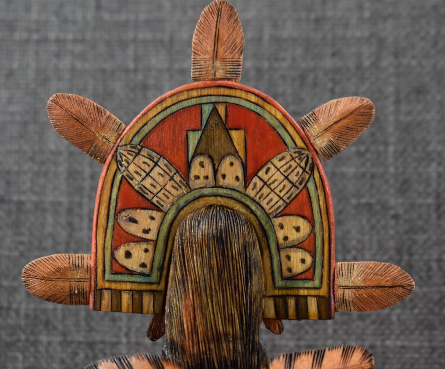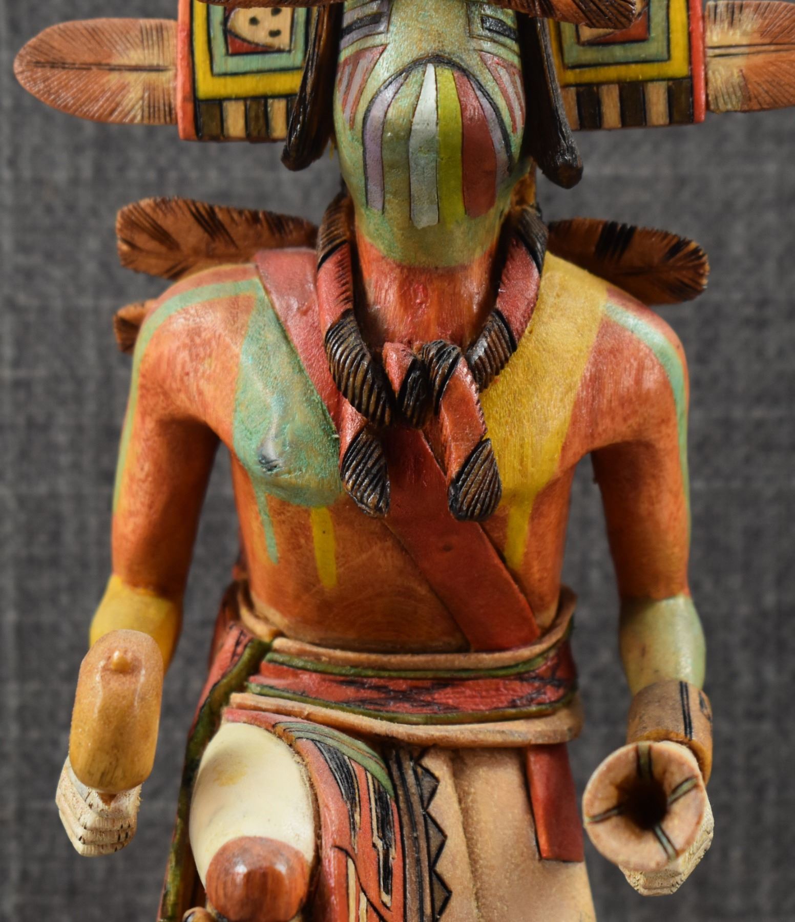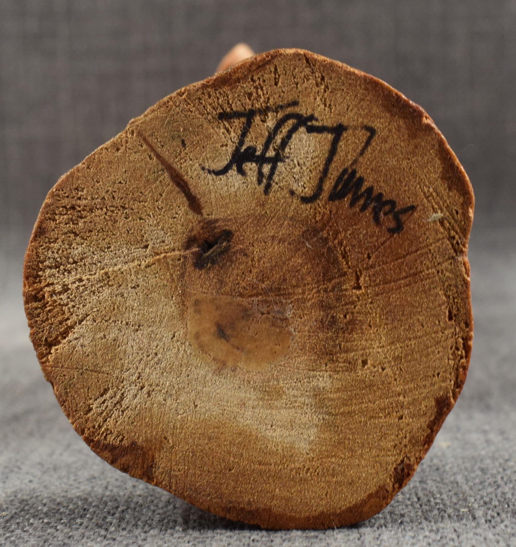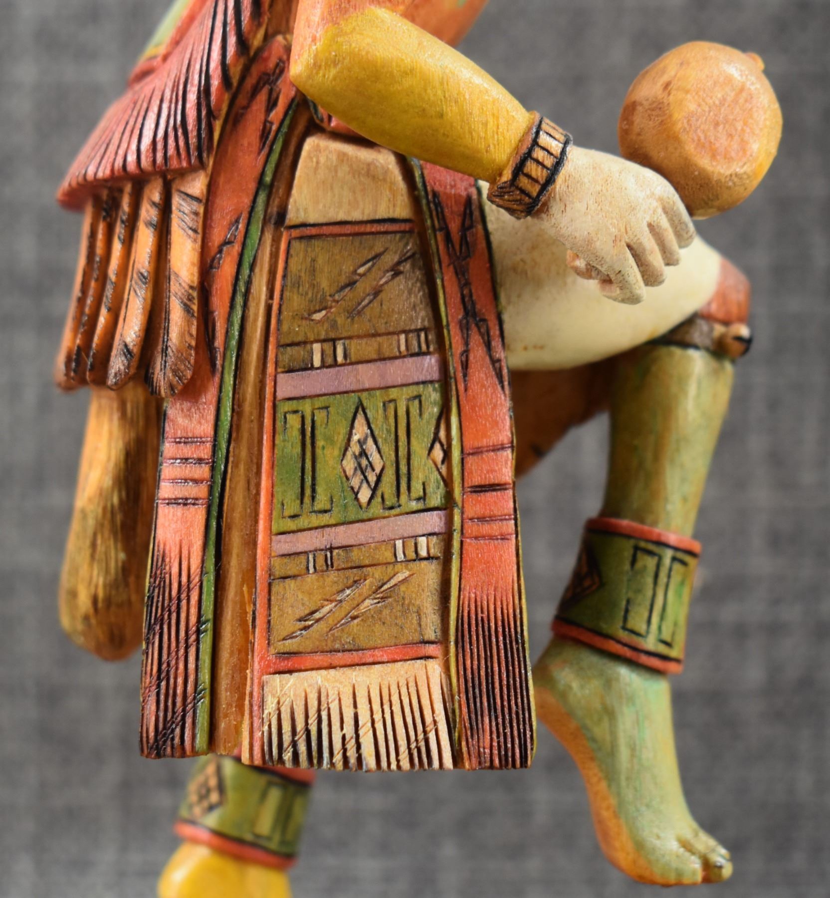 1990's Hopi. Hand carved and painted cotton wood kachina. Signed Jeff James. 11'' tall