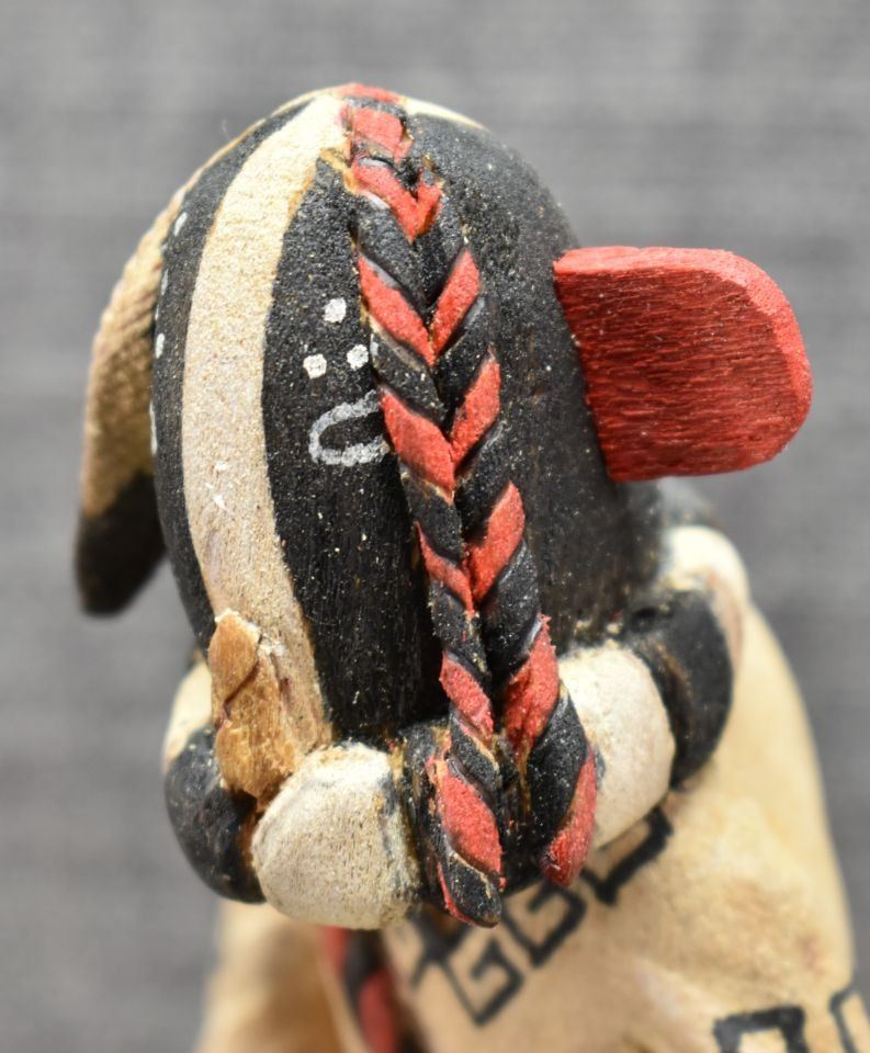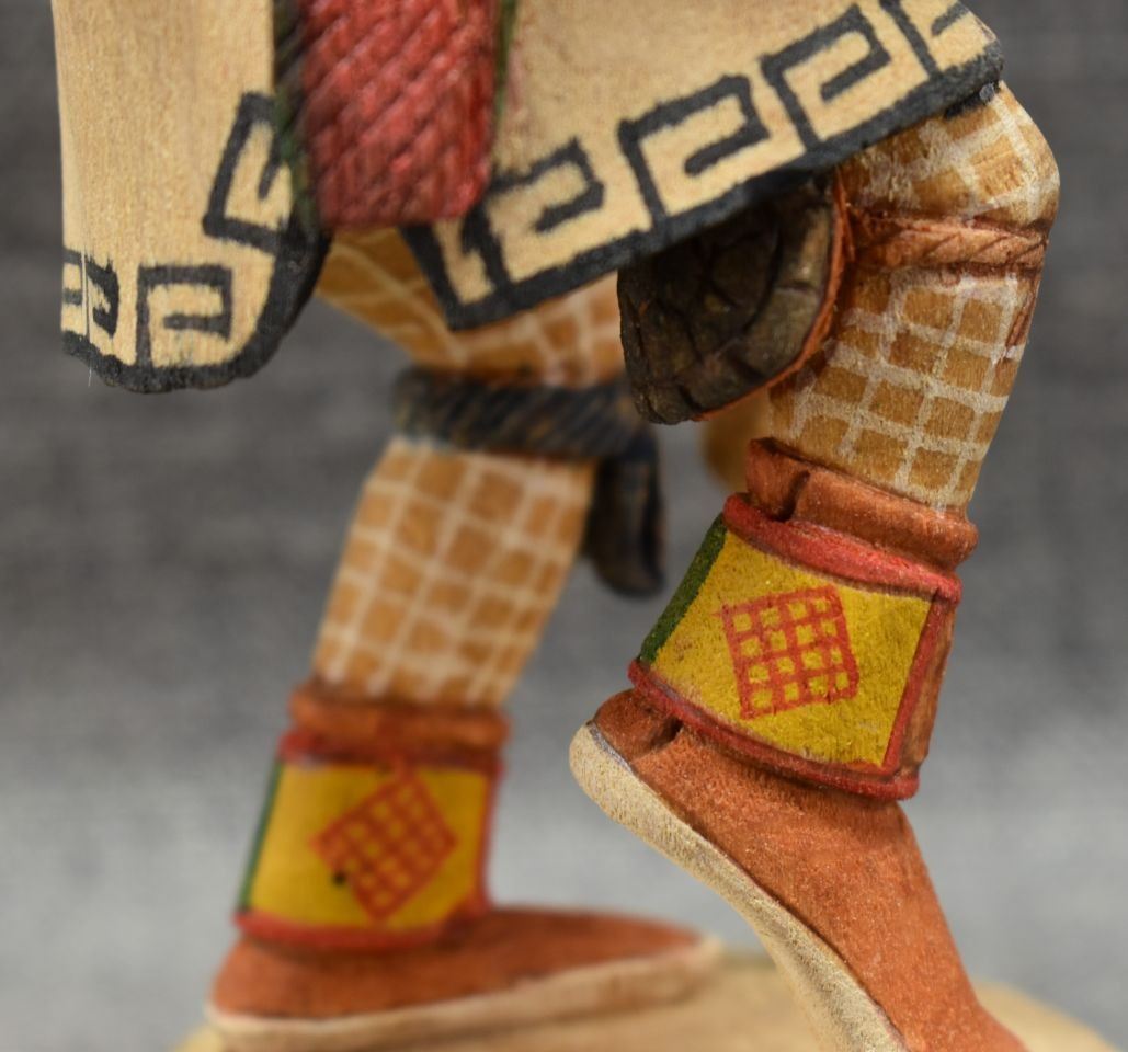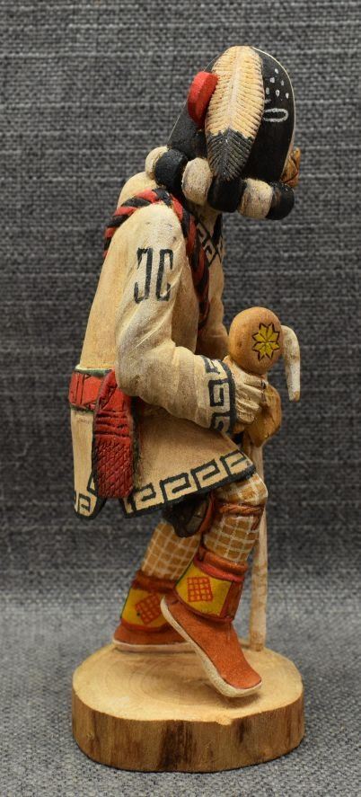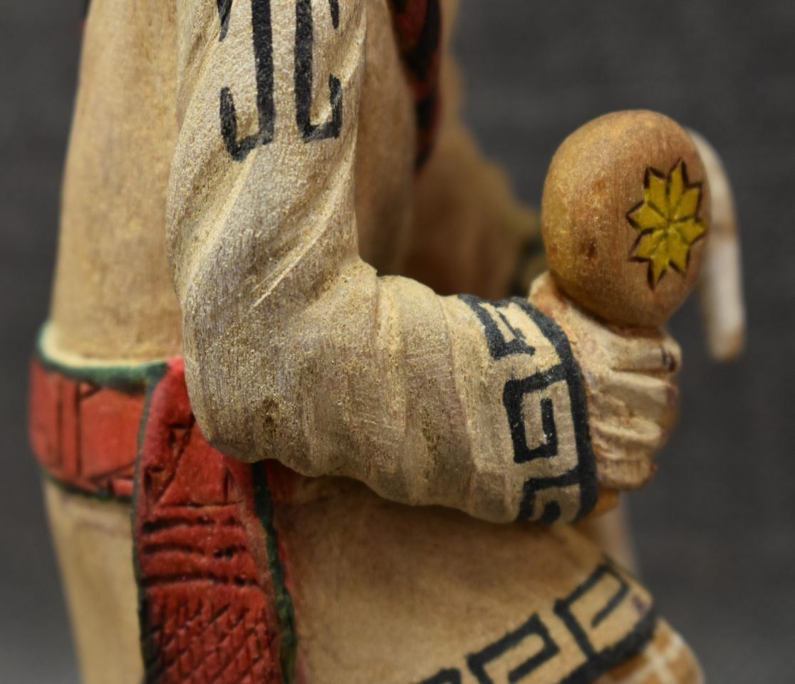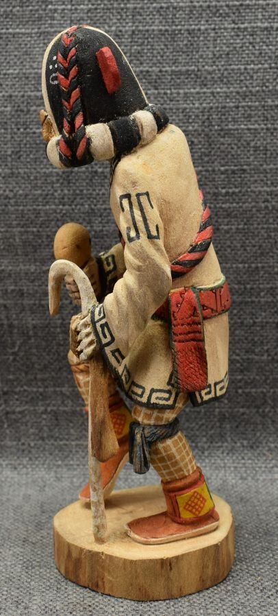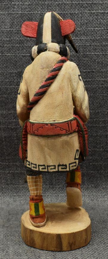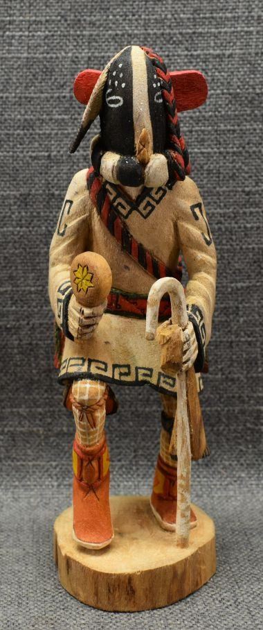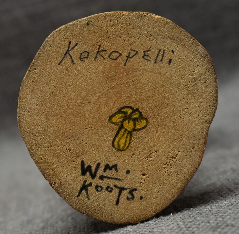 1980's Hopi, hand carved and painted kachina depicting Kokopelli signed WM Koots for William Kootswatewa. 8" x 3"