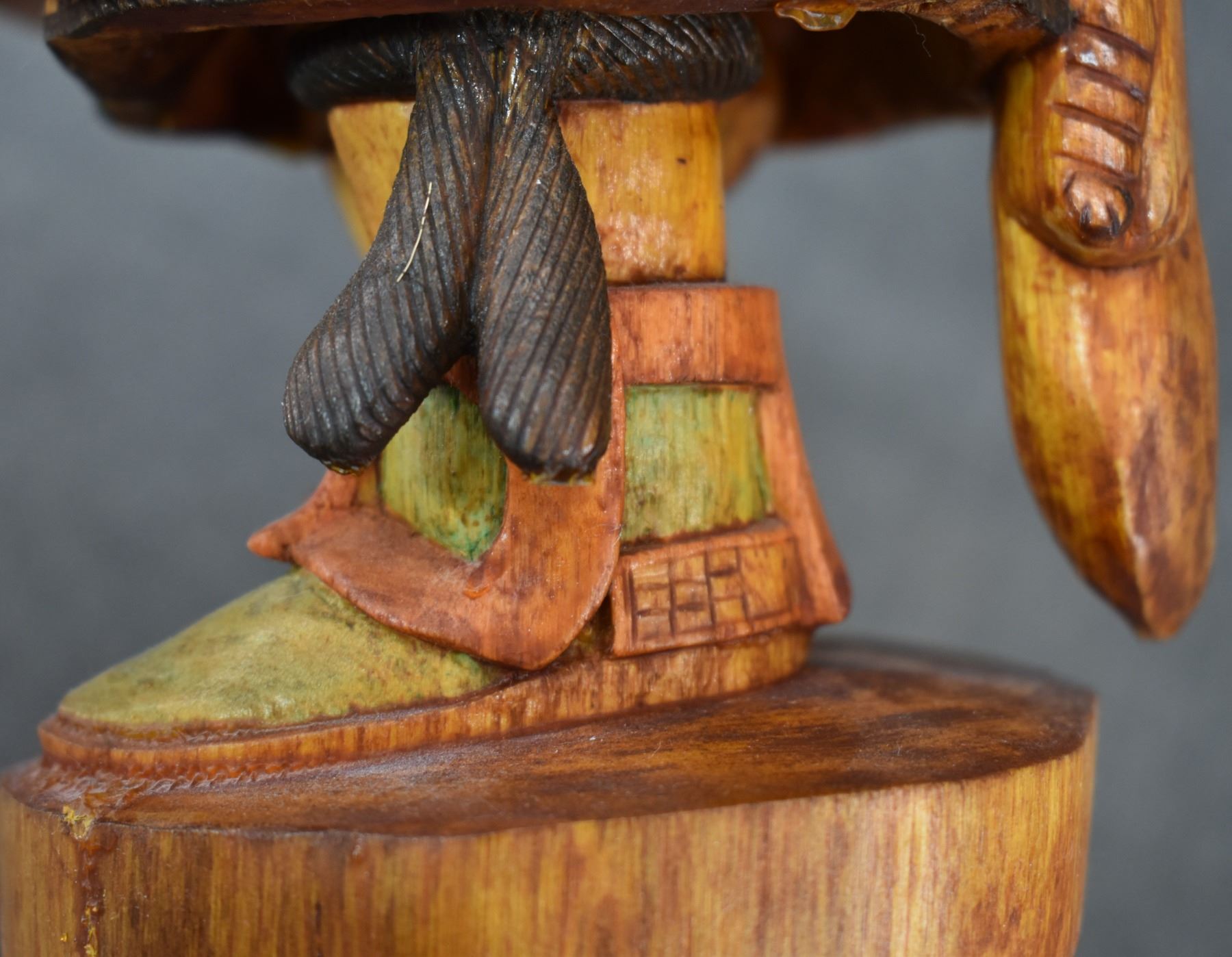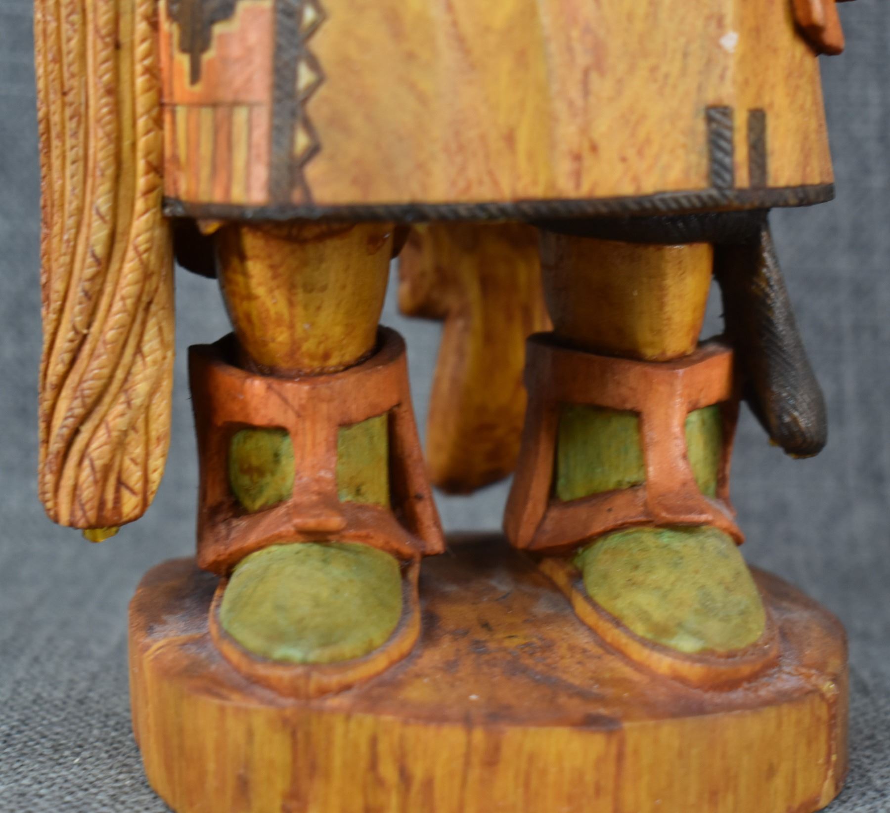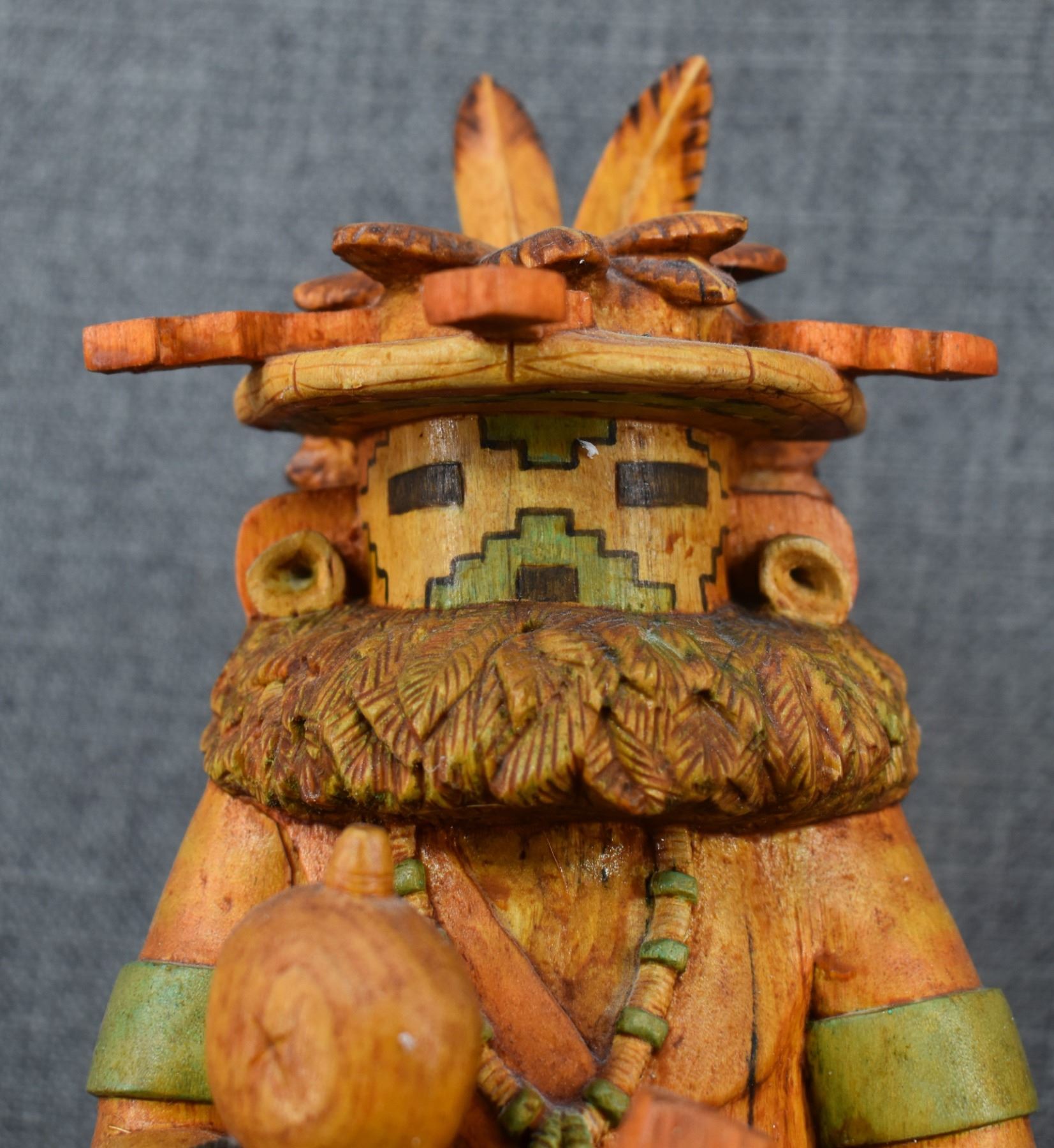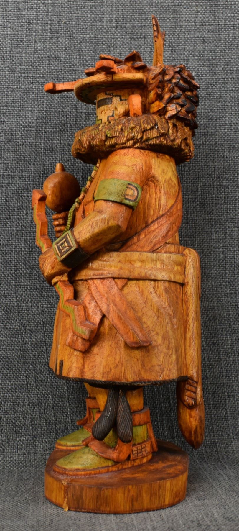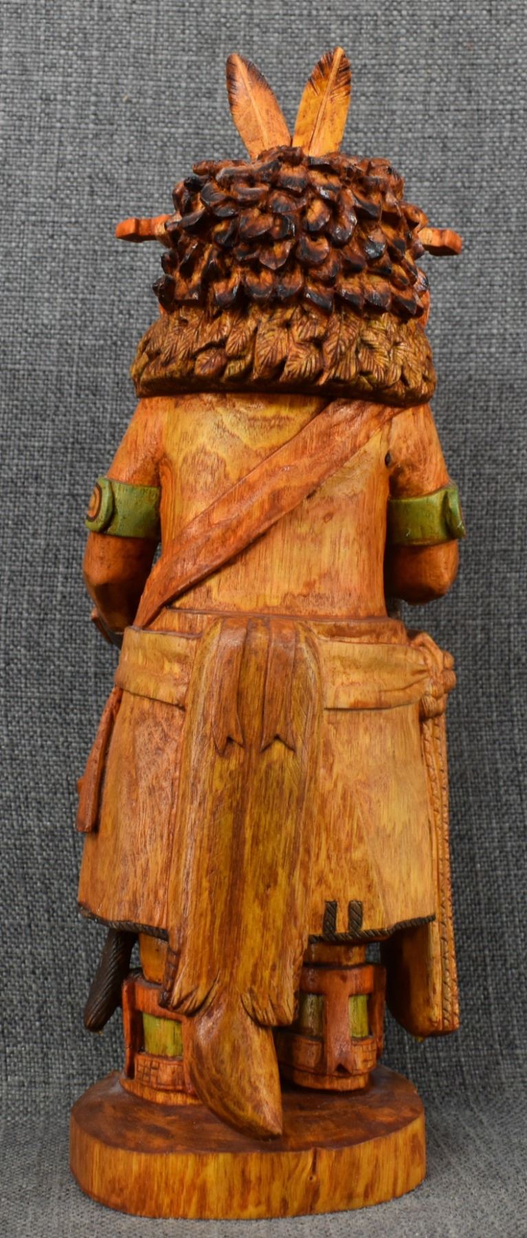 1988 Hopi. Hand carved and painted cotton wood depicting Snow Kachina, signed L. Hongeva. 13'' tall